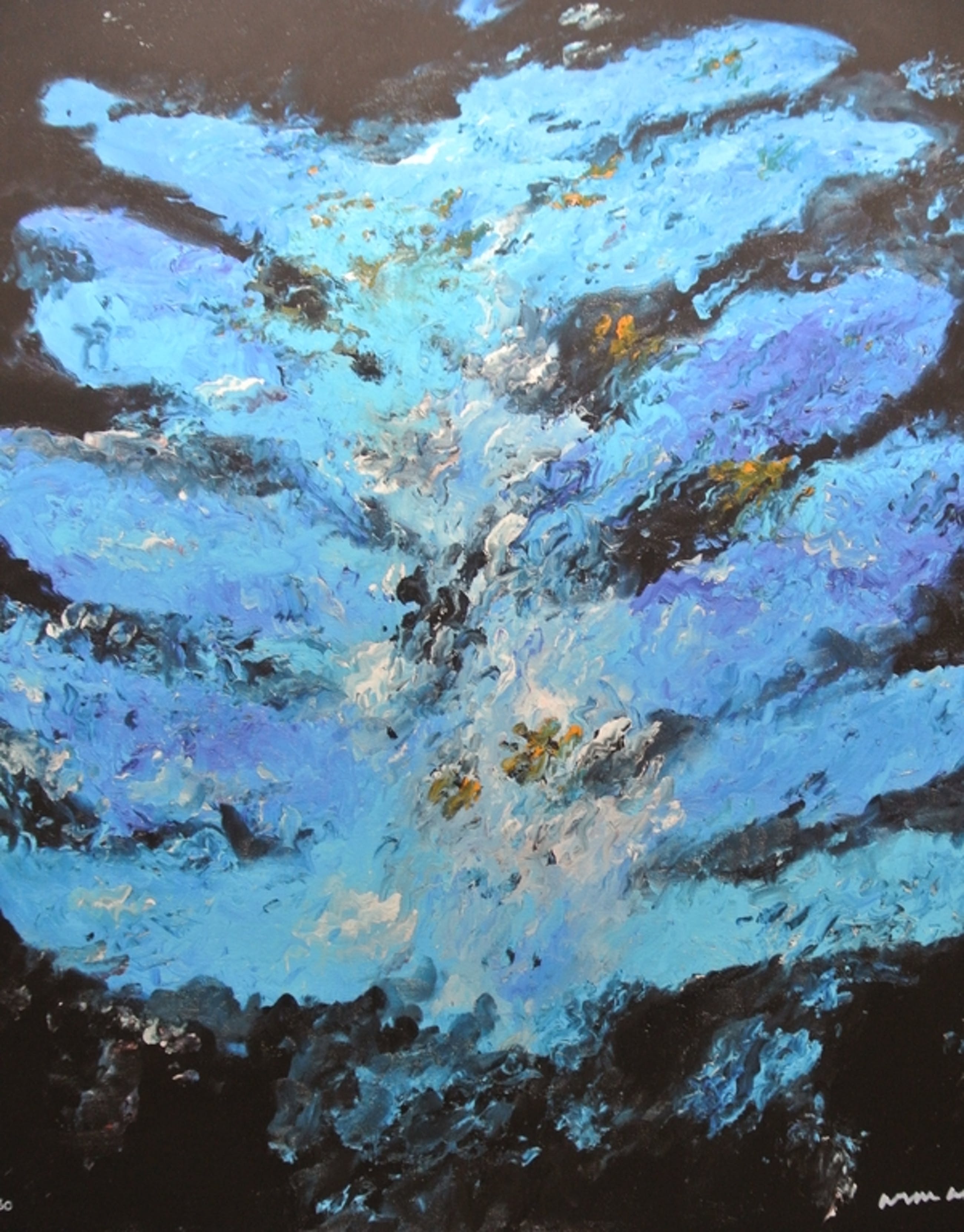 Een bijzonder kenmerkende glicee van het beroemde en internationaal zeer gewaardeerde werk van deze in Amsterdam geboren kunstenaar.