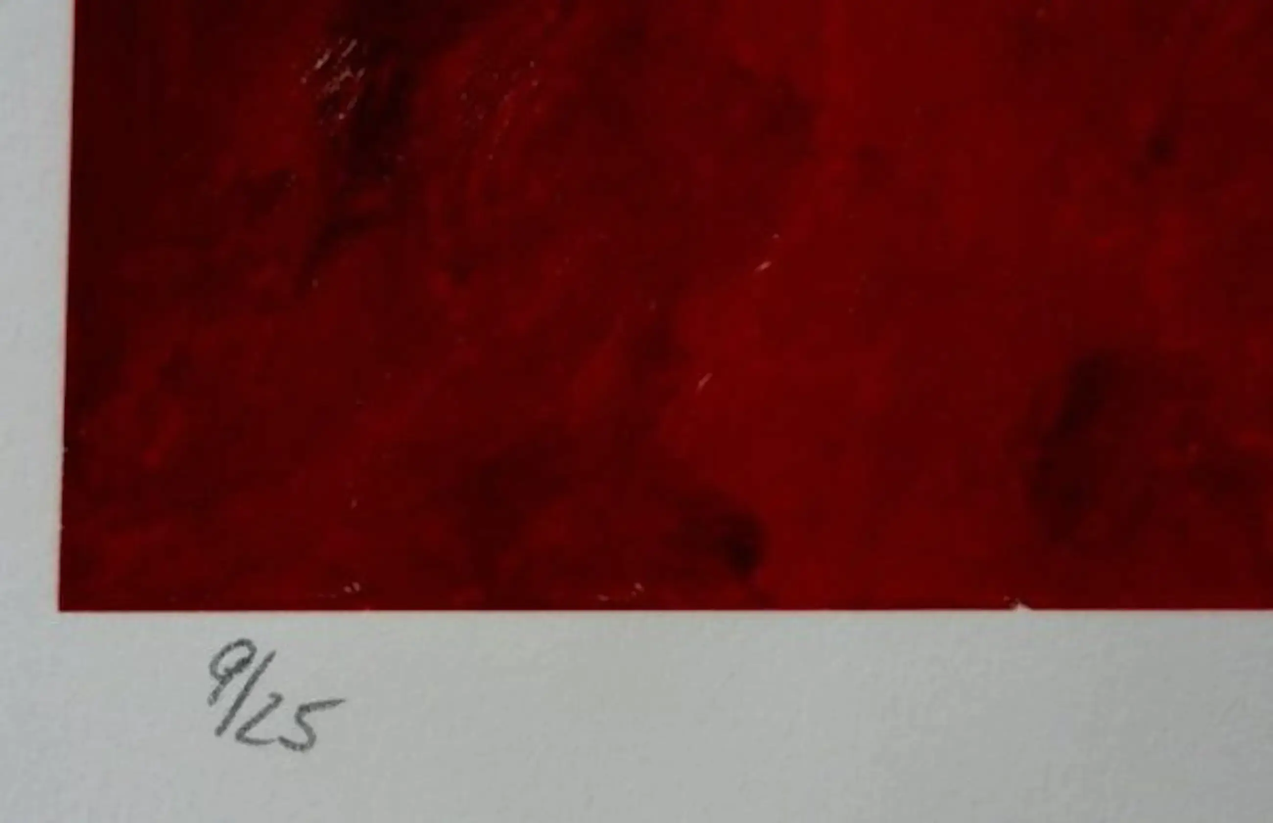 Giclee van Armando uit 2015. Titel: Damals. Nummer: 9/25 ( Het nummer kan afwijken i.v.m. het in bezit hebben gehad van meerdere exemplaren). Afmetingen blad: H53,5 x b61cm. Afmetingen voorstelling: H41 x b50cm. Het werk is rechts onderaan, met potlood, gesigneerd door de kunstenaar. De authenticiteit van het aangeboden werk wordt volledig gegarandeerd. Een certificaat van echtheid kan, op aanvraag, worden gemaild.