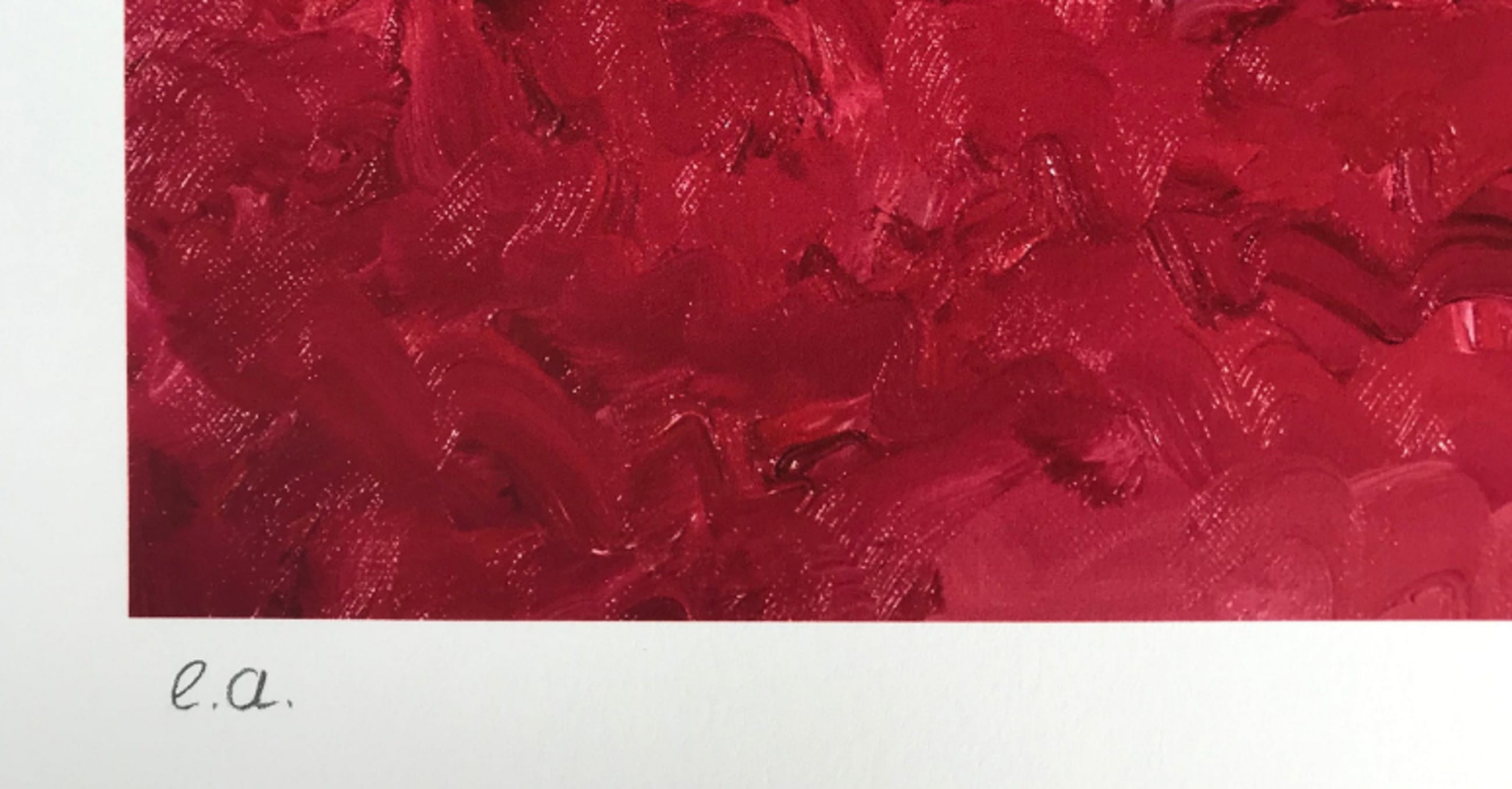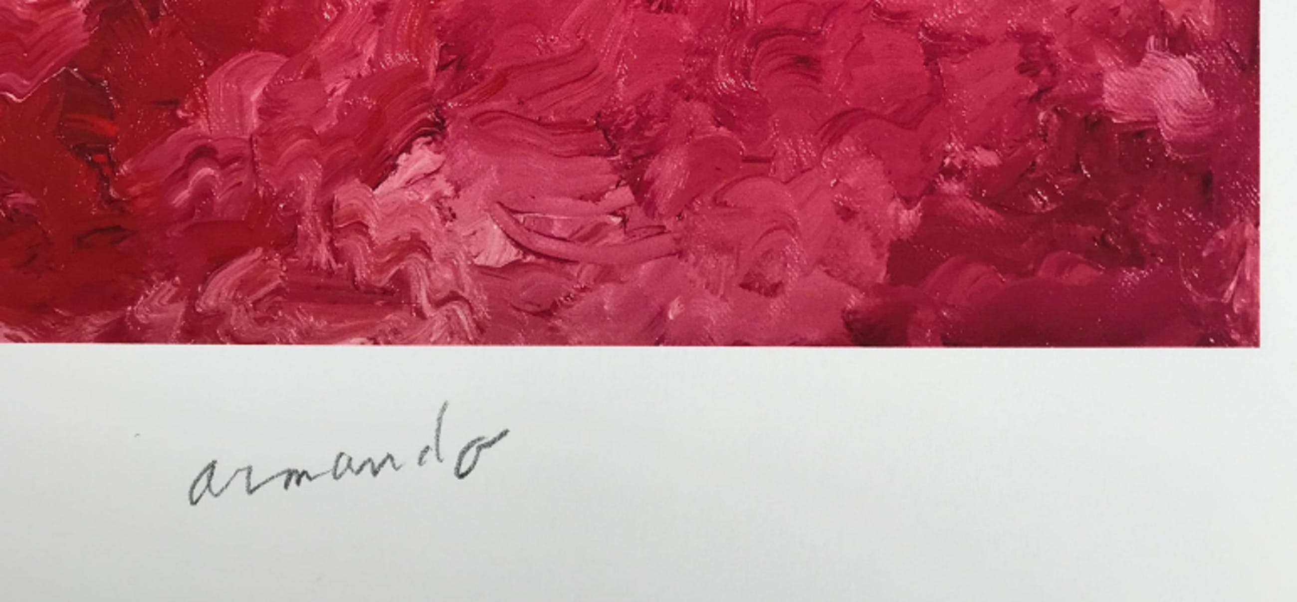 Kleurrijke handgesigneerde giclee in verschillende rood-tinten van de hand van Armando, genummerd: e.a. (epreuve d’artiste).