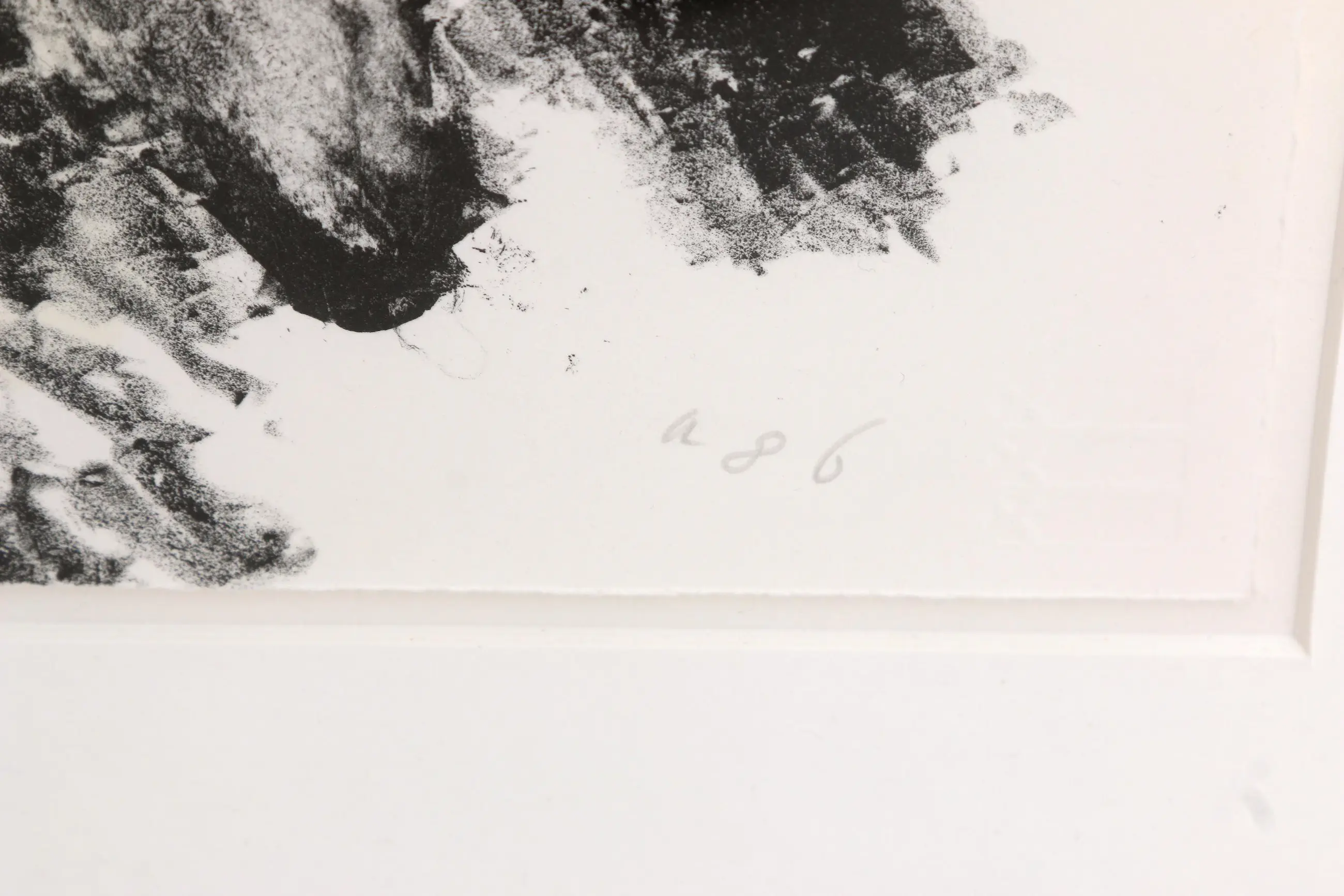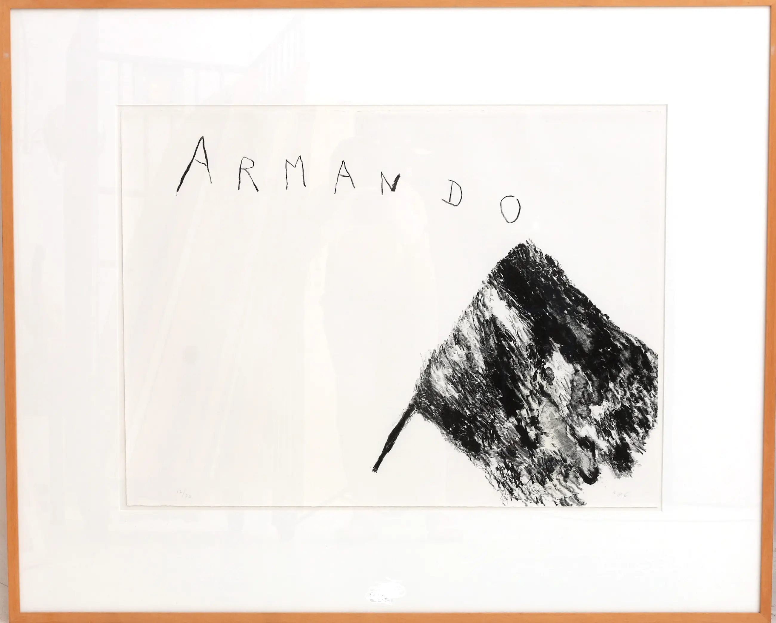 Litho van Armando. Titel: Fähne(Vlag). Jaar: 1986. Nummer: 12/20. Afmetingen incl lijst: H84 x b103cm. Afmetingen voorstelling: H52.5 x b79.5cm. Het werk is rechtsonder, met de hand, gesigneerd door de kunstenaar. De authenticiteit van dit werk wordt volledig gegarandeerd. Een certificaat van echtheid kan, op verzoek, worden gemaild.