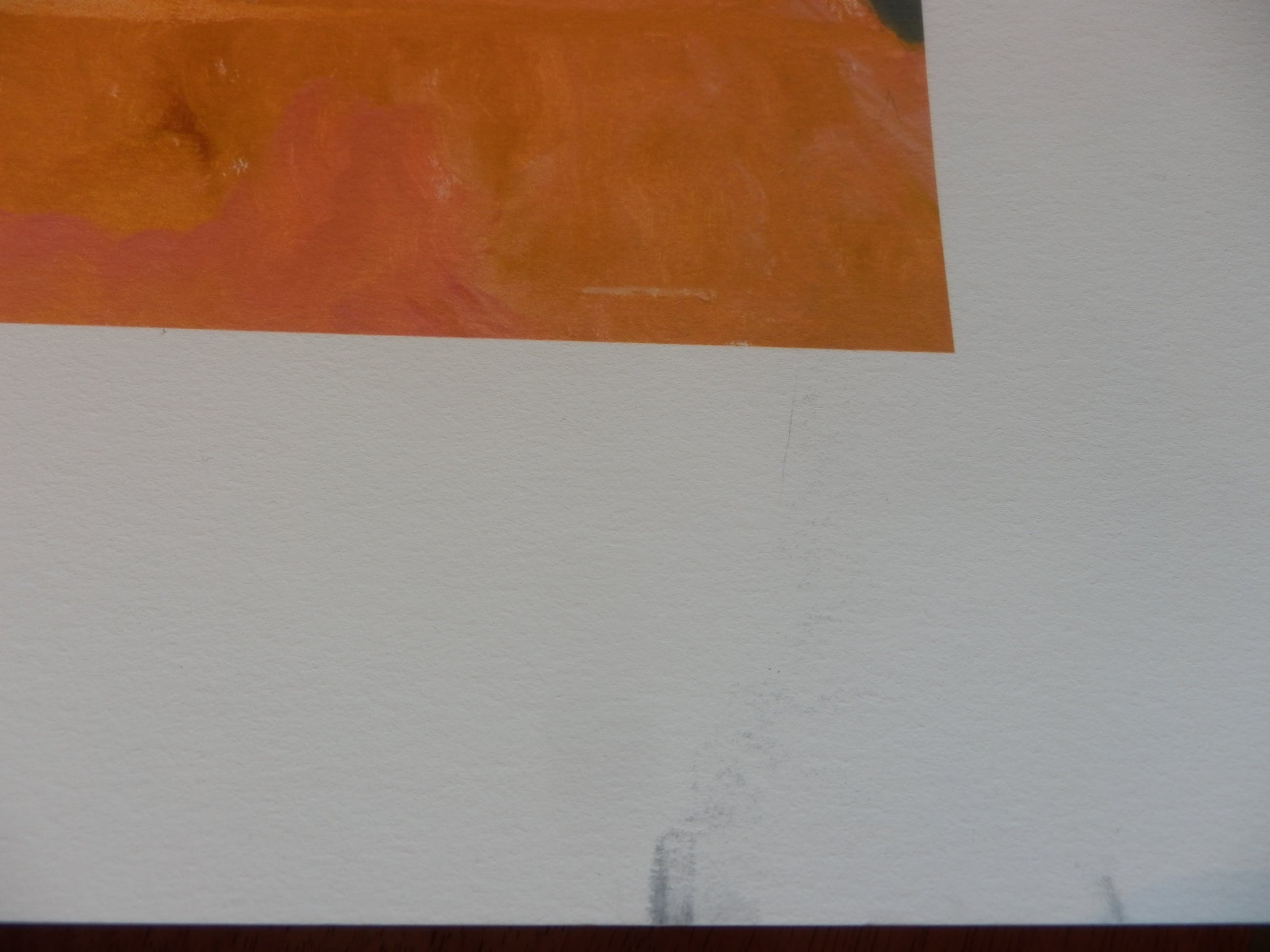 LET OP!!! In de witrand zit wat zeefdrukinkt,die na inlijsting in een passe-partout niet meer zichtbaar is ( zie foto,s)