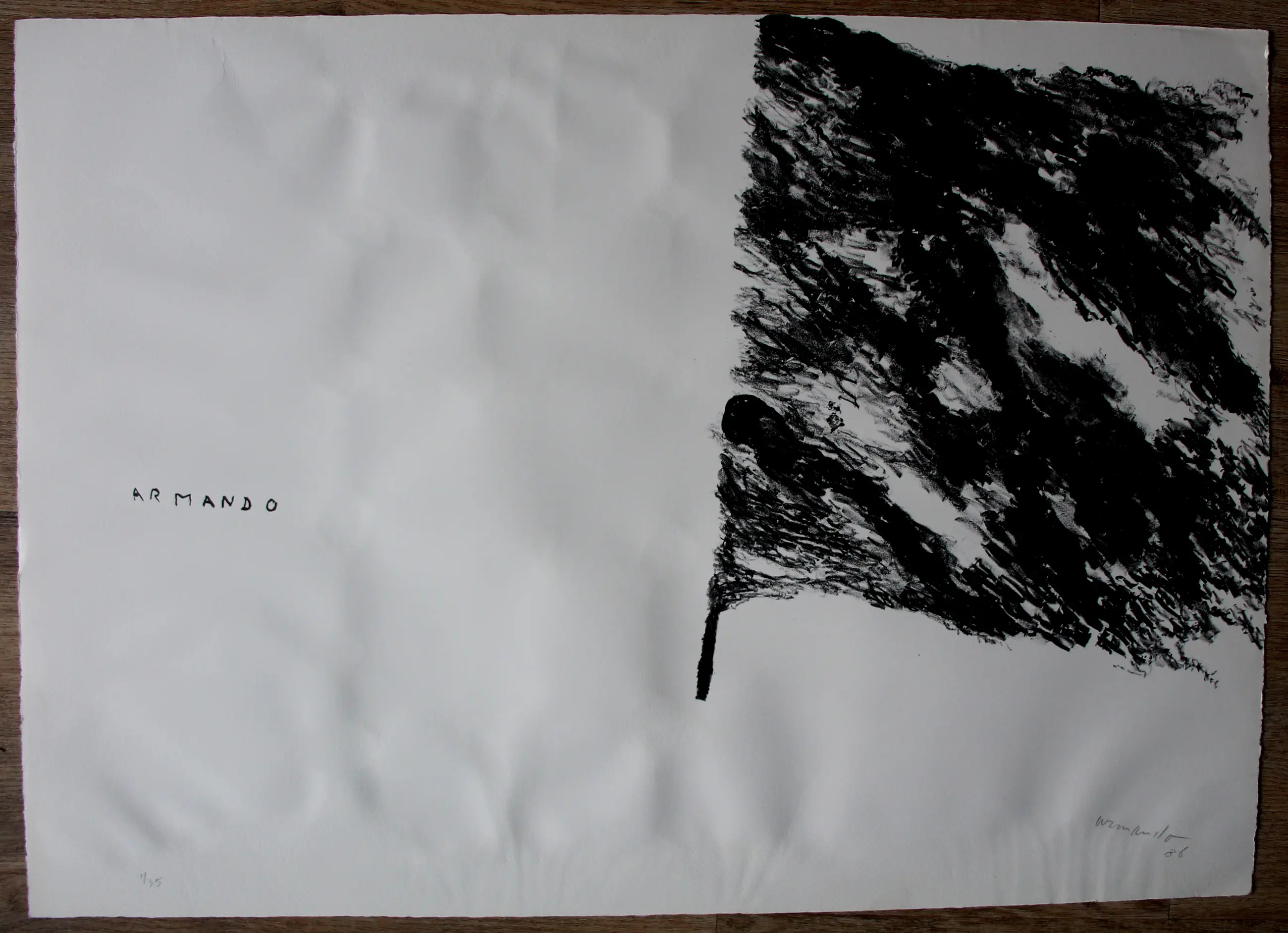 Litho van Armando. Zonder titel. Jaar: 1986. Oplage: 1/35. Afmetingen blad: H56 x b78cm. Afmetingen voorstelling: H45 x b35cm. Het werk is, aan de linker zijkant, gesigneerd door de kunstenaar. De authenticiteit van het aangeboden werk wordt volledig gegarandeerd. Een certificaat van echtheid kan, op aanvraag, worden gemaild.
