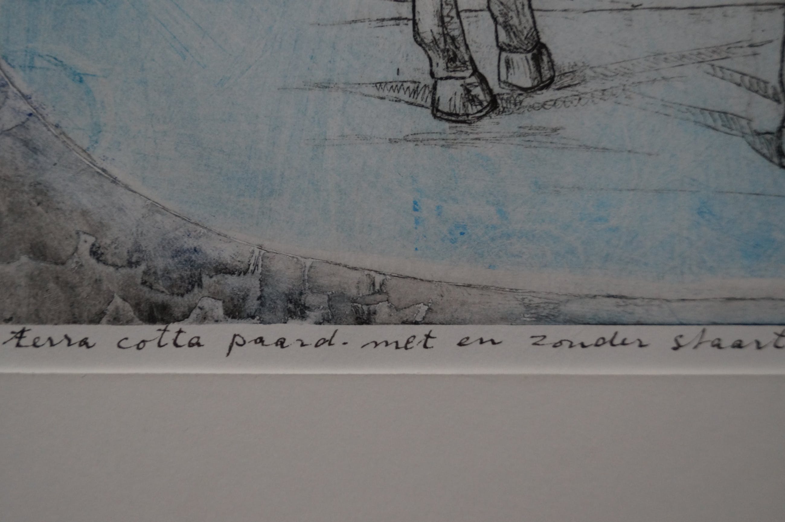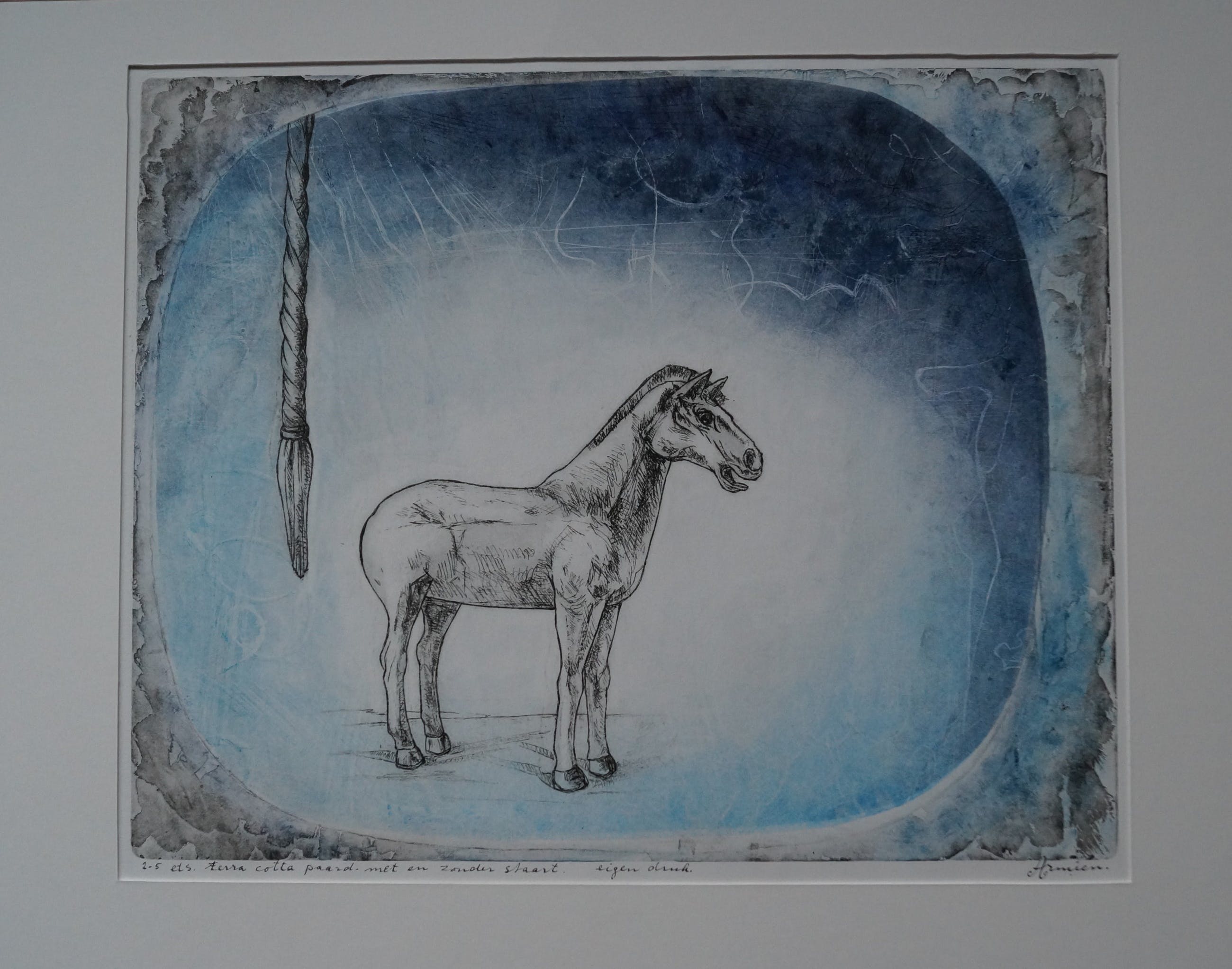 Fraaie ets van Armien Visser Titel: Terra Cotta paard met en zonder staart Oplage: eigen druk Conditie: zeer goed