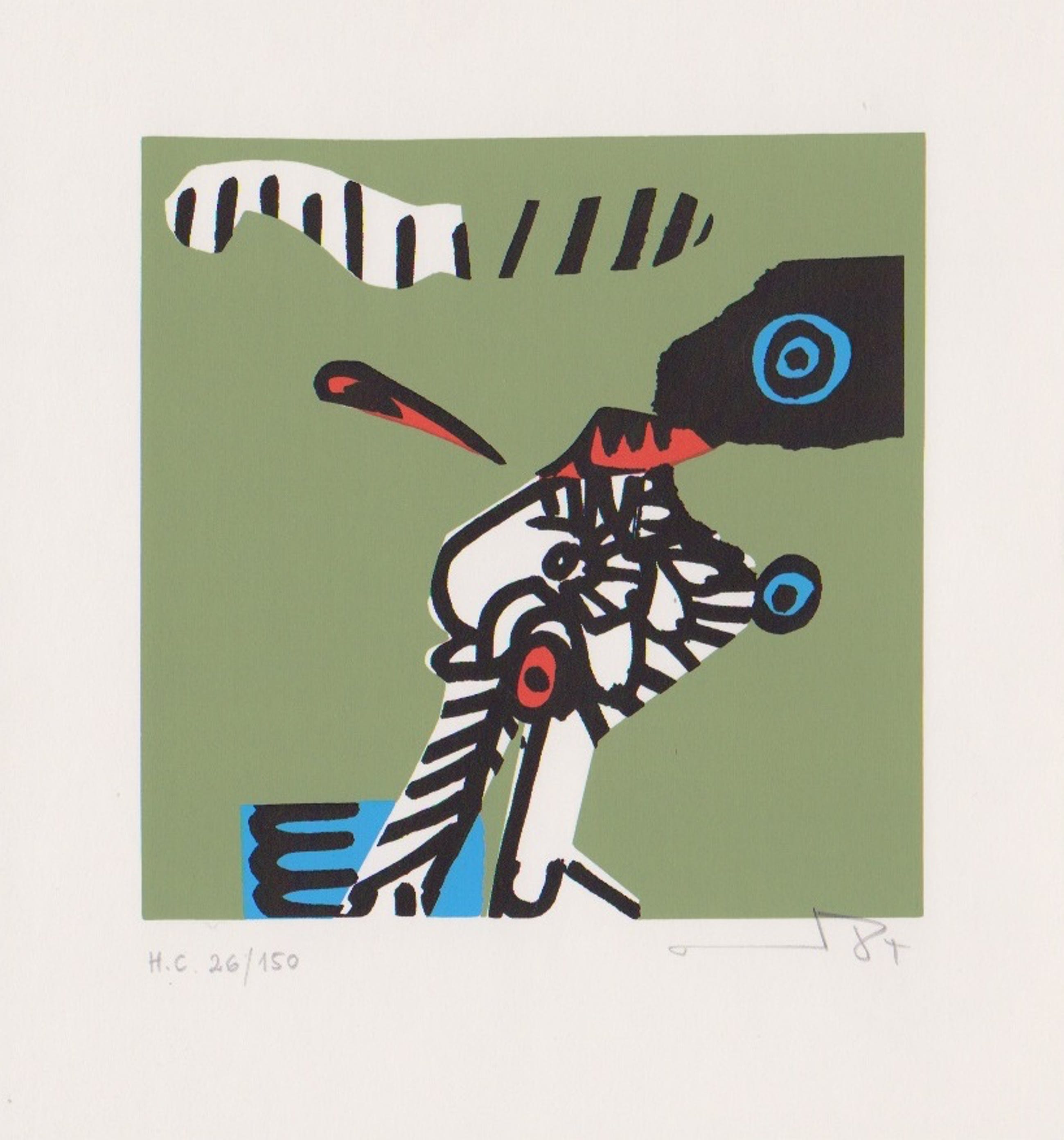 Fraaie handgesigneerde lithografie van Armin Sandig. Titel: Composition II. Afmetingen: 15 x 14 cm.