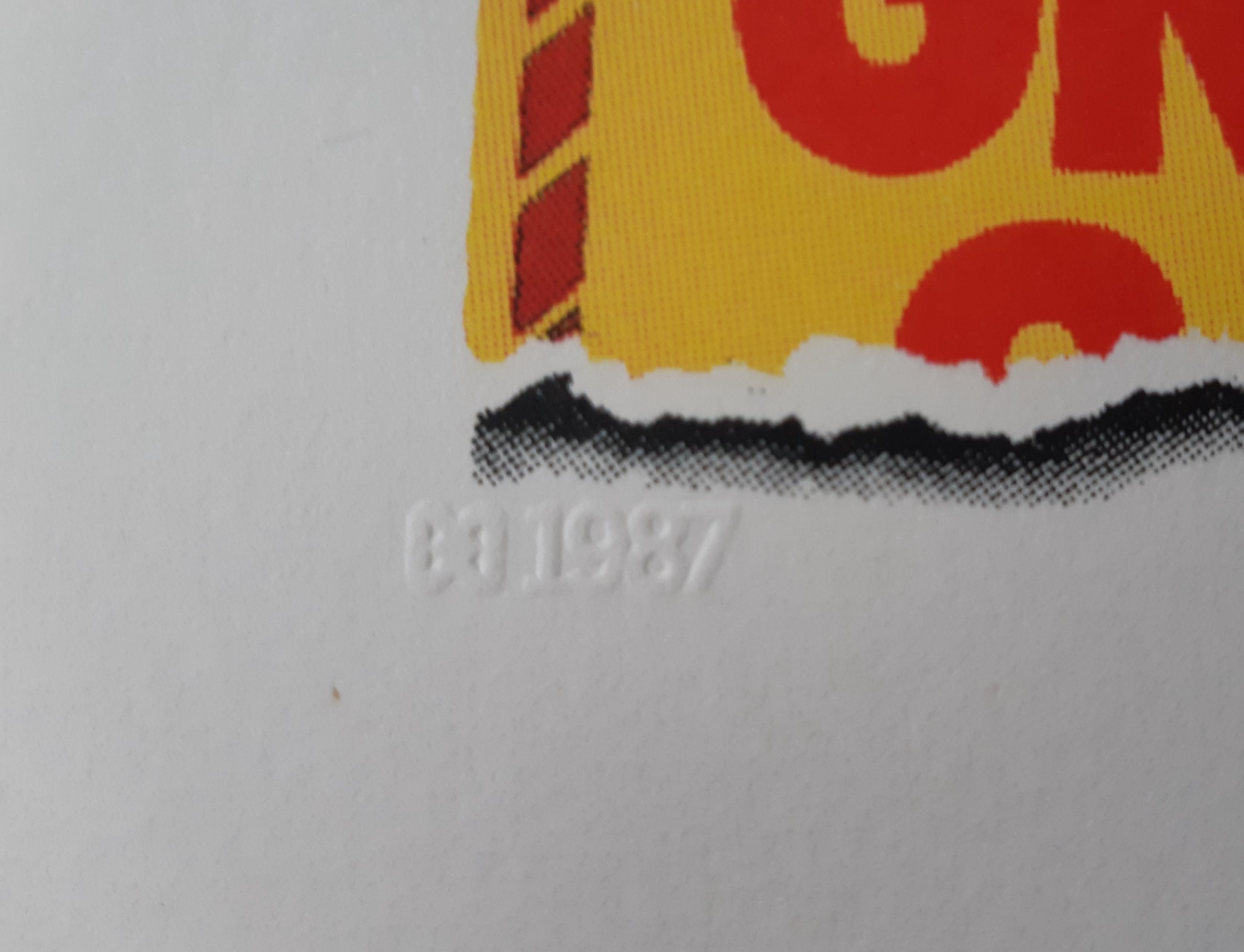 Zeefdruk van Arno Arts. Met potlood gesigneerd. het beeld is 50 x 36. Uitgegeven in de reeks "Het dagelijks leven" ter gelegenheid van het 100-jarig jubileum van AH. Linksonder een blindstempel. De conditie is als nieuw.