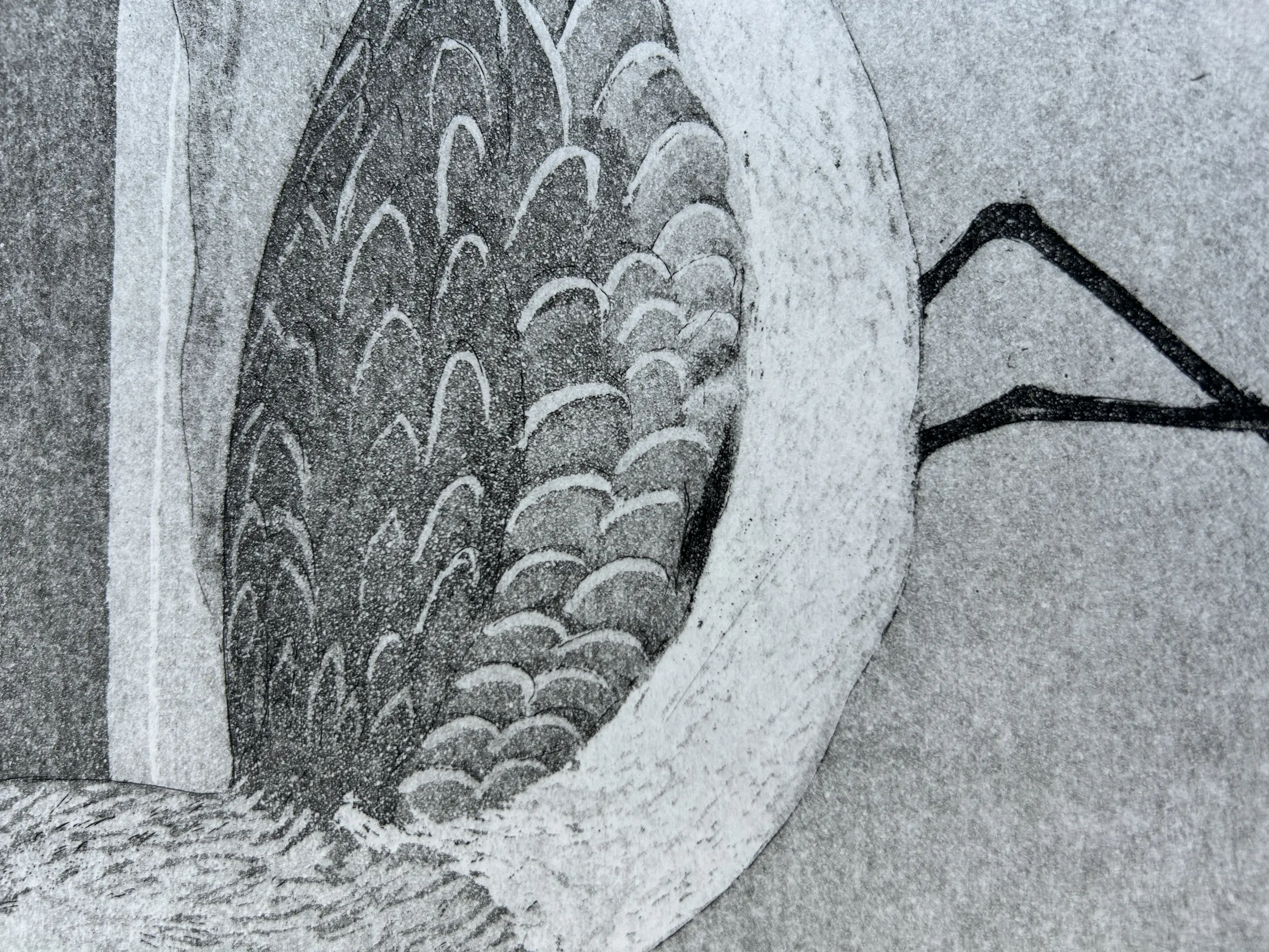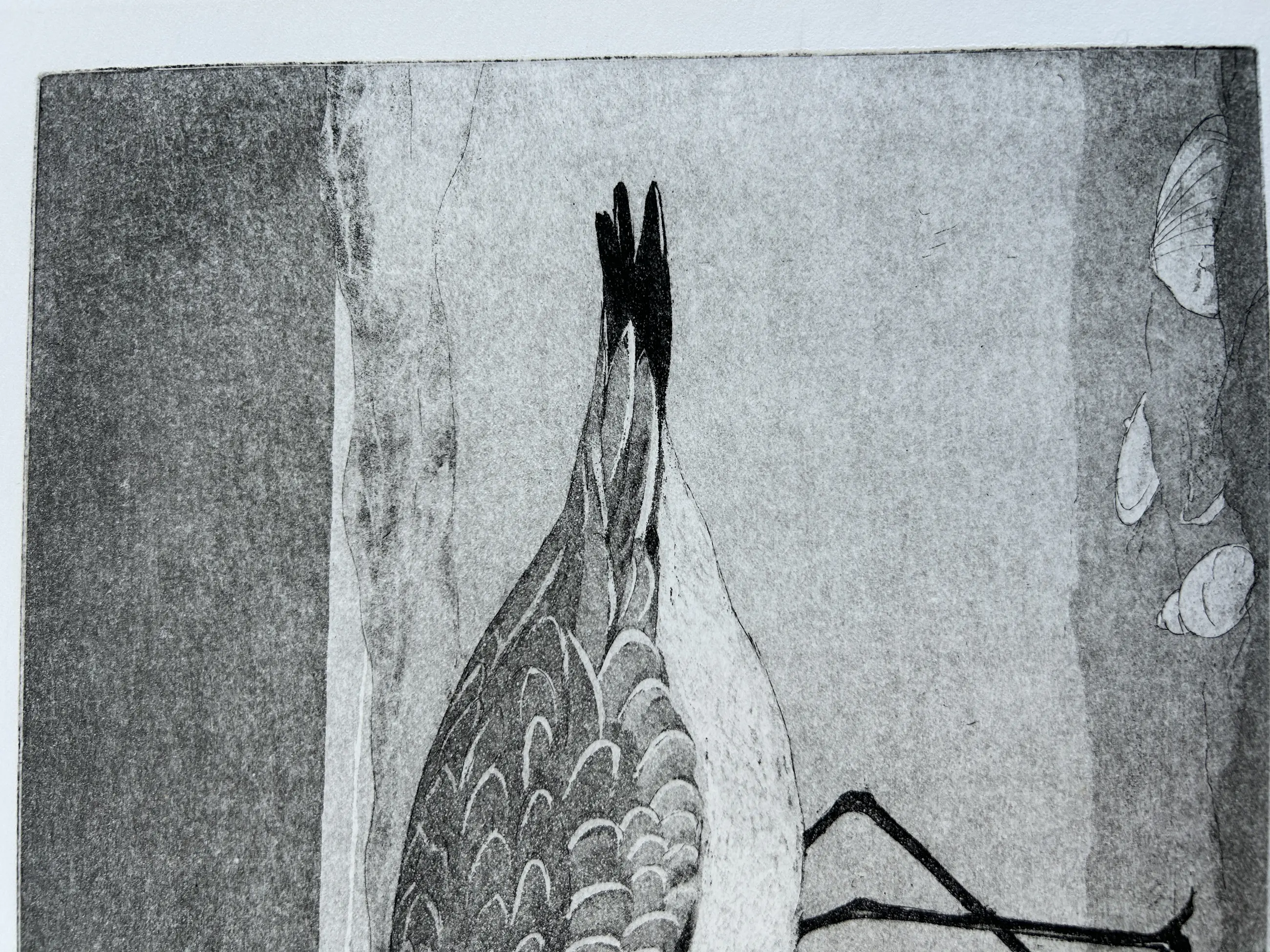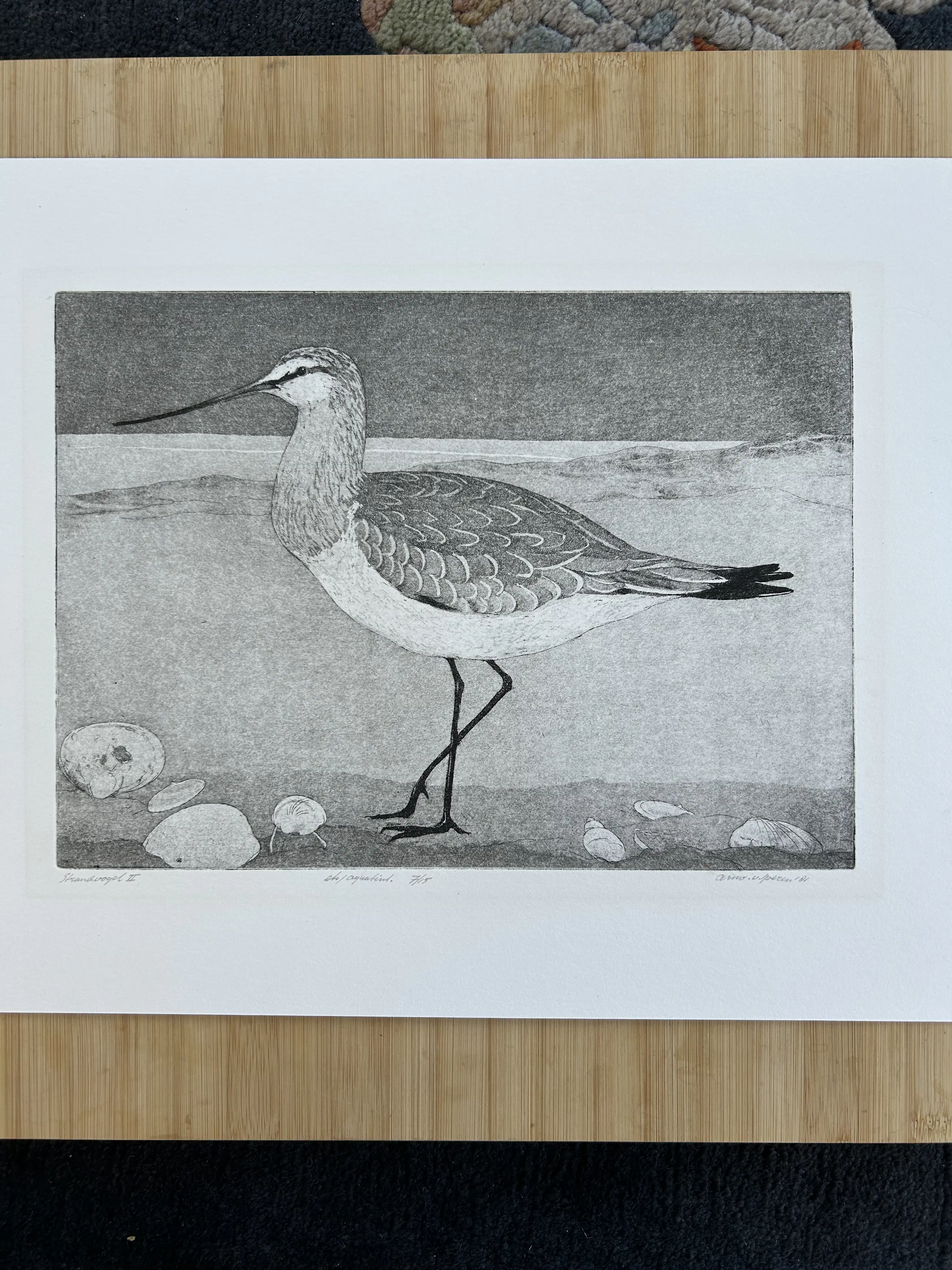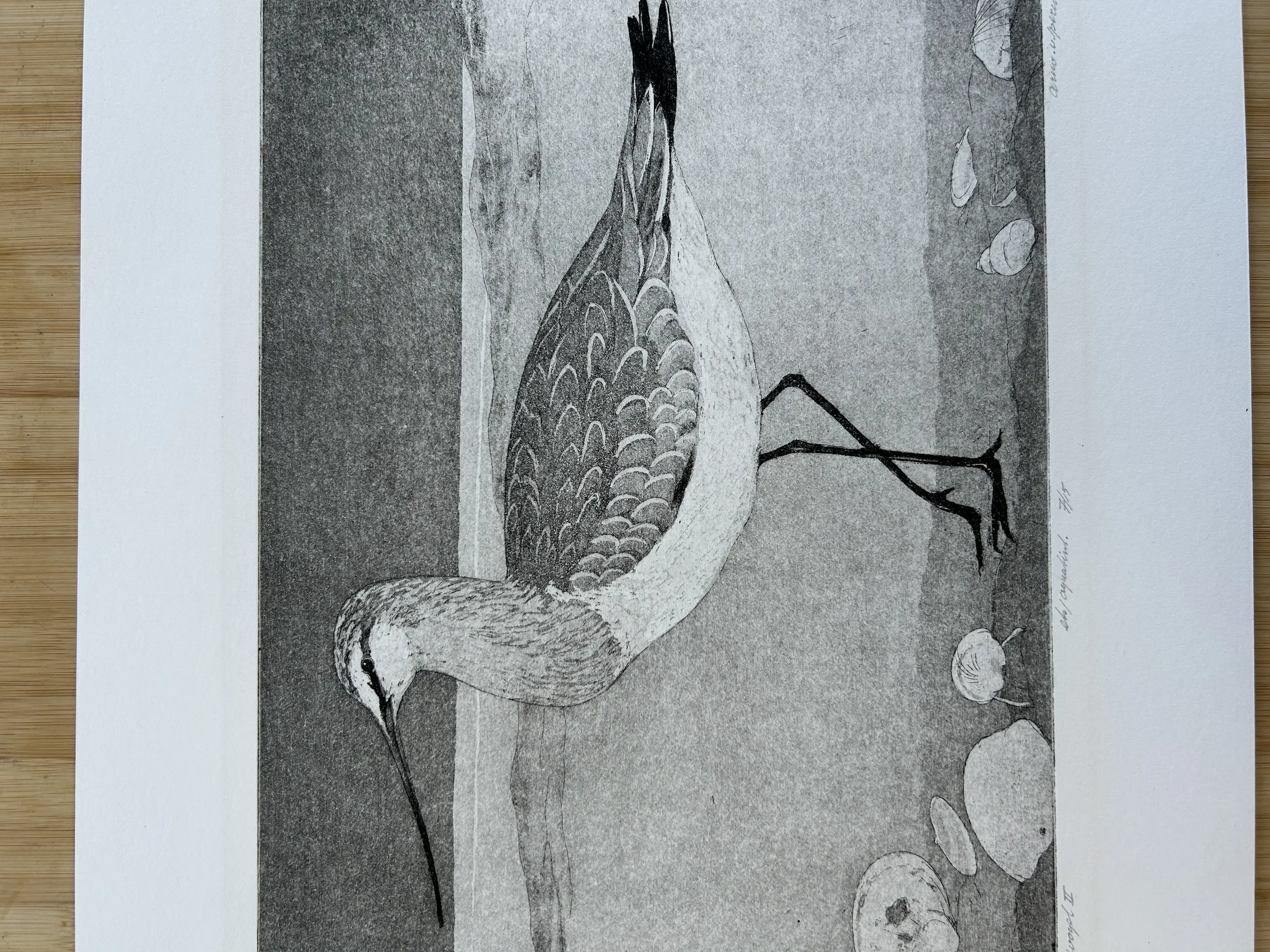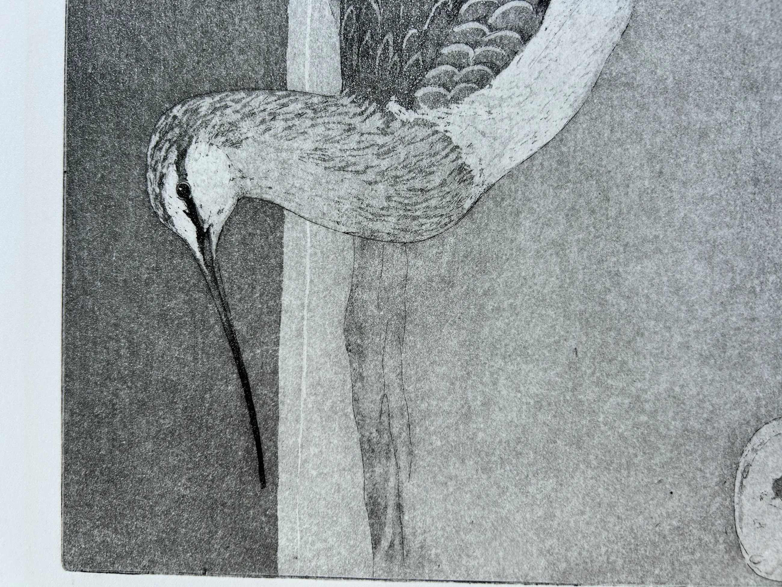 Prachtige ets /aquatint van Standvogel met schelpen en vele details. Afmeting afdruk is 36 / 47 de afbeelding /tekening is 24.3 cm bij 33.8 cm.