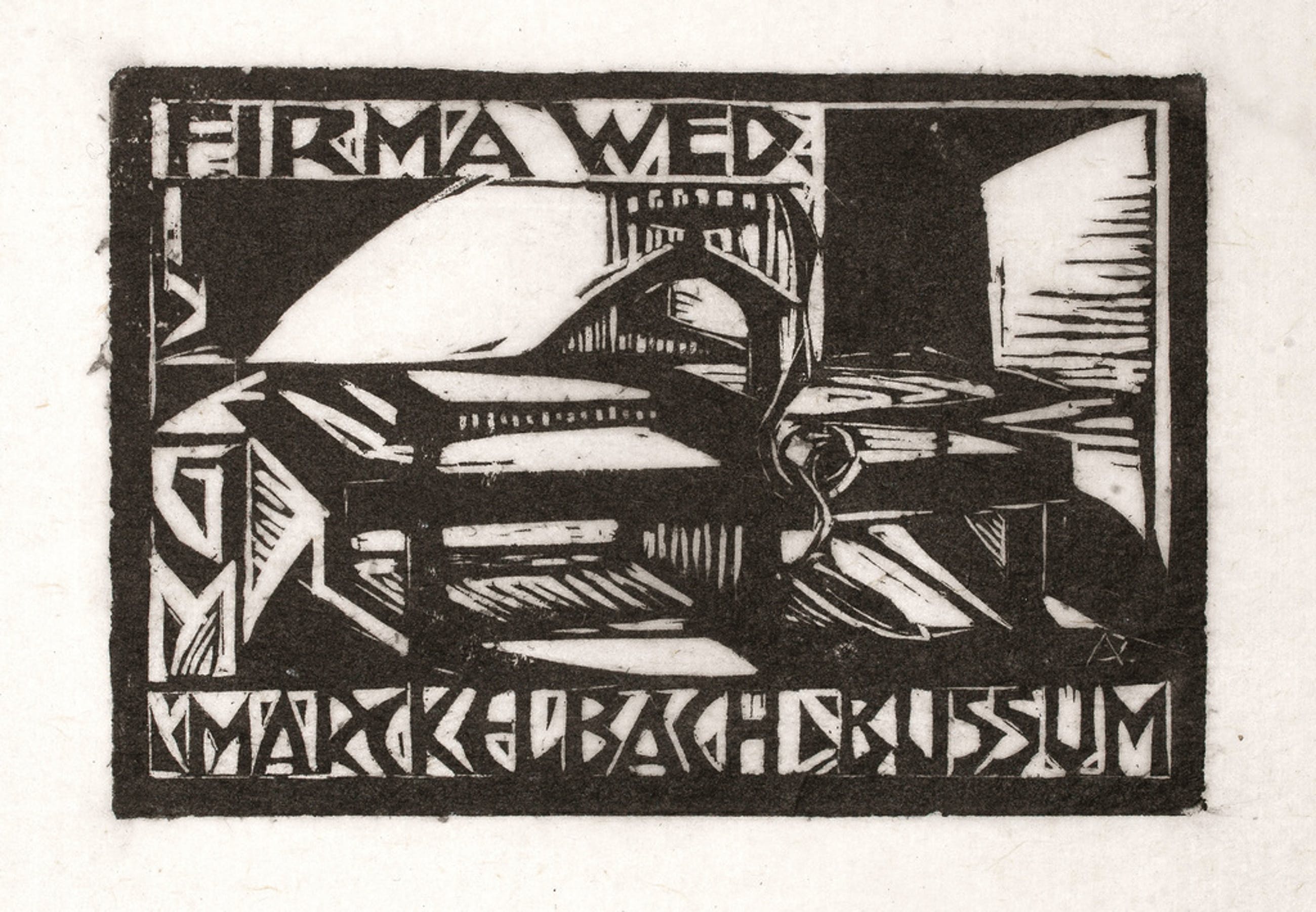 Houtsnede van Arnold Pijpers voor de Firma Wed. G. M. Märckelbach in Bussum