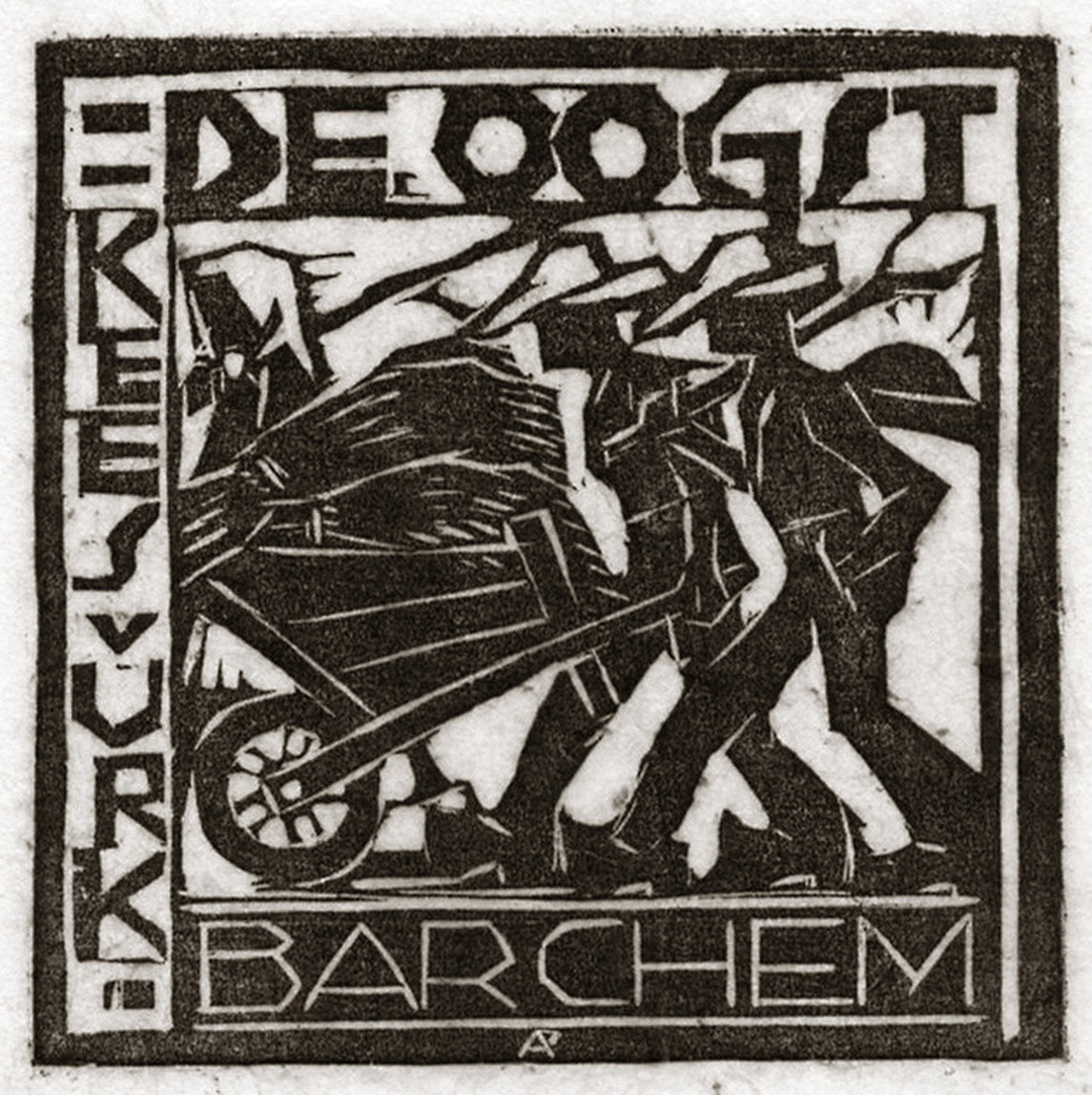 Houtsnede van Arnold Pijpers voor Kunsthandel Kees van Urk 'De oogst' in Barchem, 1927