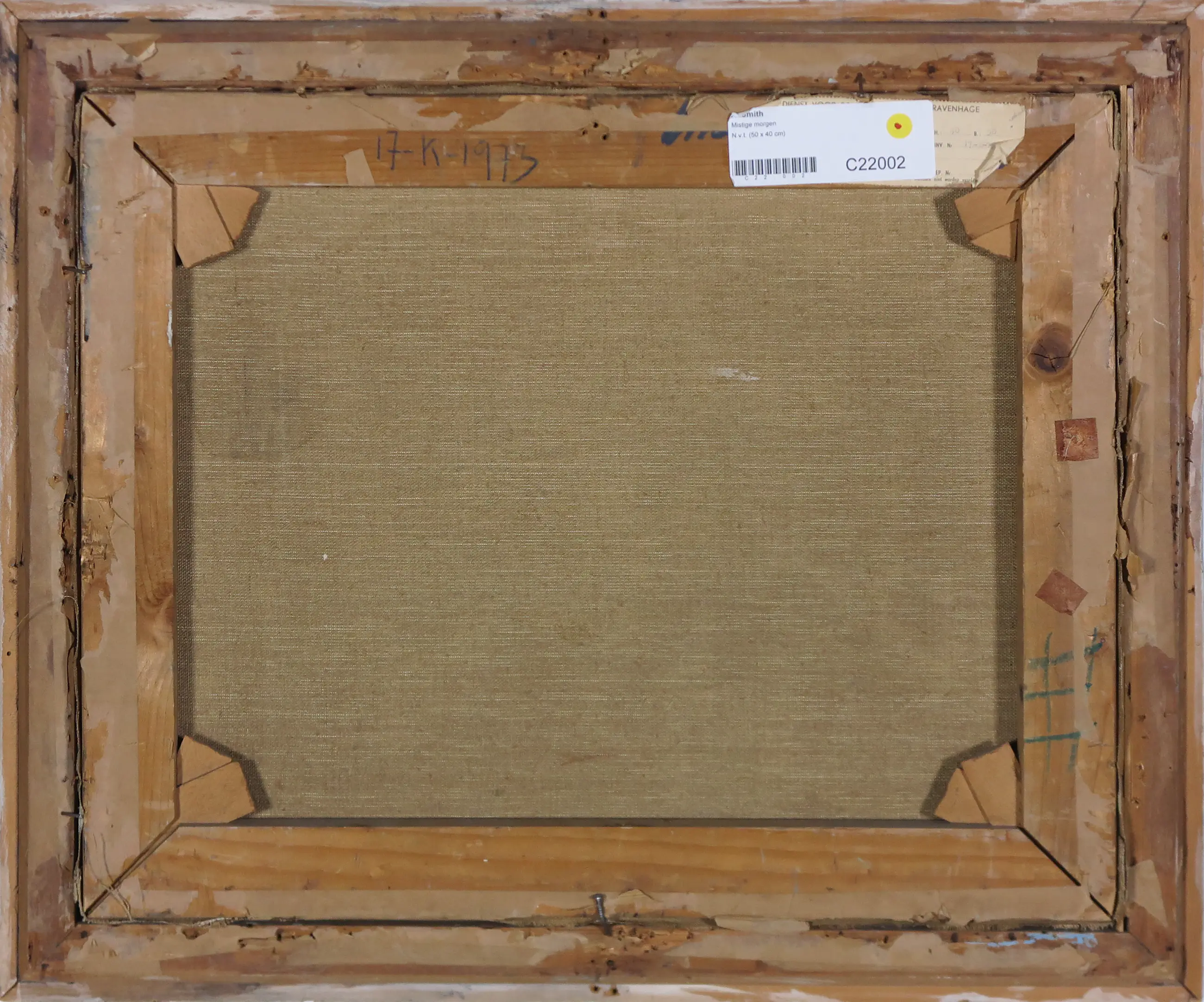 Passe-partout/lijsten: Beschadigingen aan lijsten worden niet beschreven. Indien een werk achter glas is ingelijst en het glas gebroken is, zal dit wel vermeld worden. Passe-partouts worden op geen enkele manier gegarandeerd en ook niet altijd meegezonden.