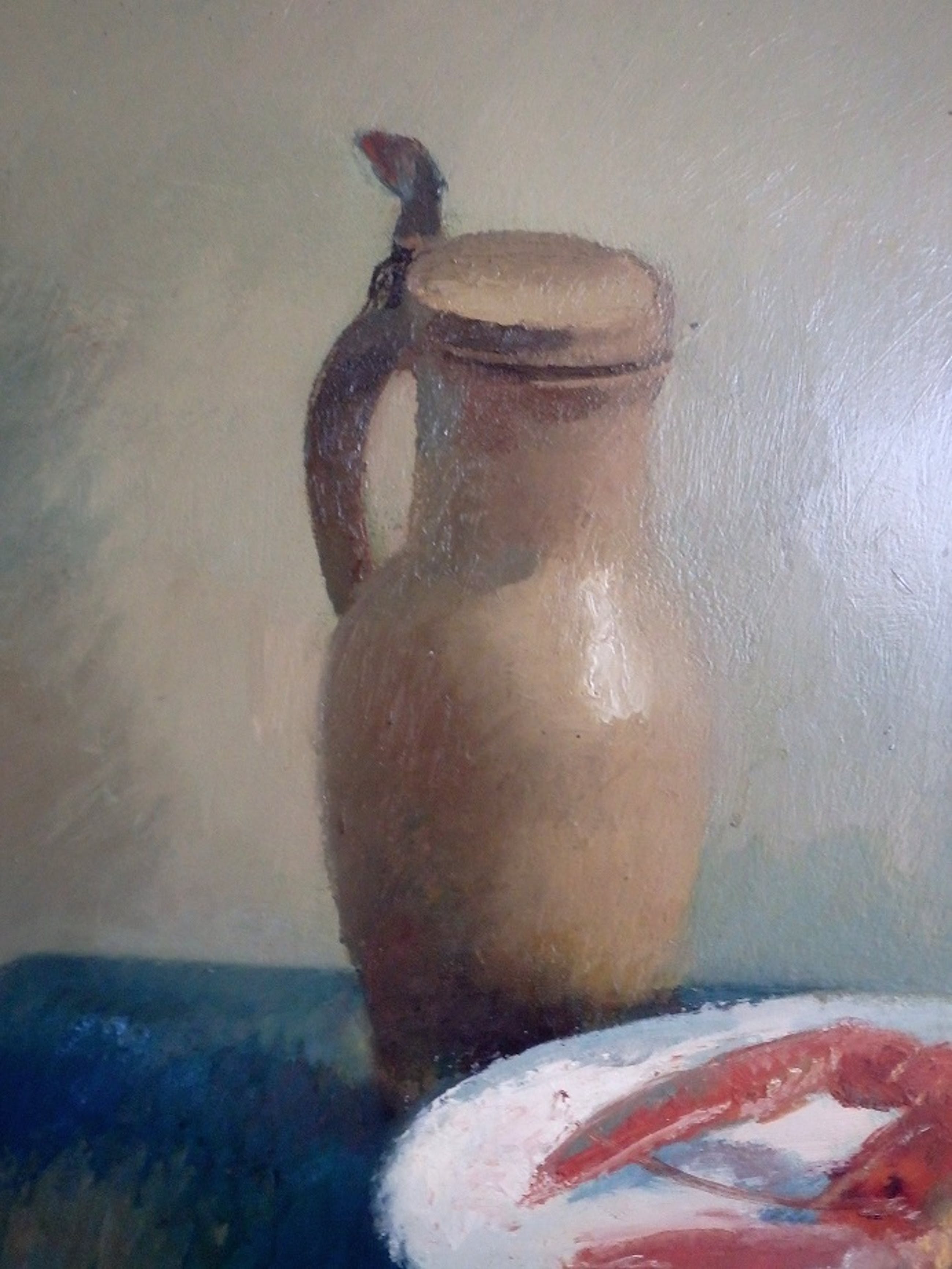 Olieverf of schildersboard 66x70, rechtsboven gesigneerd Arn. Smith en gedateerd 1936, authentiek ingelijst.