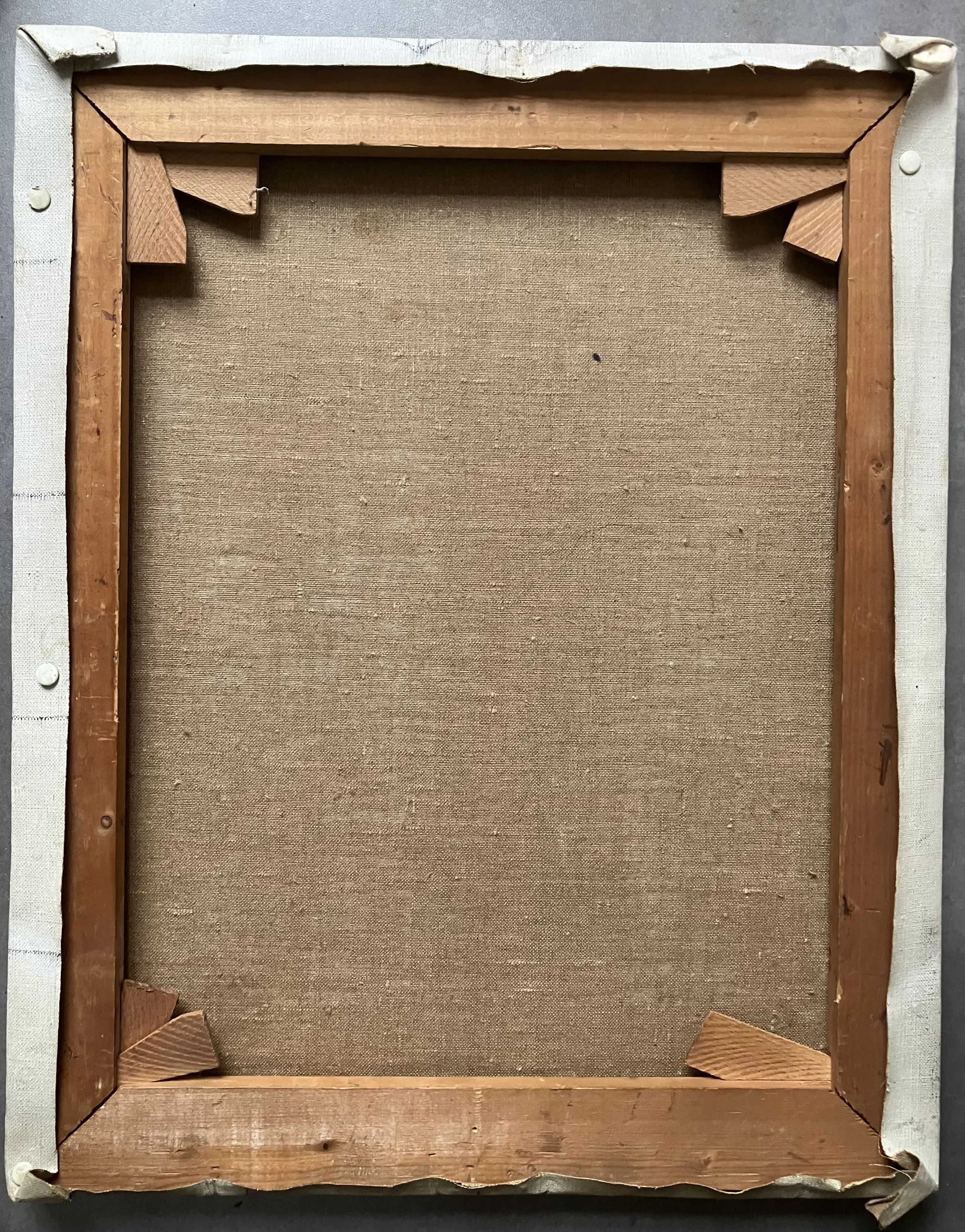 Kleine stukjes verfverlies aan bovenrand en rechtsbovenhoek. Verder in zeer goede staat.