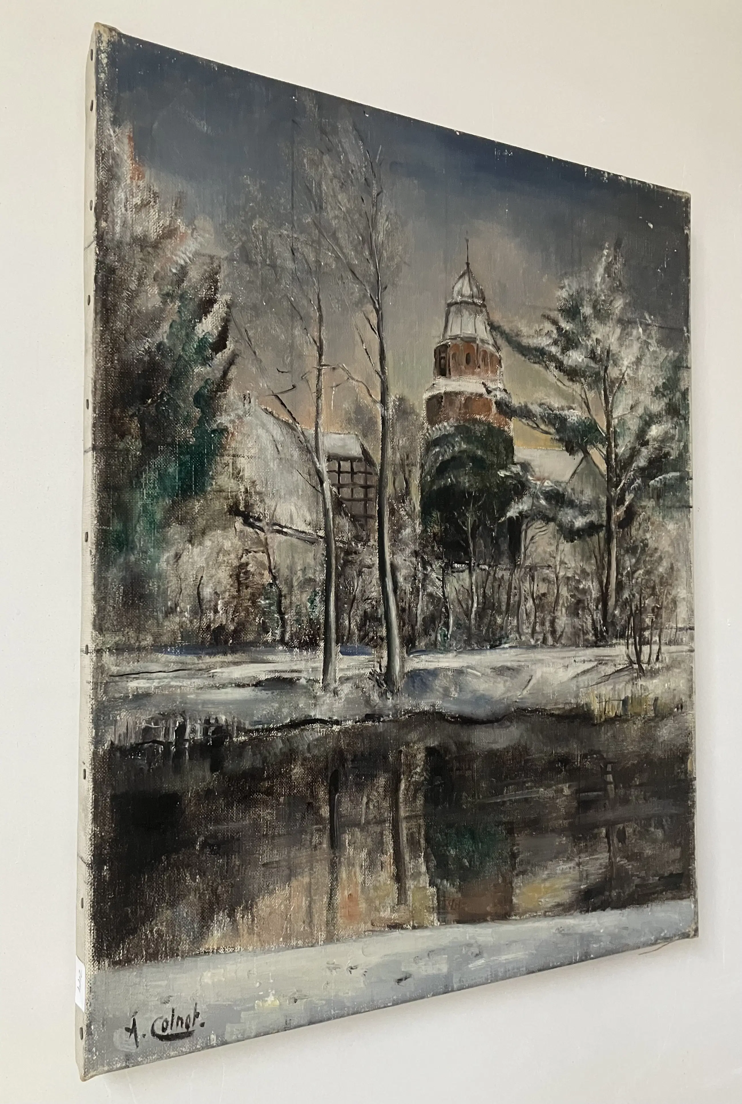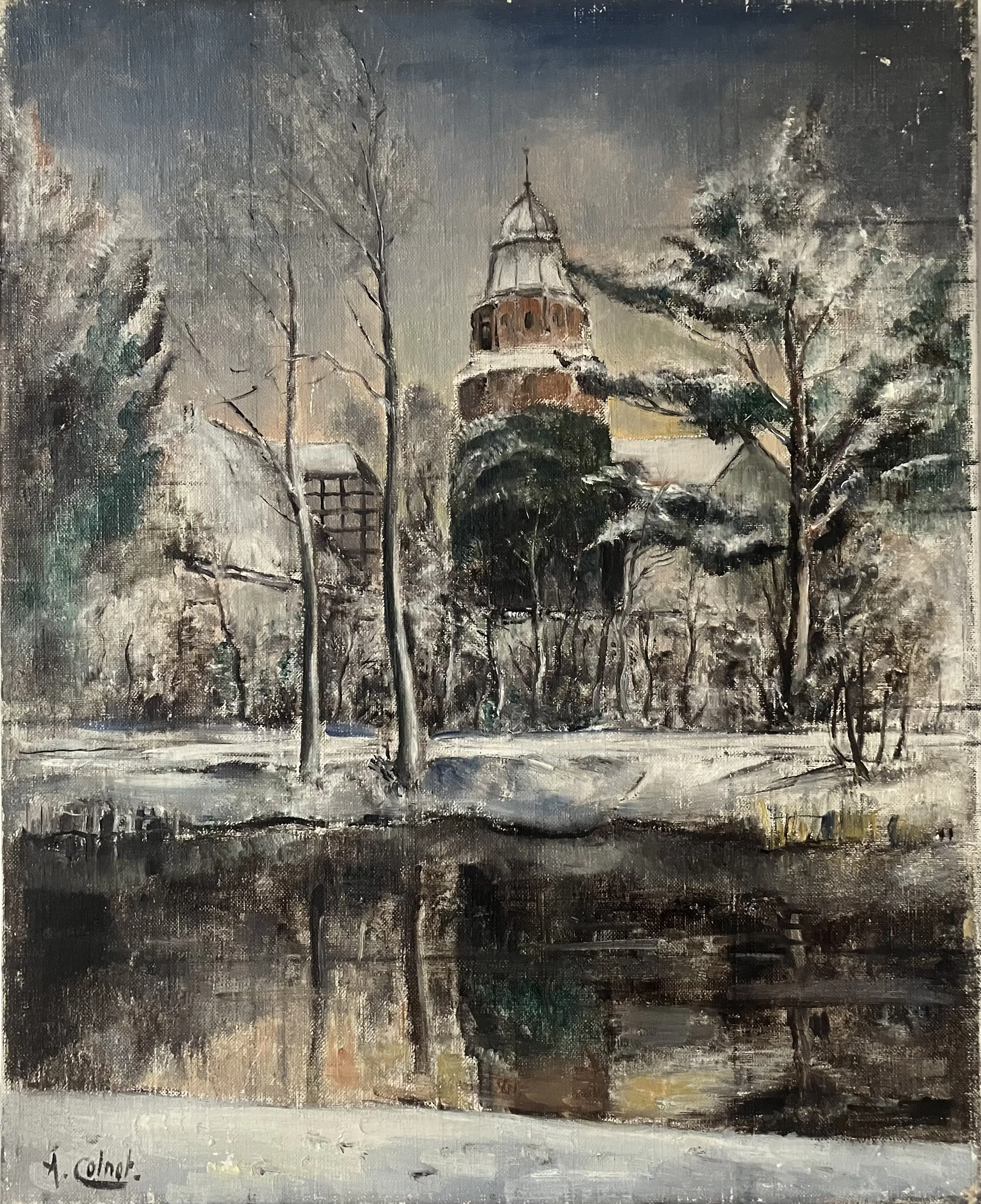 Arnout Colnot - Dorpsgezicht met beek in winter - Olieverf op canvas