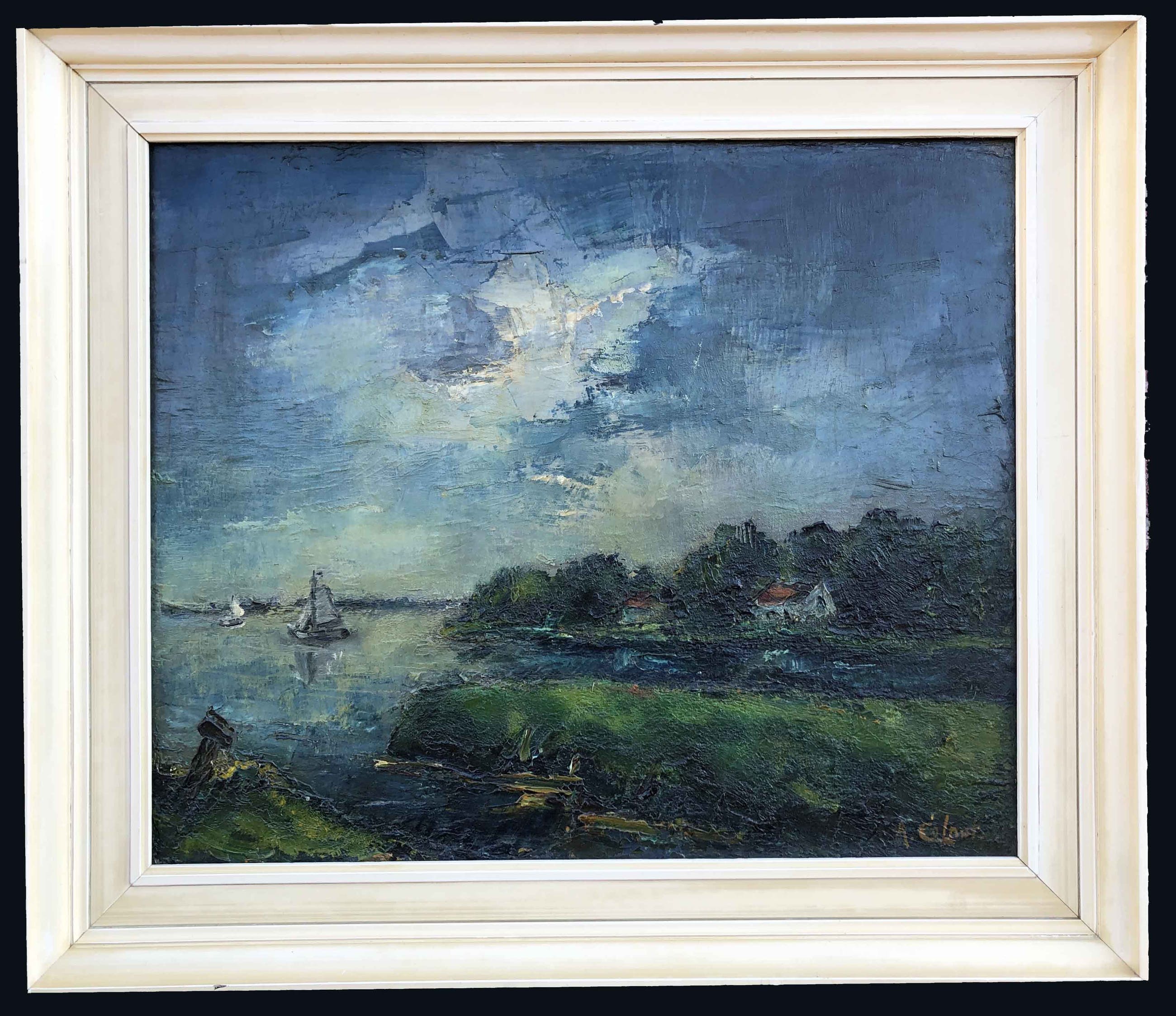 Dit schilderij van A. Colnot is op doek geschilderd. Het doek was nog nat op het moment dat het ingelijst werd. Gewoon een leuk weetje, Colnot deed dit wel vaker omdat zijn werken direct uit zijn atelier werden verkocht. Olieverf zit namelijk ook nog op de binnenkanten van de lijst. Het doek is onbeschadigd.