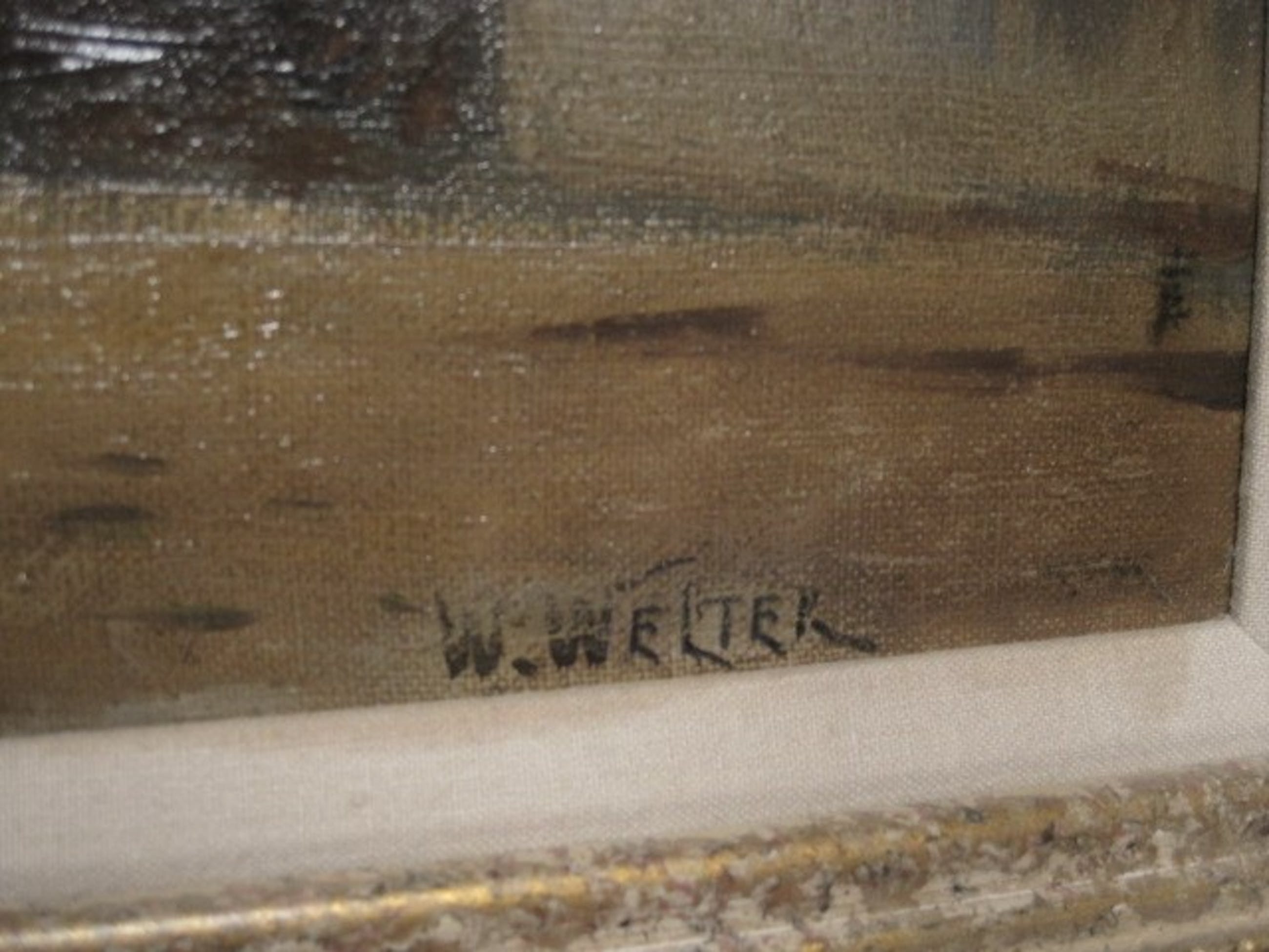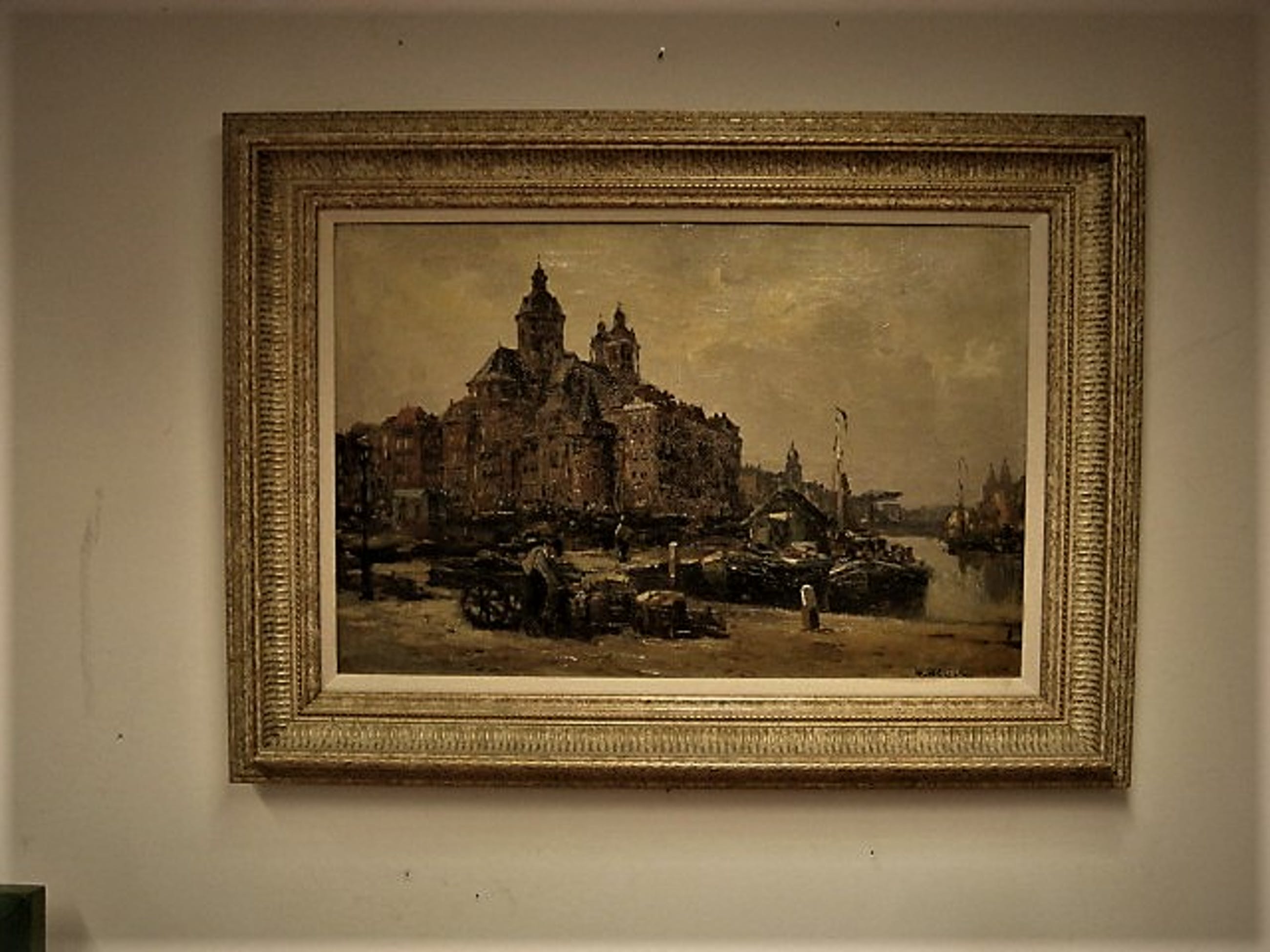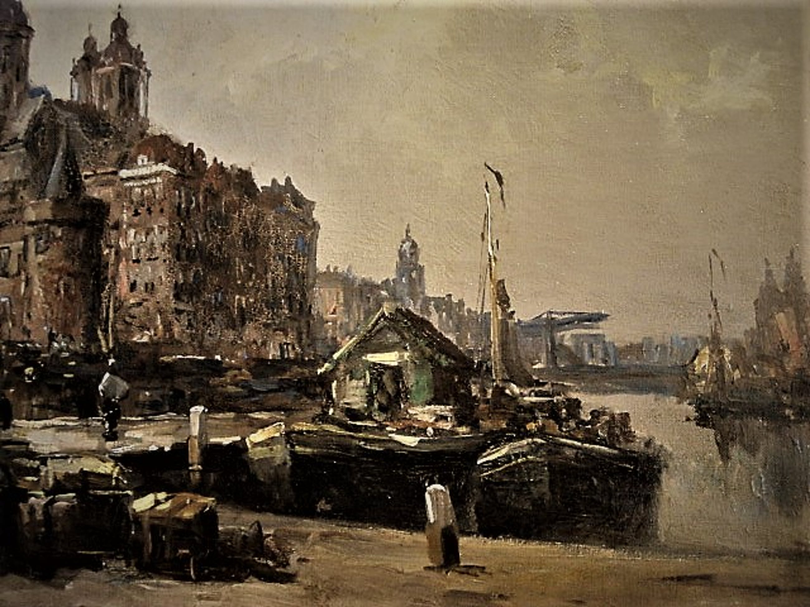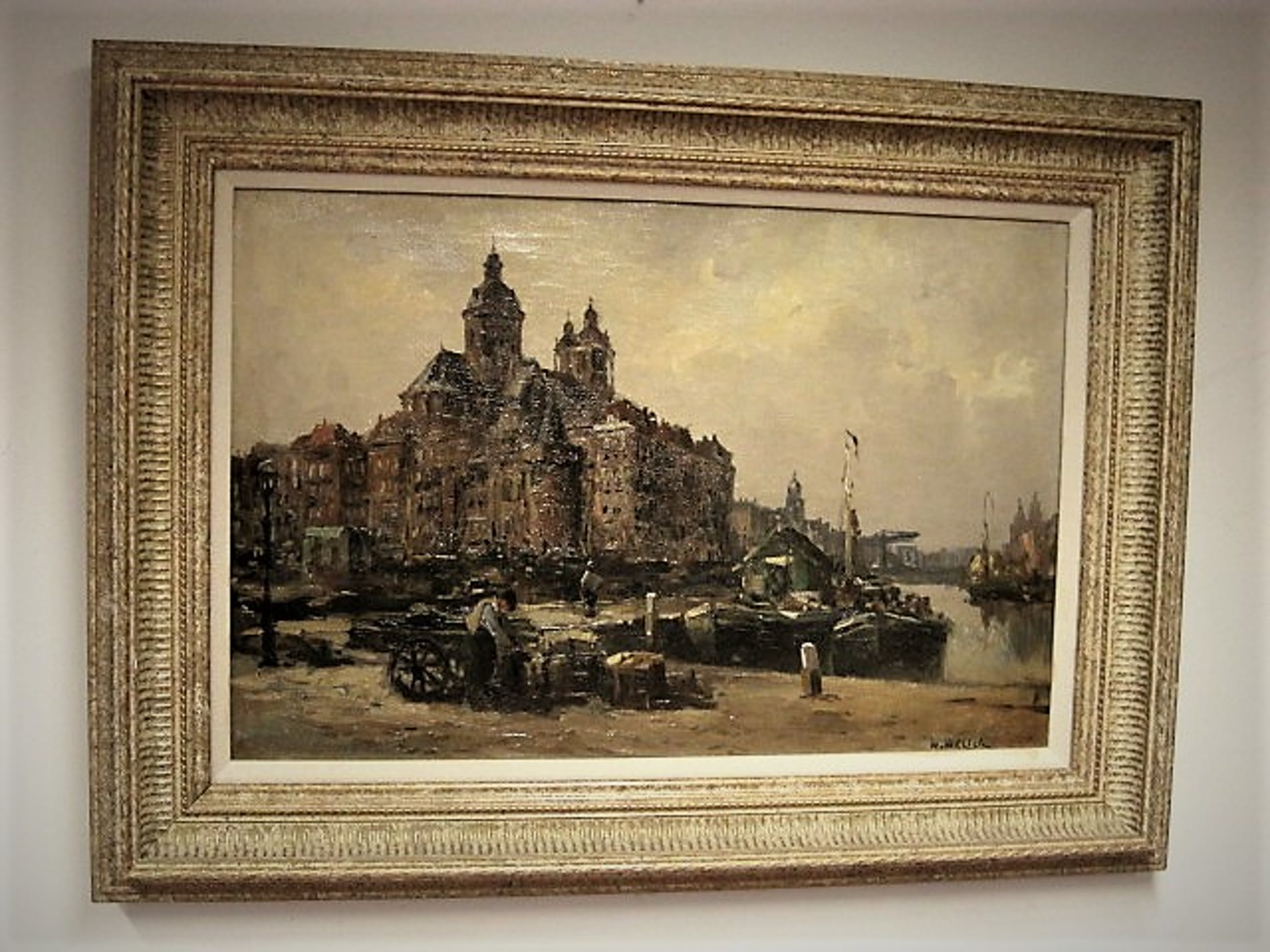 Gilst, Arnoud van Den Haag 1898 - 1982 Bennebroek Arnoud Van Gilst was schilder en tekenaar van landschappen, boerderijen, bossages, etc. Hij was leerling van de Academie v. B.K. te Den Haag, waar hij eerst begon als beeldhouwer. Na 1923 is hij gaan schilderen. Arnoud Van Gilst woonde en werkte tot 1937 in Den Haag en daarna in Haarlem. Van Gilst schilderde in een naturalistische-impressionistische stijl. Hij signeerde zijn werk ook vaak onder de meisjesnaam van zijn moeder A. Jonstra. Arnoud van Gilst legde zich vooral toe op Hollandse landschappen, stads-en duingezichten, zeeën en paarden. Onder de naam A. Jonstra schilderde hij zeilende schepen op de Friese meren. Van Gilst schilderde in een naturalistische-impressionistische stijl. Veel van zijn werk, vooral de landschappen, doen sterk denken aan dat van Cor Noltee. Van Gilst was een echte buitenschilder. Hij wilde perse geïnspireerd raken door de omgeving en hij toog het liefst naar een afgelegen plek waar niet elk moment iemand kon opduiken die over zijn schouders meekeek. Het liefst nestelde Van Gilst zich aan een slootkant en schilderde hij de aan de overkant gelegen velden, die hij eerst goed herkenbaar en gedetailleerd op doek bracht en later bij de uitwerking weer wat liet vervagen. Hij hield er een zeer precieze, bijna topografische interpretatie van het landschap op na, compleet met rietschelven, hooibergen schuurtjes en stallen. Met zijn wat donzige toets benadert Van Gilst heel dicht de aparte sfeer die op het land aanwezig is op windstille dagen, als de lucht gesluierd is. Mogelijk heeft Arnoud van Gilst geschilderd onder pseudoniem M Ottee. Hierover zijn geen eensluidende verklaringen te krijgen. Enkele jaren geleden veilde Christies Amsterdam een fors werk met voerlieden en werkpaarden op een kade, gesigneerd M Ottee. In de catalogus werd vermeld dat het hier mogelijk om een pseudoniem voor Arnoud van Gilst zou gaan. Uit het Kunst & Antiek Journaal van juni/juli 2005, artikel van de heer J.H.F.M. Heerkens Thijssen, Register Makelaar Taxateur te Haarlem. Antwoord op een lezersvraag naar aanleiding van de signatuur H. Endlich en het mogelijke pseudoniem voor een van de schilders uit de Knikker familie. In de jaren zeventig behoorde de kunstschilder Arnout van Gilst, uit Bennebroek, tot de regelmatige bezoekers van onze Kunstzalen in Haarlem. Hij was een gezellige prater en hij had het vaak over zijn carrière en ervaringen als kunstschilder. Van Gilst was een wat ijdele man, hij droeg altijd een zonnebril, een witte pet en handschoenen. Hij reed in een witte Opel Kapitein. Hij maakte 5 tot 7 schilderijen in de week en hij had drie ezels in zijn atelier staan. Zo kon hij heel gemakkelijk overstappen van het ene naar het andere schilderij. De meeste schilderstukken gingen in die tijd naar ene Welther in Den Haag. Ze raakten goed bevriend. Henk Welther speelde de kunstschilder op zijn Haags, met de baret schuin op het hoofd. Hij had goede relaties. Eens in de week bracht Van Gilst hem een aantal schilderijen, waarvoor hij afhankelijk van de maat, vijf a tien gulden per stuk kreeg. Hij hoefde ze niet te signeren, dat zou Welther zelf wel doen. Van Gilst ontmoette daar ook collega schilders die precies het zelfde deden. Landschap, stilleven, dorpsgezicht, ect. Deze schilder waren Aris Knikker, Jan Knikker sr., Jan Knikker jr., Henk Schallenberg en Cornelis de Bruin. De schilderijen werden door Welther vervolgens voorzien van een signatuur zoals; H. Endlich, Henk Welther of W. Markenstein. Endlich was de meisjes naam van zijn moeder. Met deze namen, net als Markenstein, kon hij goed terecht op de Duitse markt. De stukken met Welther gesigneerd gingen veelal naar Engeland, , Canada en de Verenigde Staten.