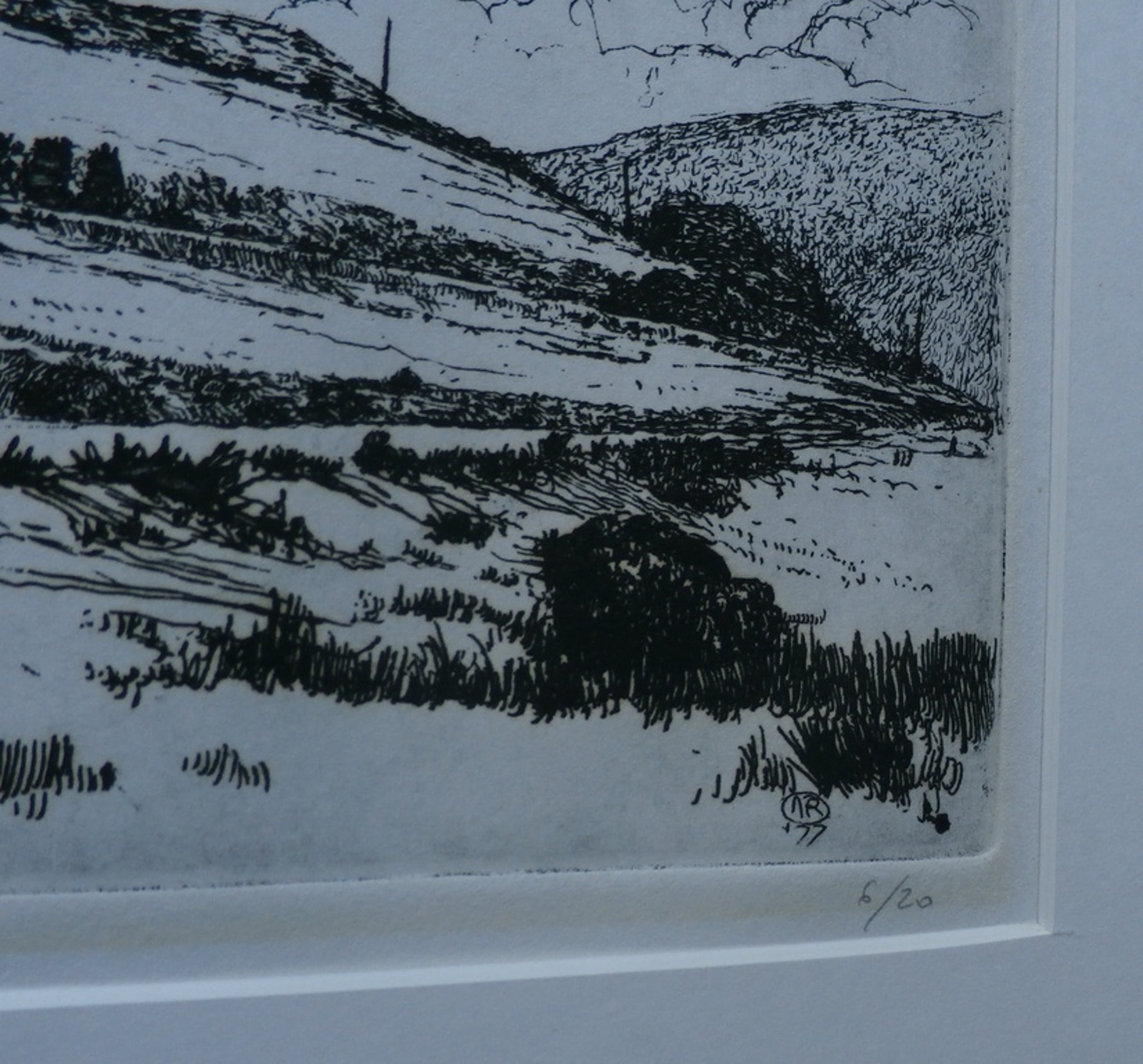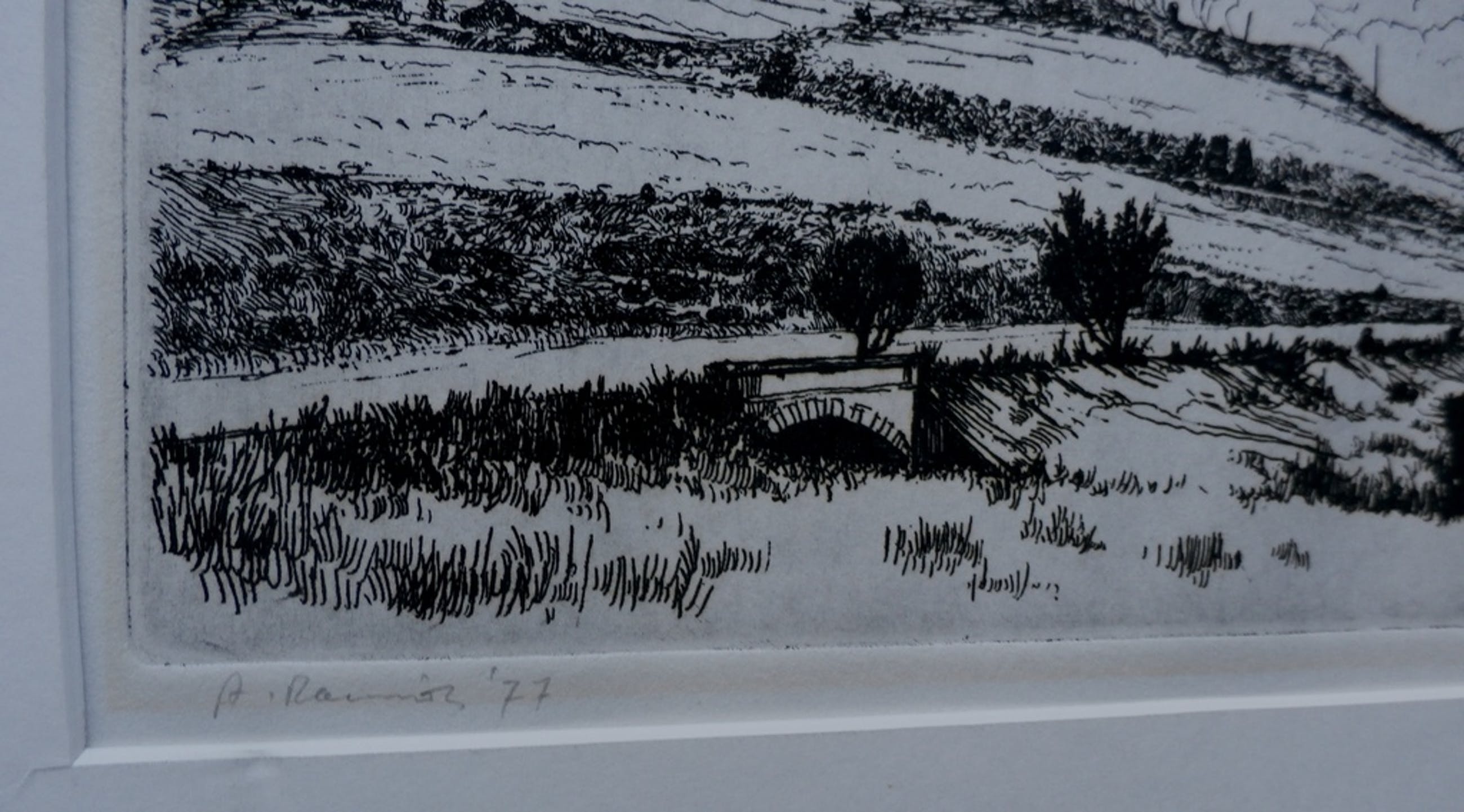 Ets van Arnulf Rainier uit 1977. Nummer 6/20. Afmetingen blad: H71 x b60 cm. Afmetingen voorstelling: H13 x b20.5. Het werk is linksonder gesigneerd door de kunstenaar. De authenticiteit van het aangeboden werk wordt voor 100% gegarandeerd. Een certificaat van echtheid kan, op aanvraag, worden meegestuurd.Conditie: in goede staat. Wat vlekjes op de passepartout.