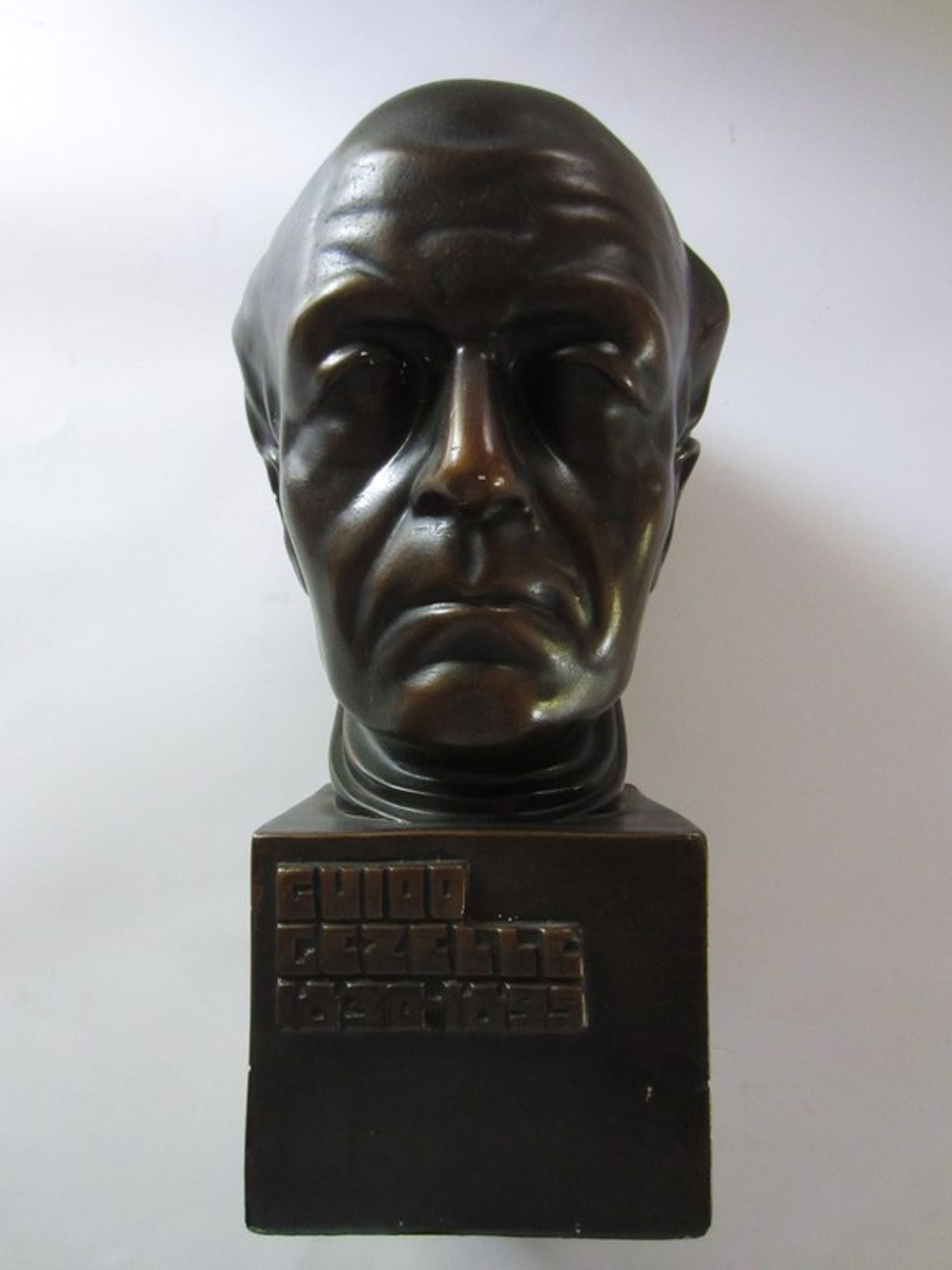 Aparte Art Deco buste van het hoofd van Guido Gezelle.