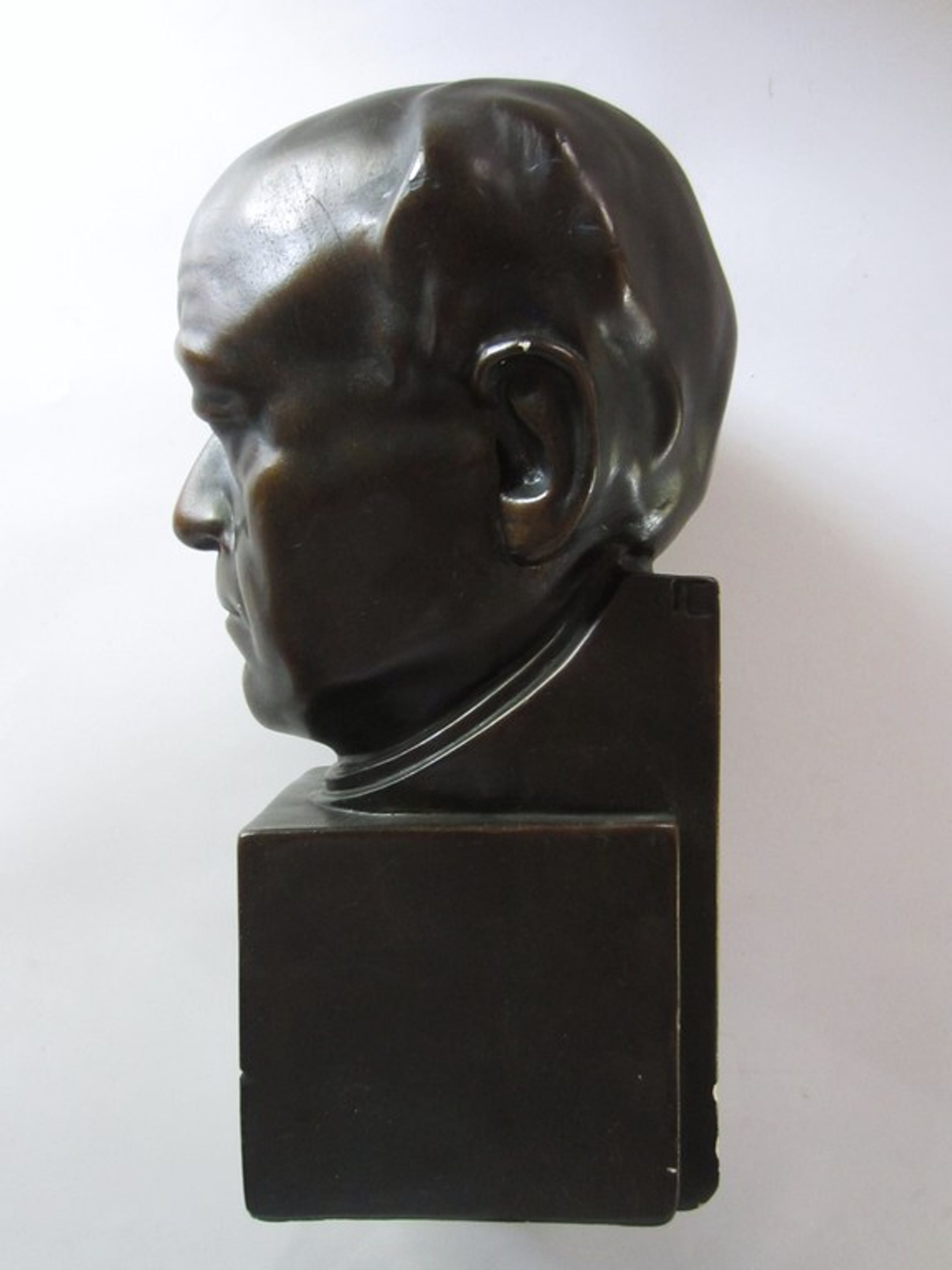 De buste is vervaardigd van gips en vervolgens gepatineerd.