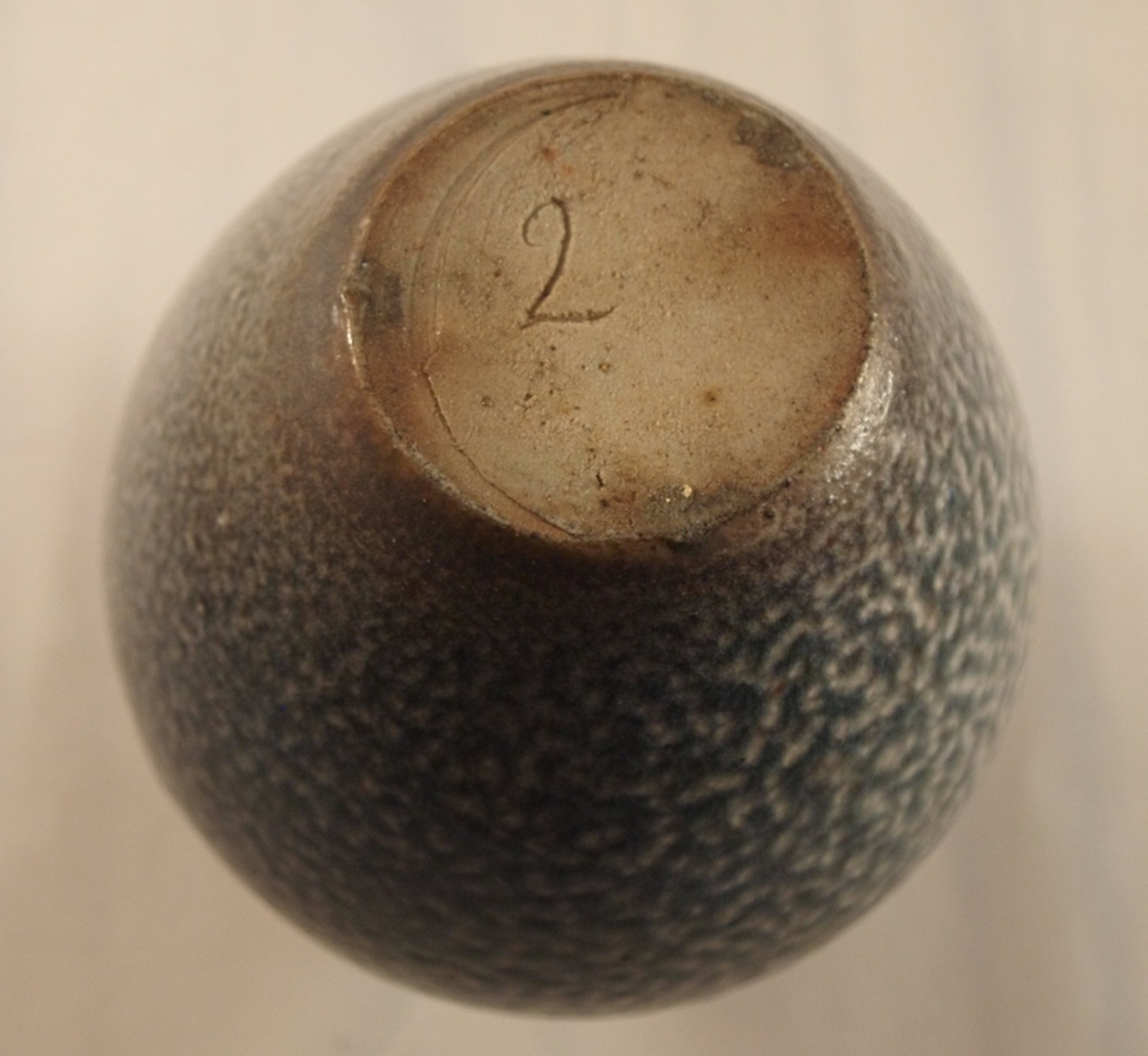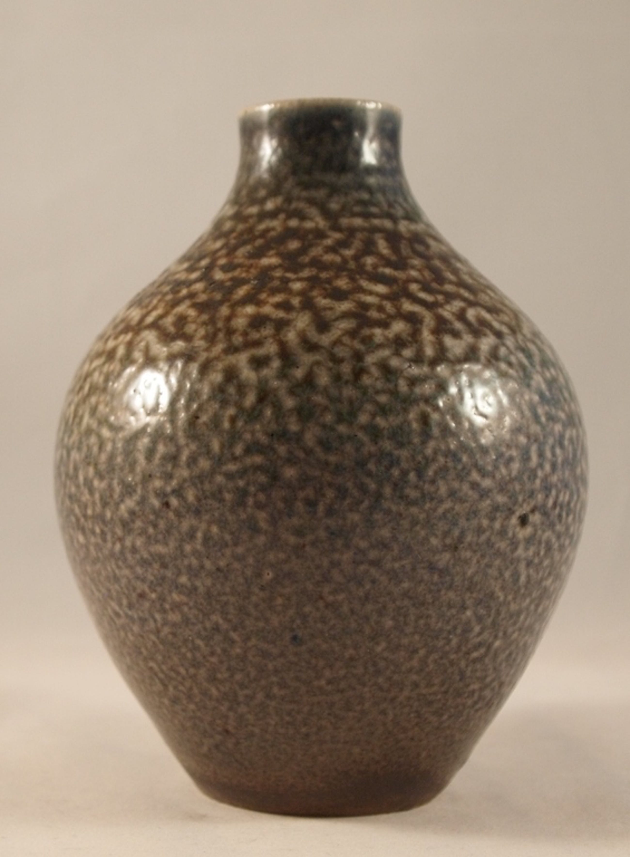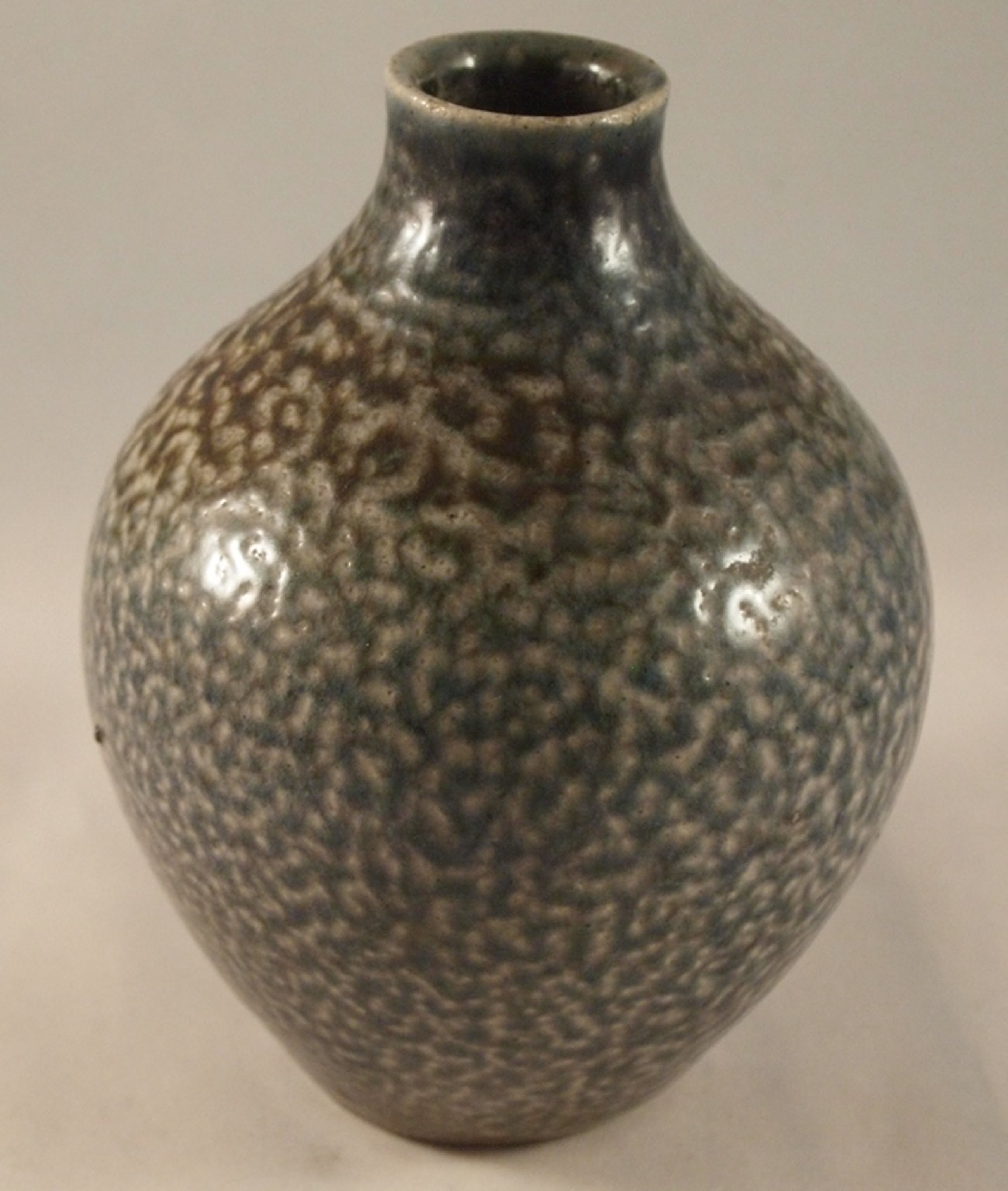 Art deco gres aardewerken vaasje, van Franse of Belgische maak. Mooi glazuur en vorm, niet gemerkt alleen genummerd aan de achterzijde.