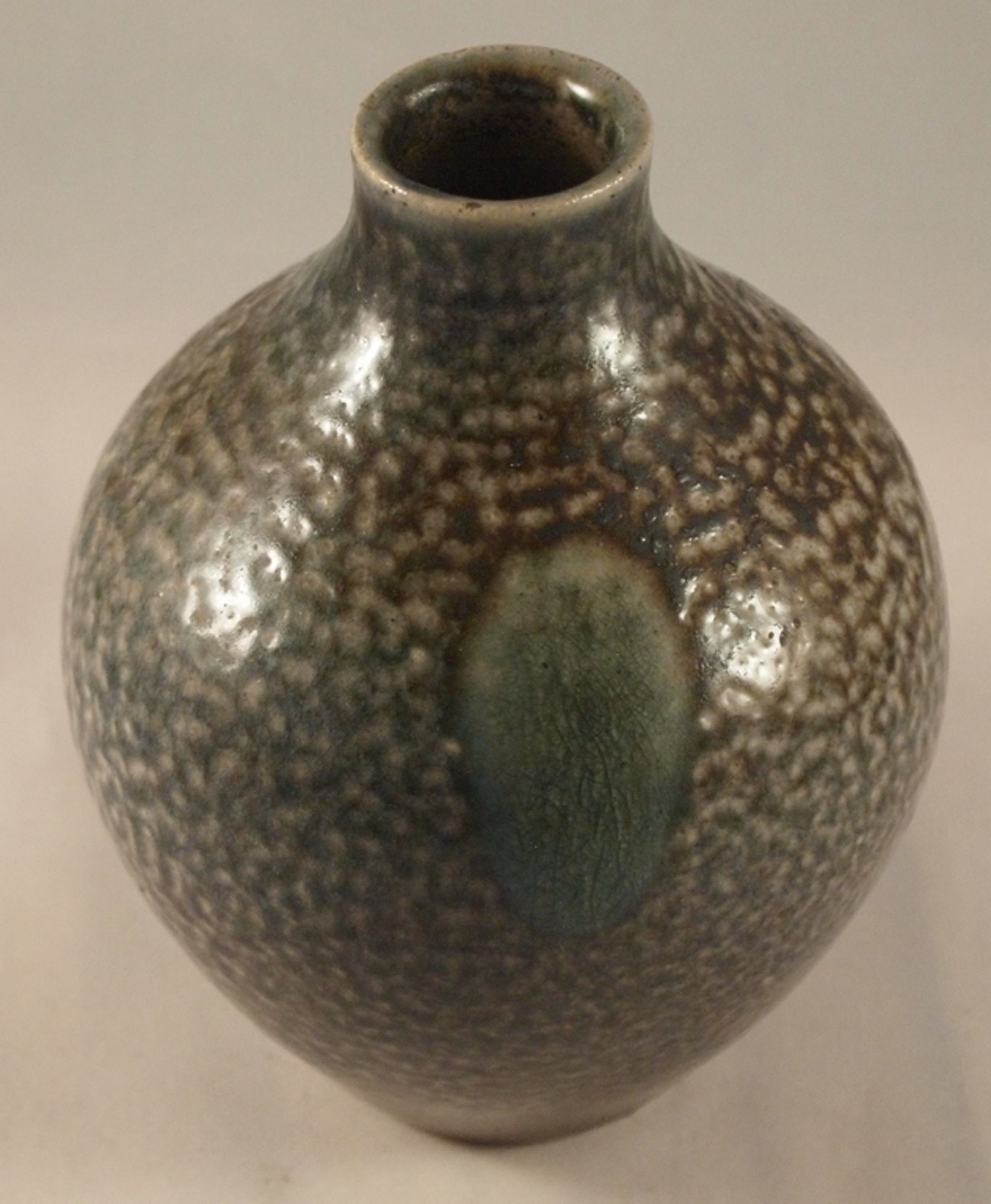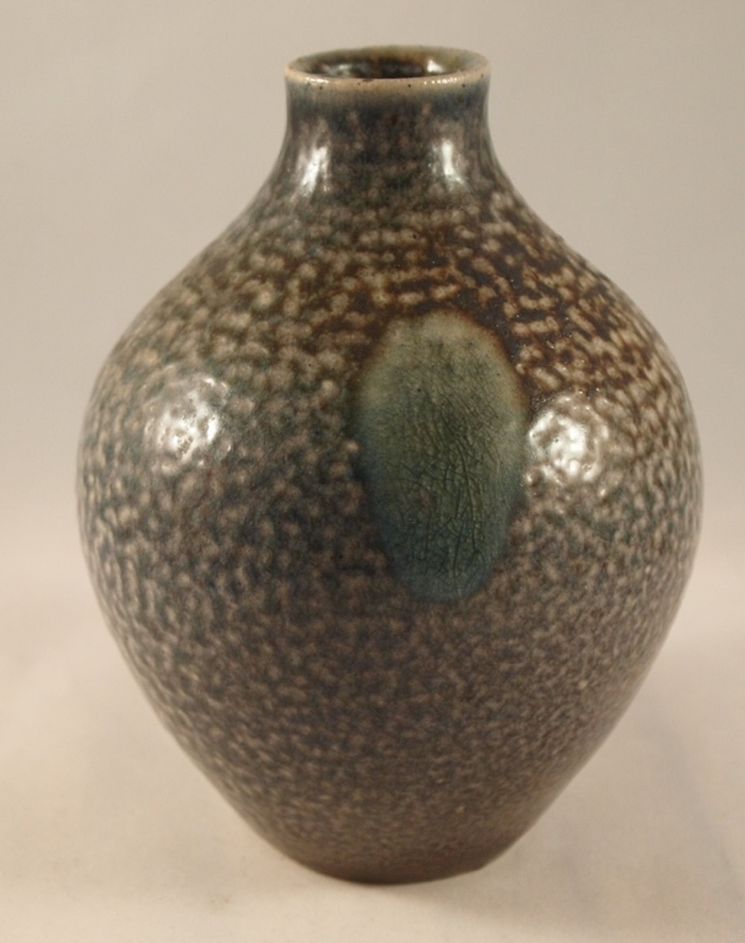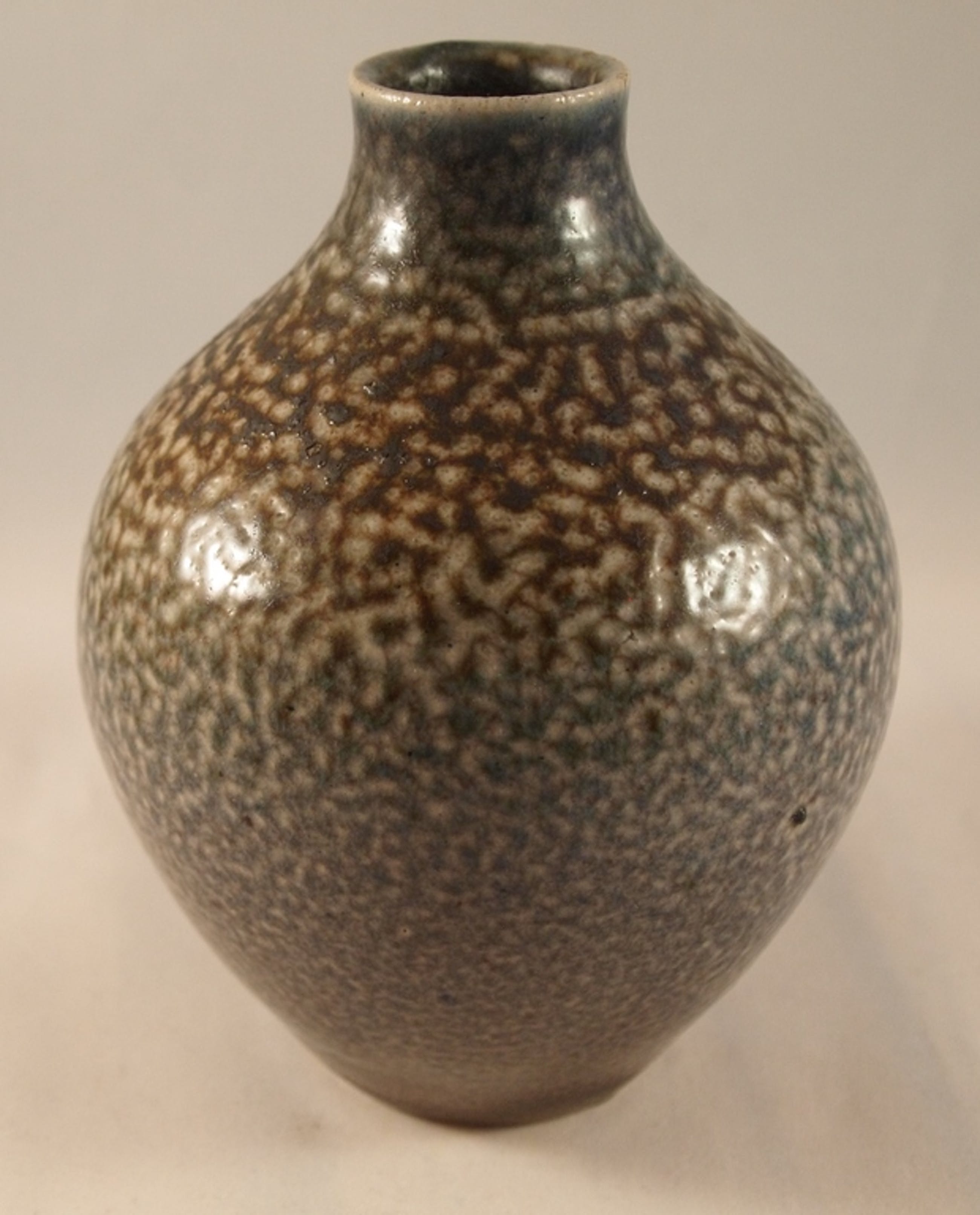 Art deco gres aardewerken vaasje, van Franse of Belgische maak. Mooi glazuur en vorm, niet gemerkt alleen genummerd aan de achterzijde.