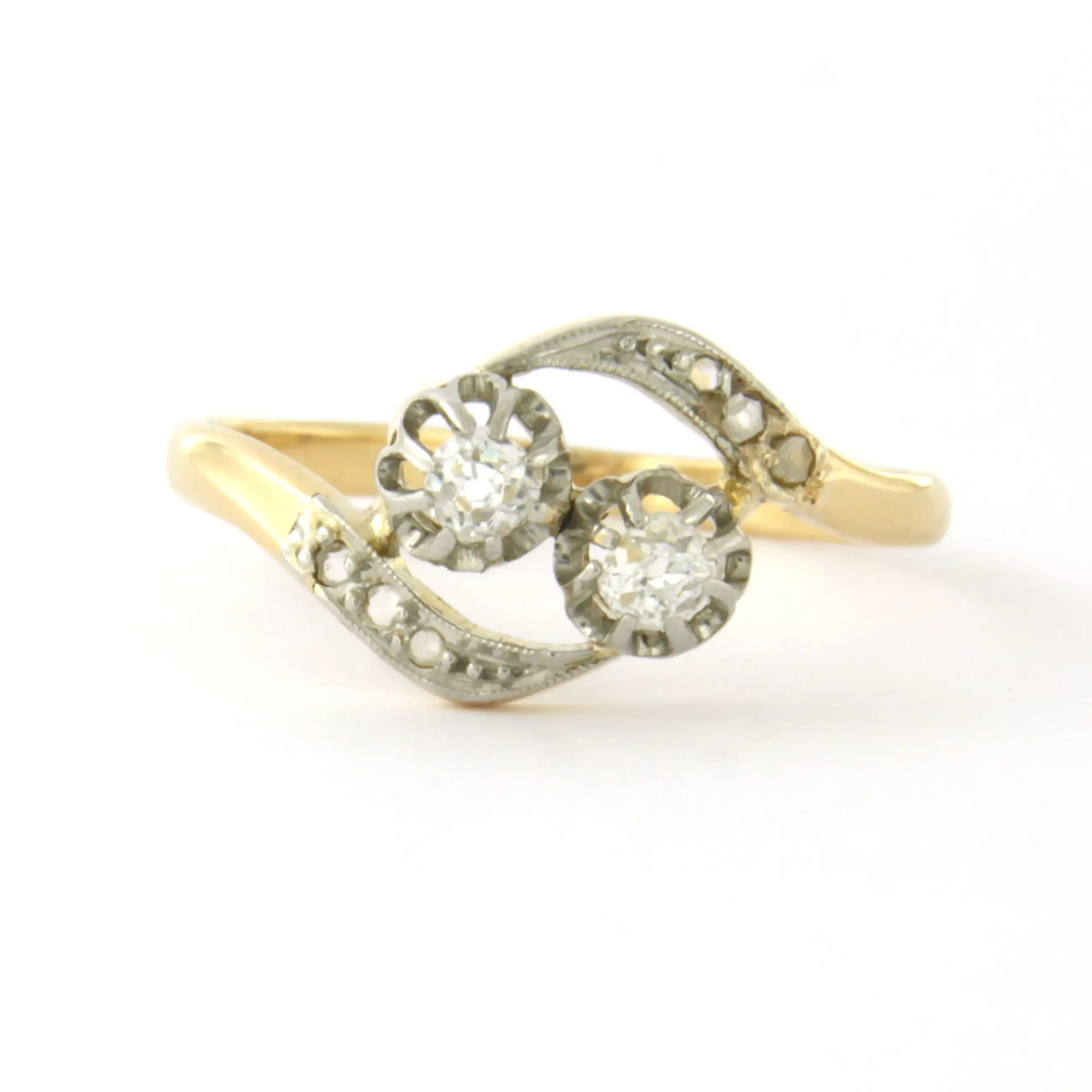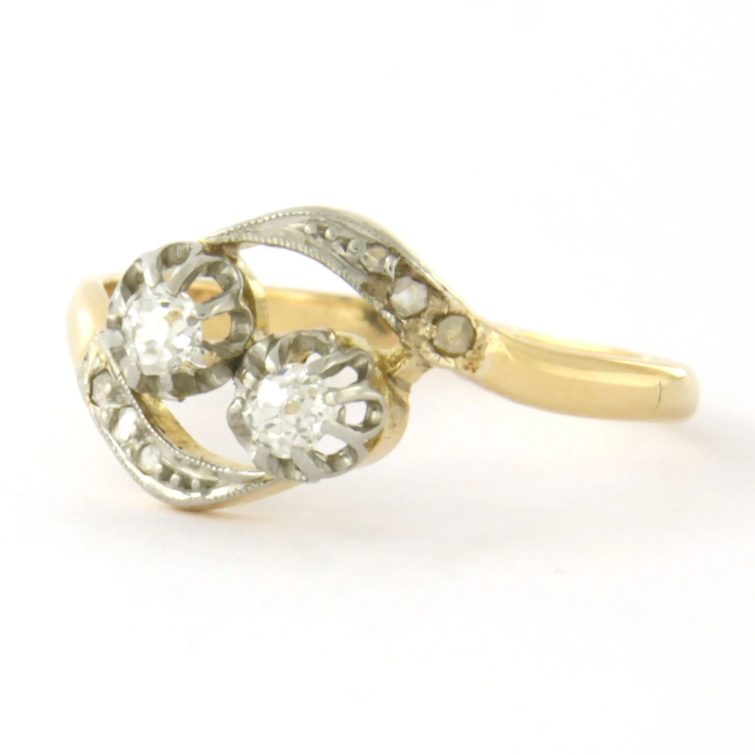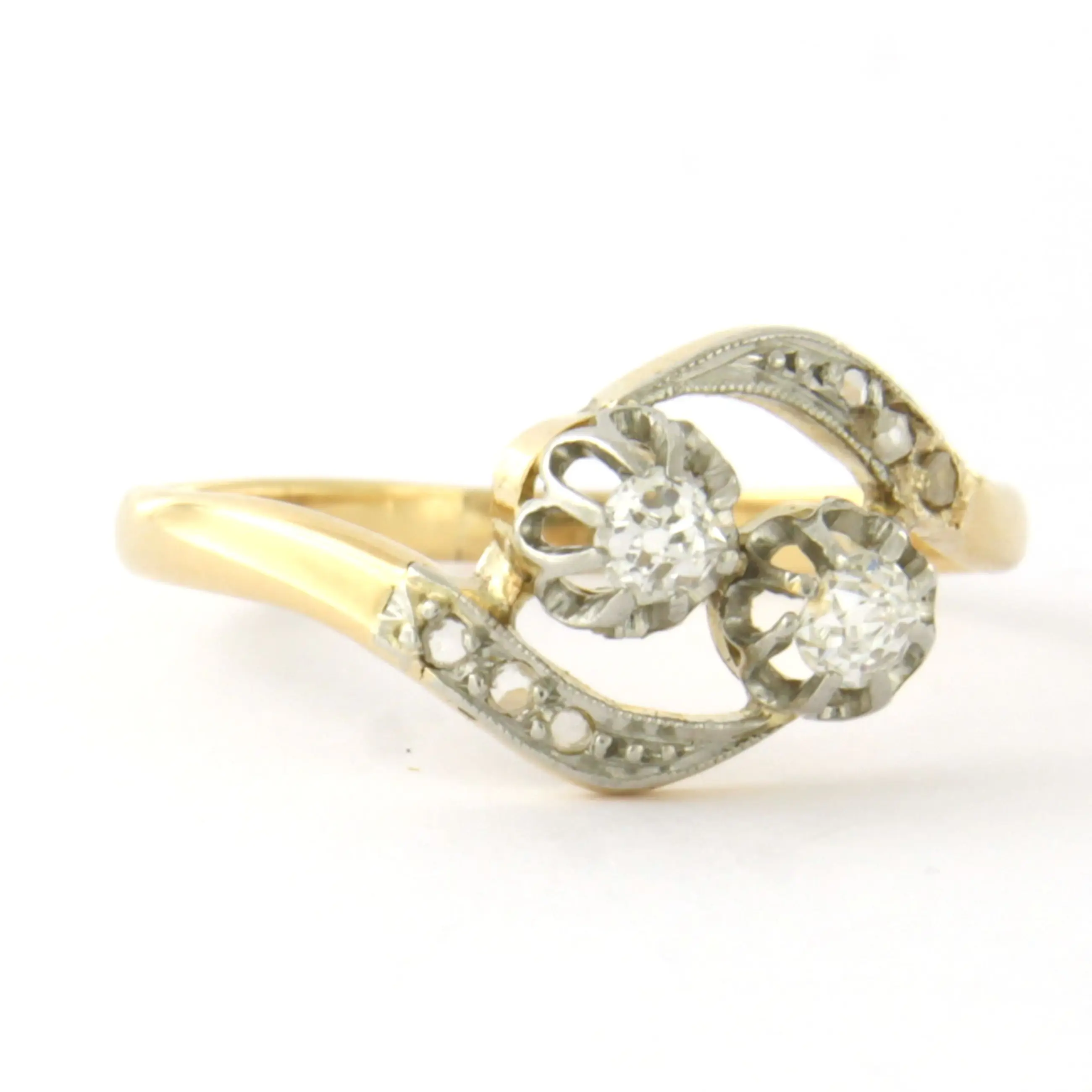 ART NOUVEAU 18k goud met platina ring met Bolsjewiek en roos diamant tot. 0.25ct
