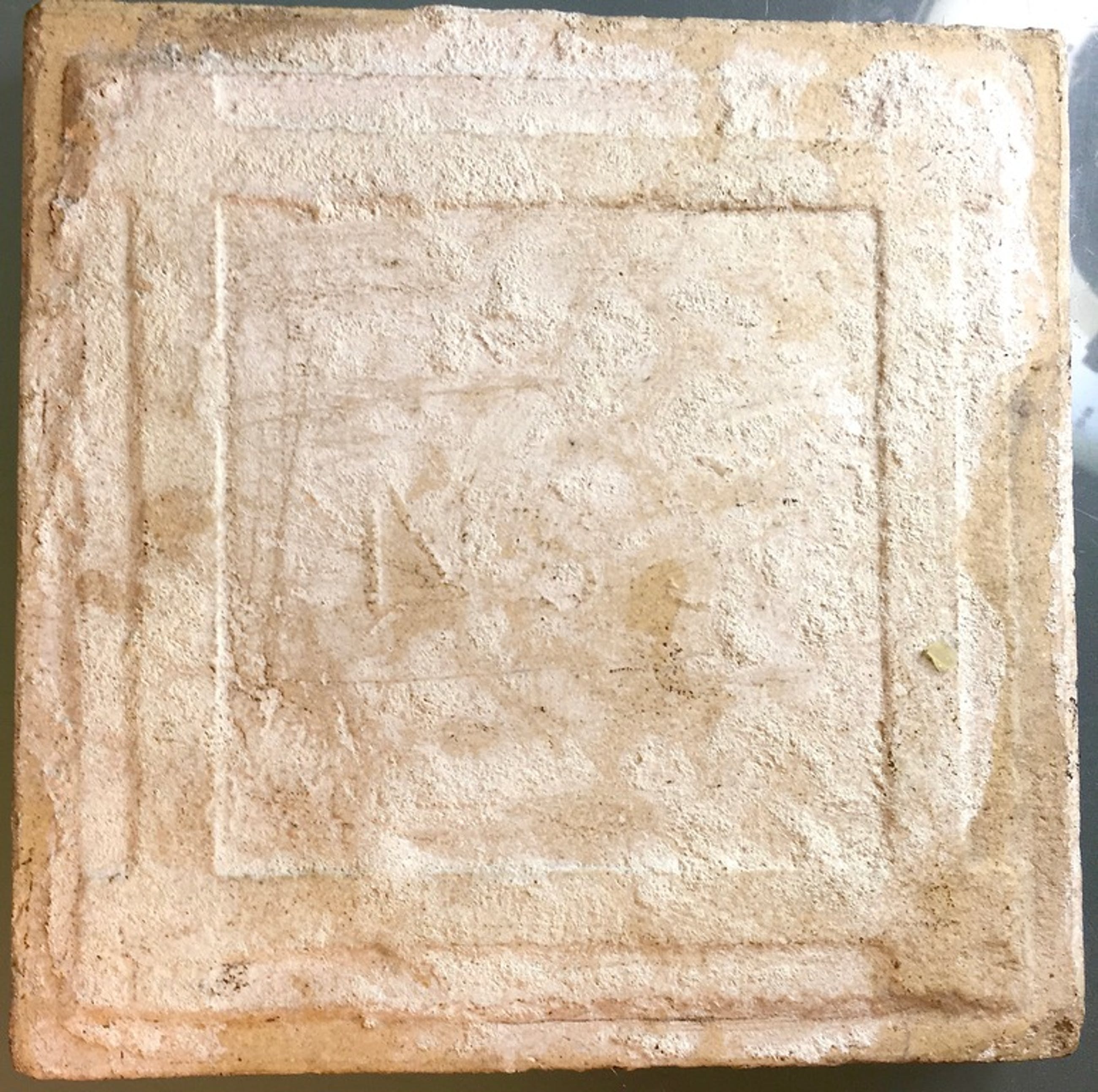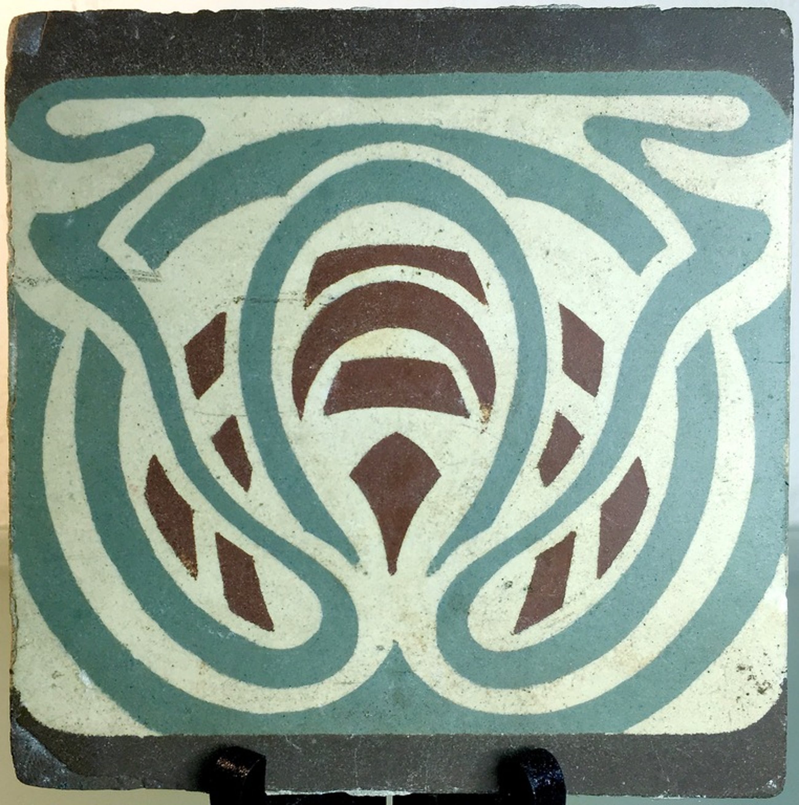 Originele Art Nouveau vloer tegel met stilistisch floraal zweepslag motief uit ca. 1915.
