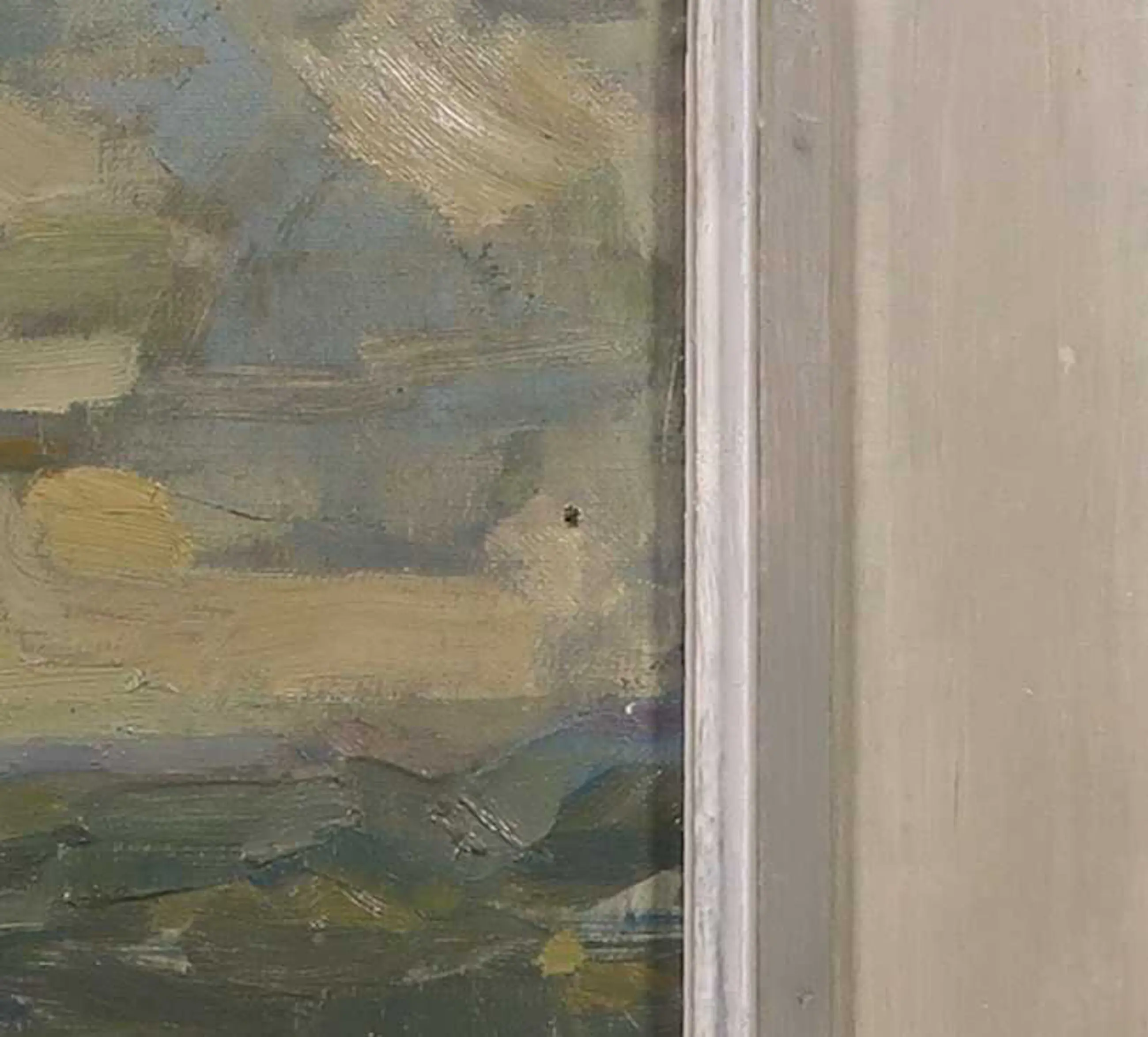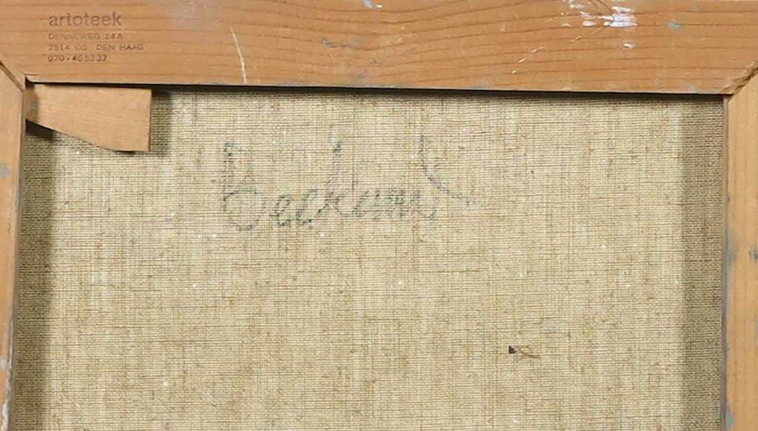 Er zitten twee gaatjes in het doek. Het werk heeft lichte slijtage aan de randen. | |||||||||||