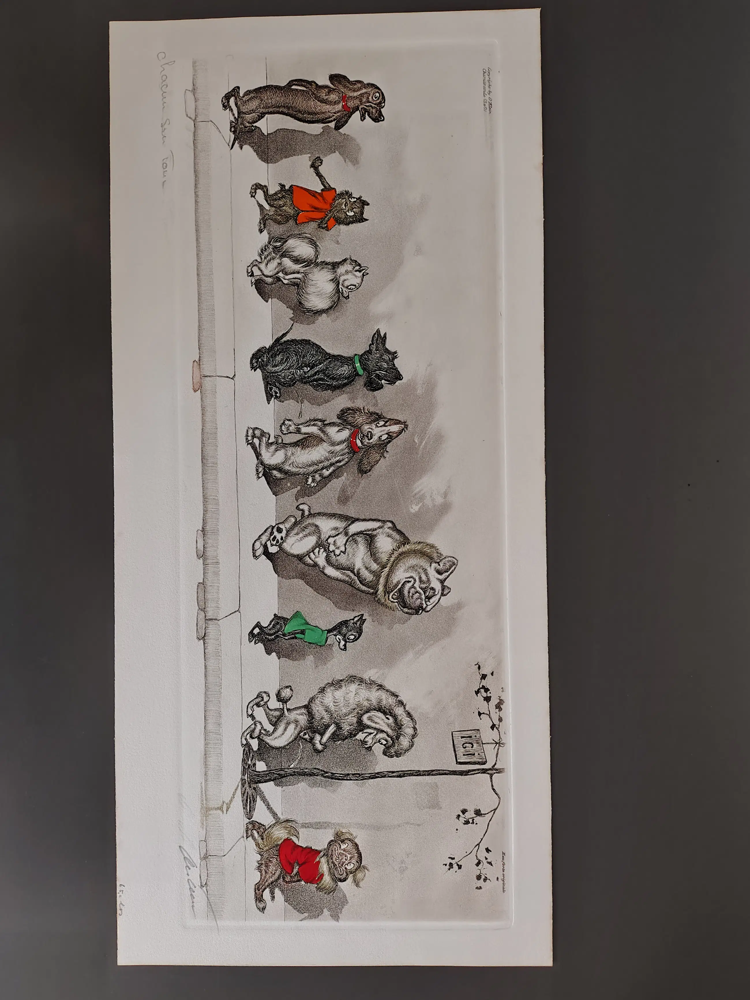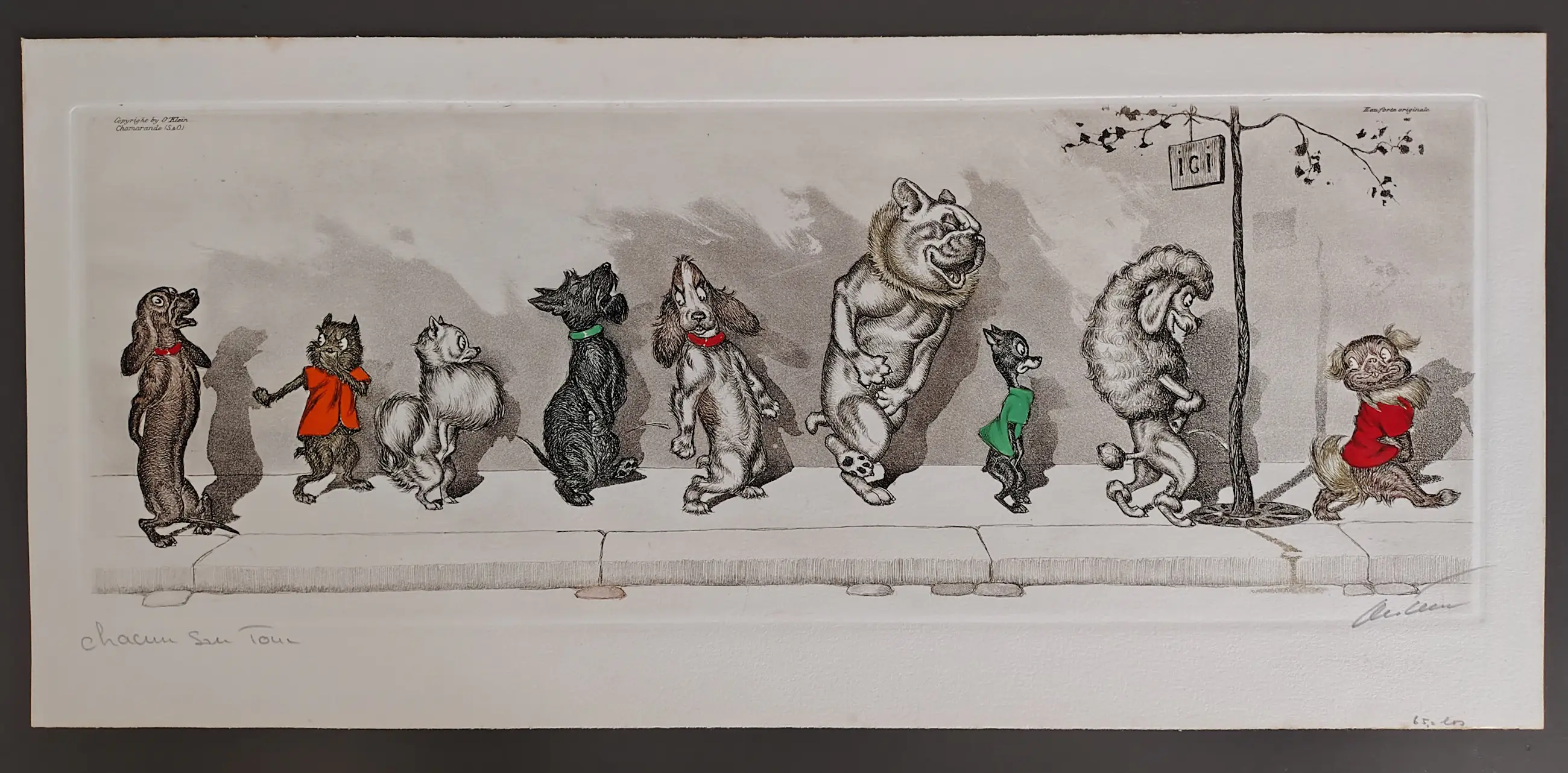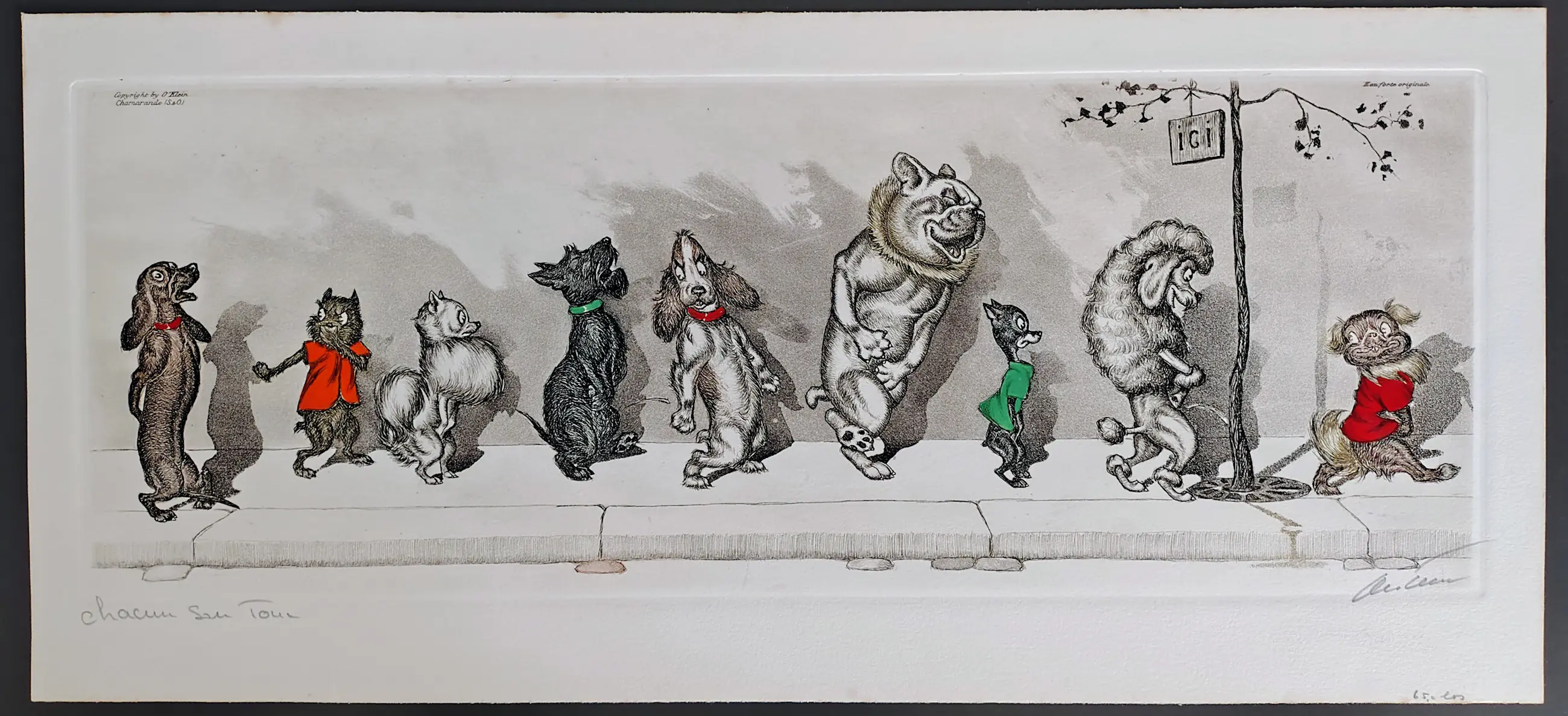 Met de hand ingekleurde litho van Boris O'klein 1898-1985.
