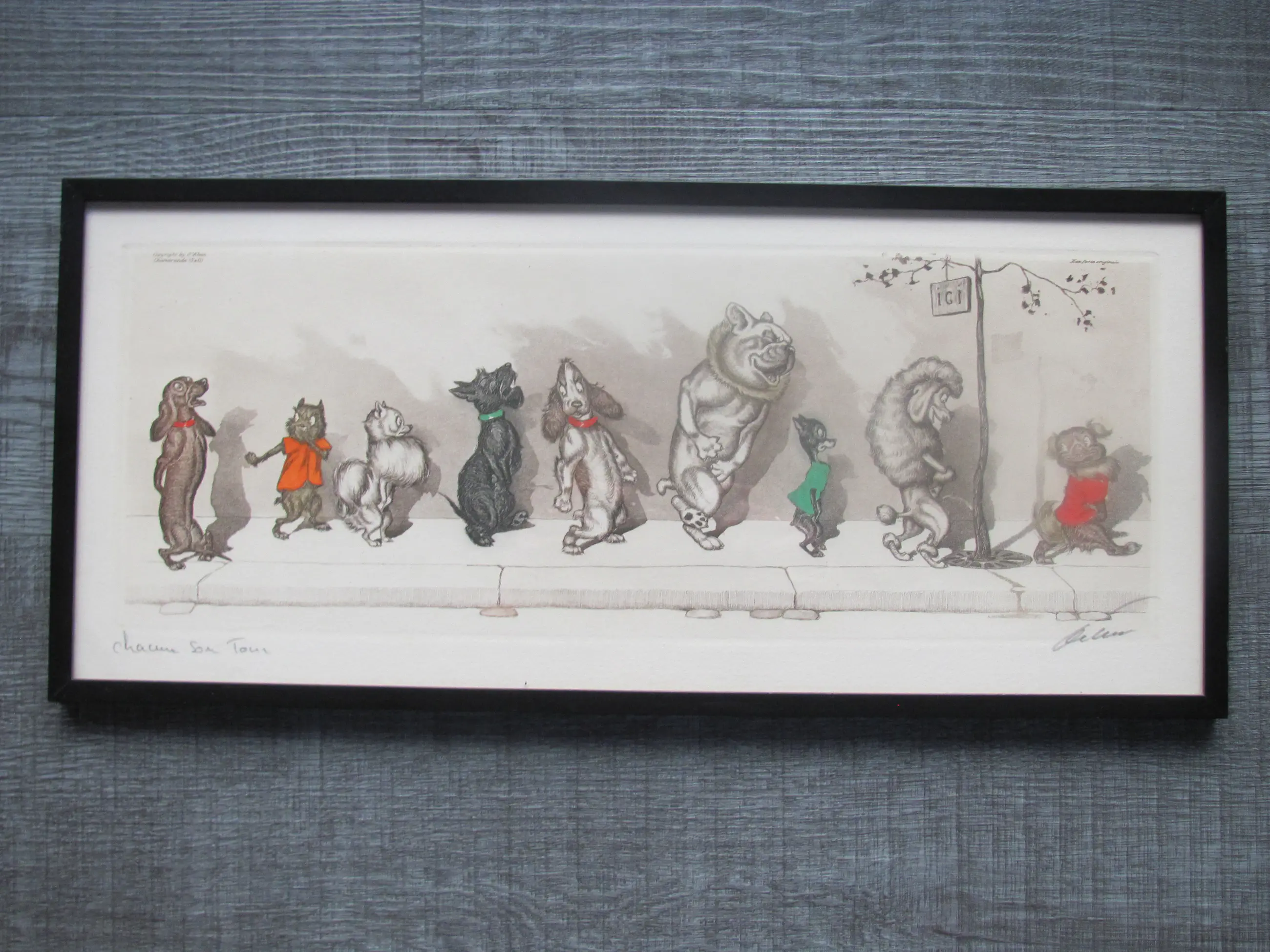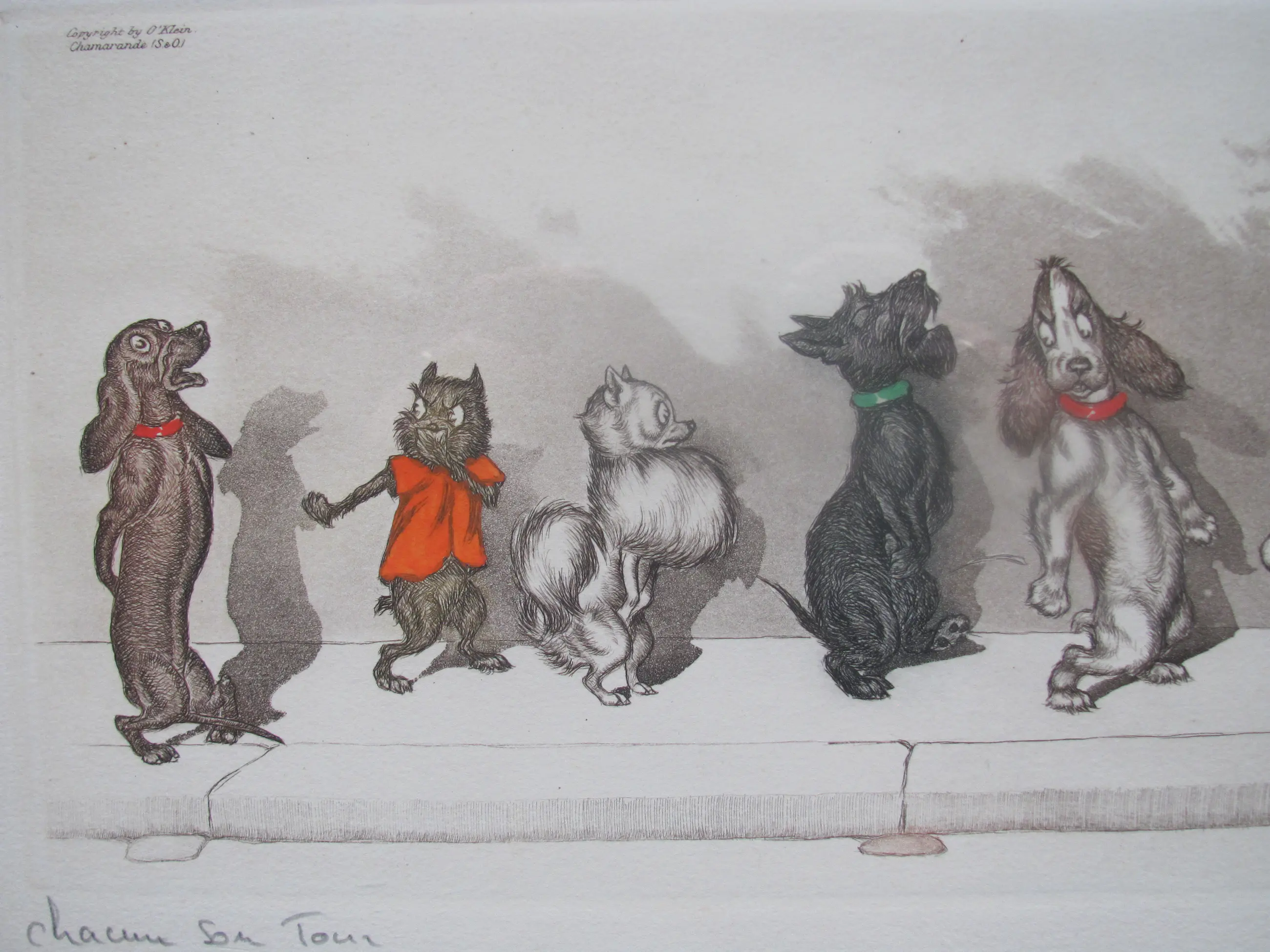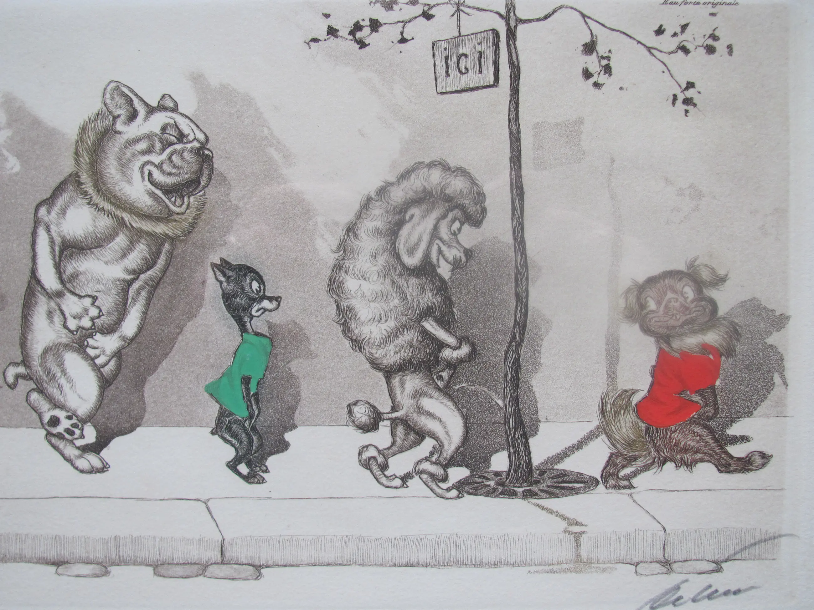 Grappige ets met kleur uit de serie Dirty Dogs of Paris