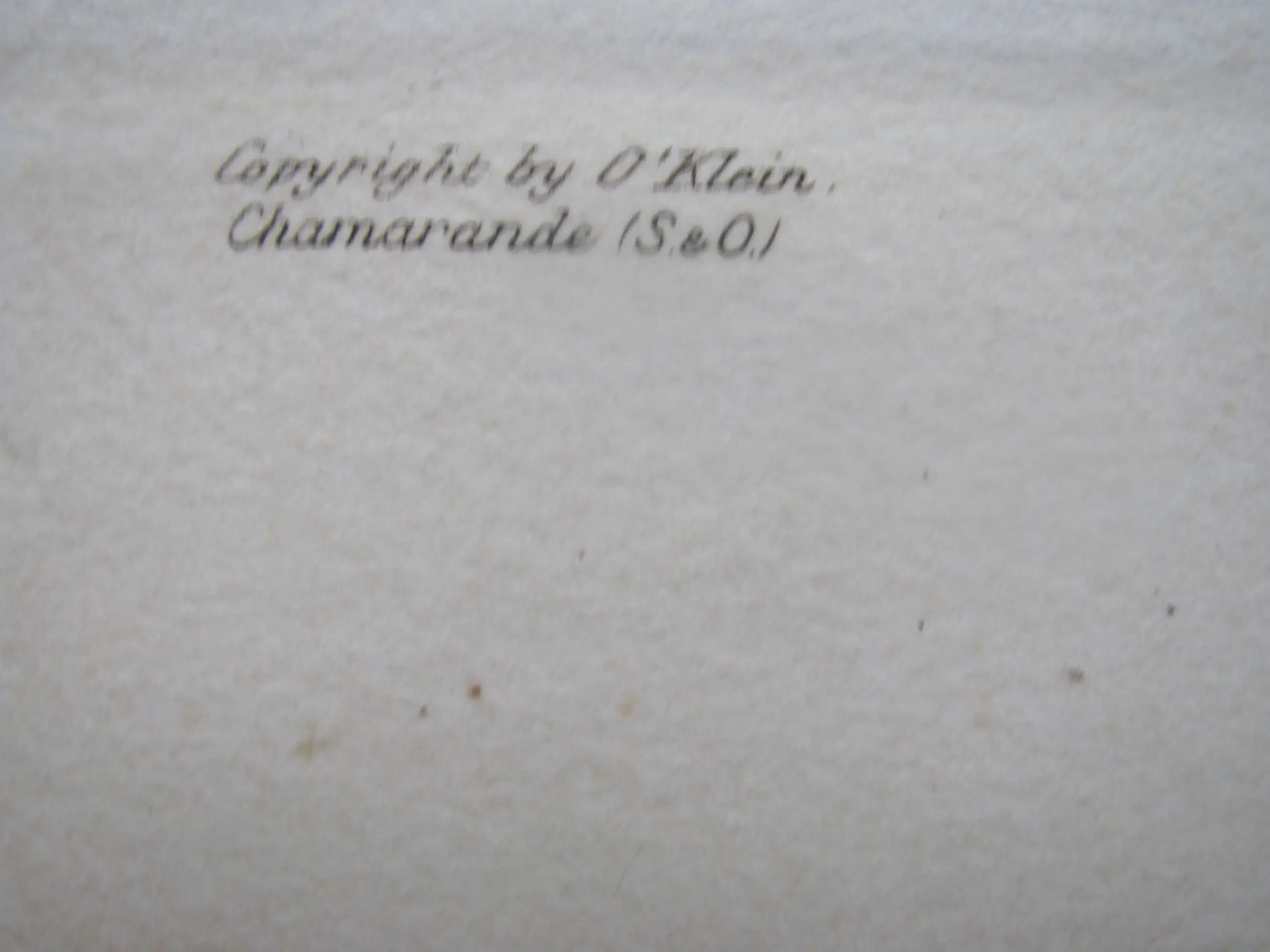 Linksboven gemerkt: "Copyright door O`Klein Chamarande (S & O)".