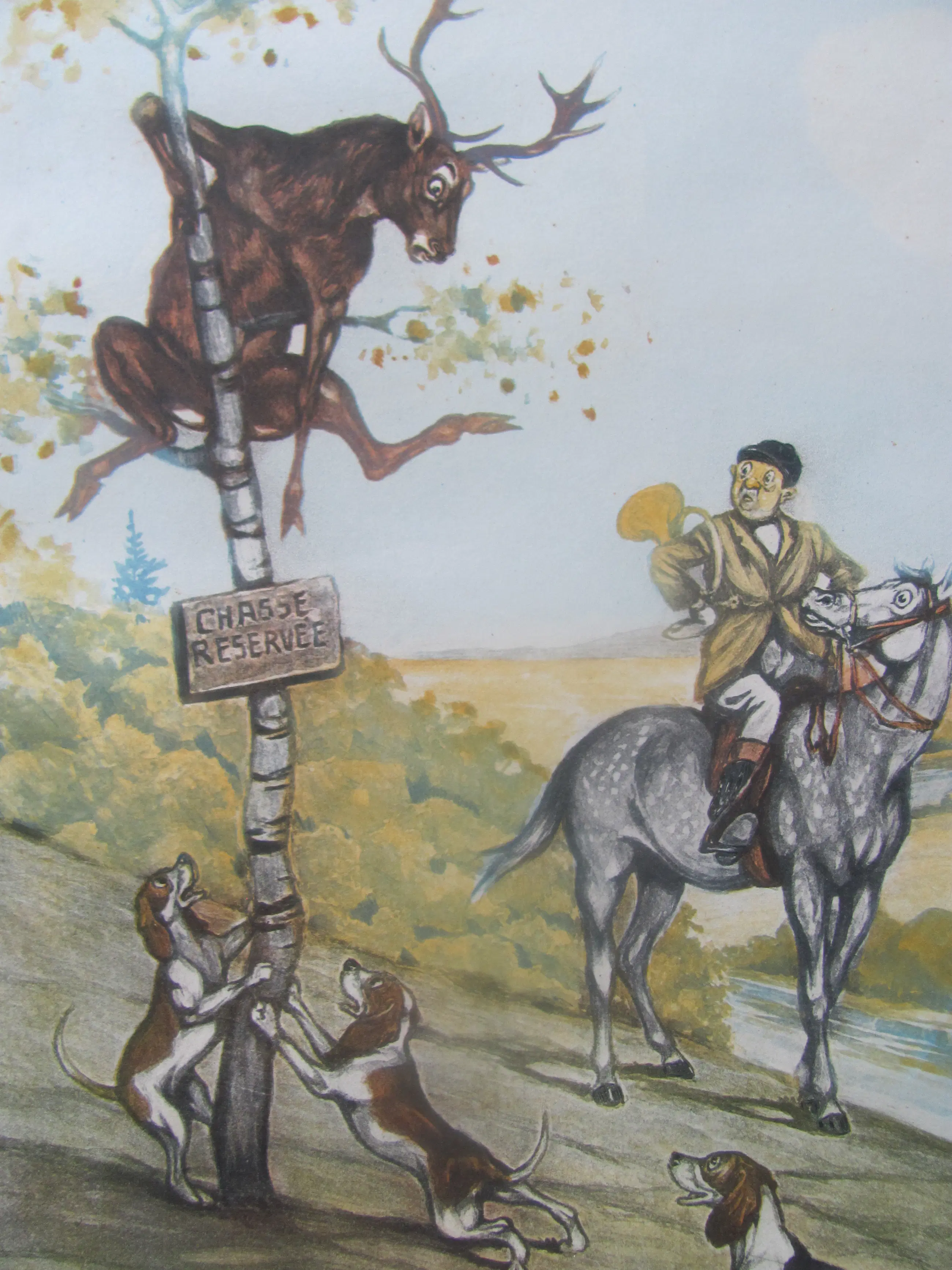 Grappige kleurenets van Boris O'Klein van een jager en zijn "aanstaande prooi".