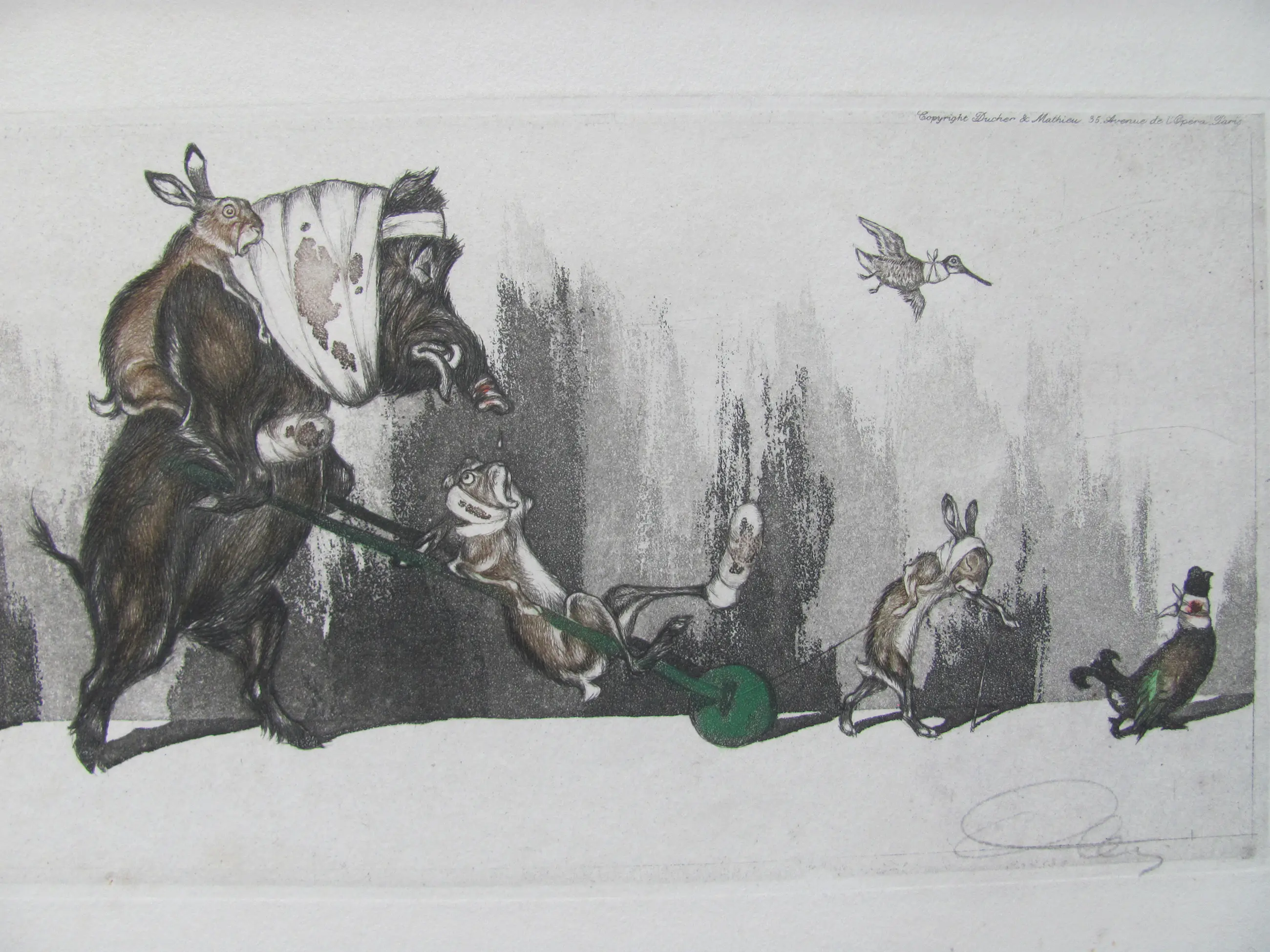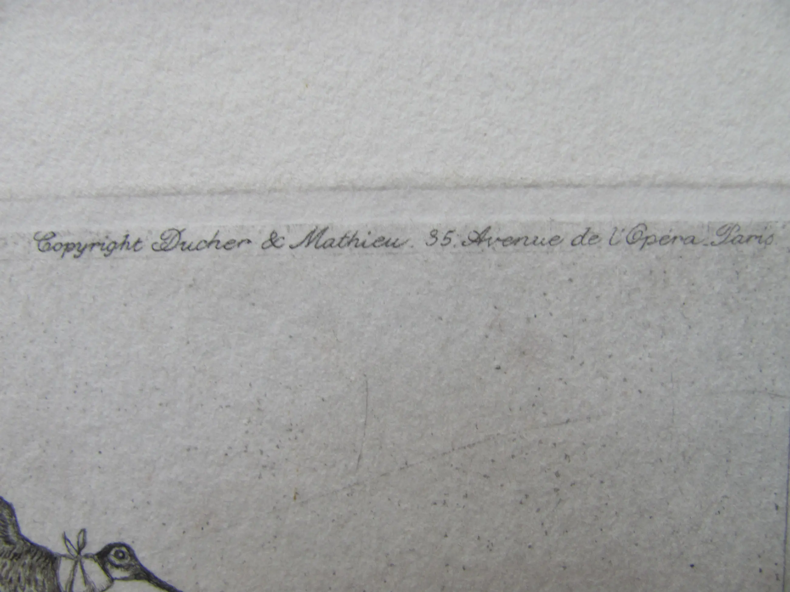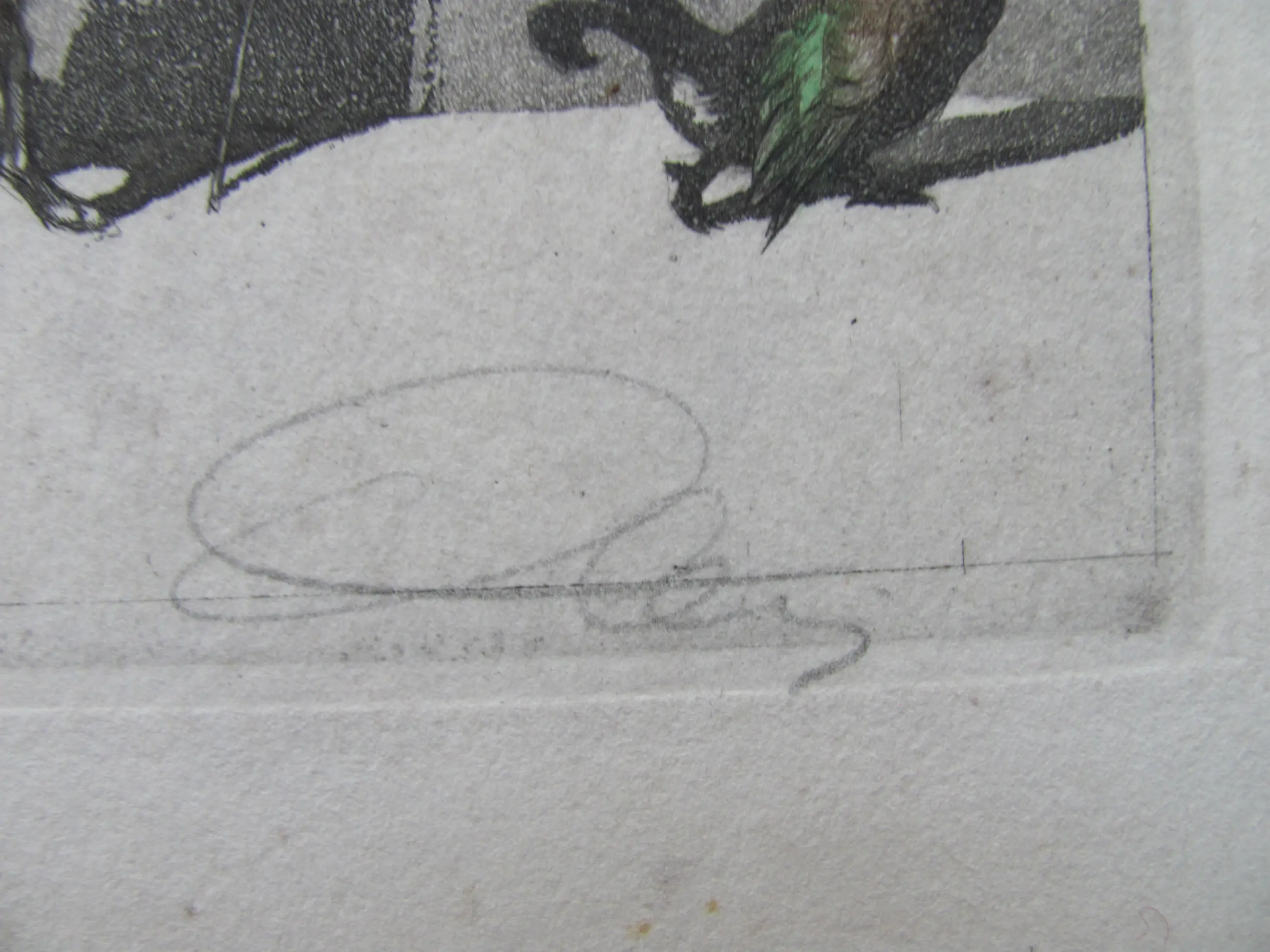 Ets van Arthur Boris O'Klein. Linksonder in het Frans getiteld, maar voor mij helaas niet te lezen. Rechtsonder met potlood gesigneerd,