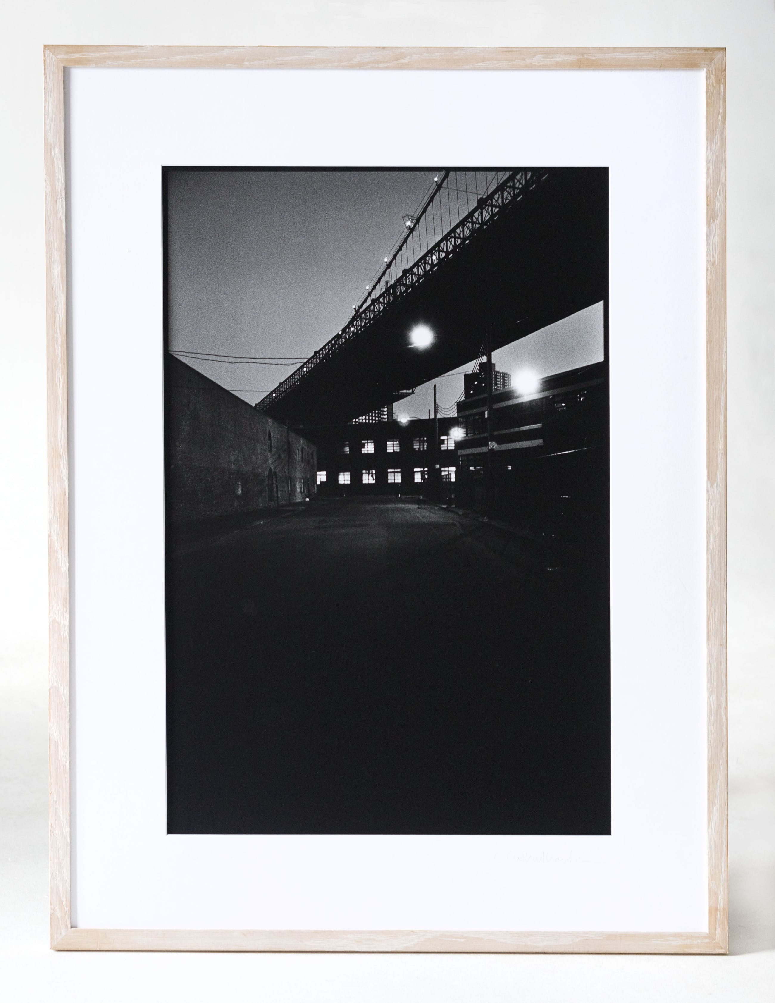 Zwartwit foto (analoge afdruk) in passe-partout compleet in eikenhouten Barth lijst.