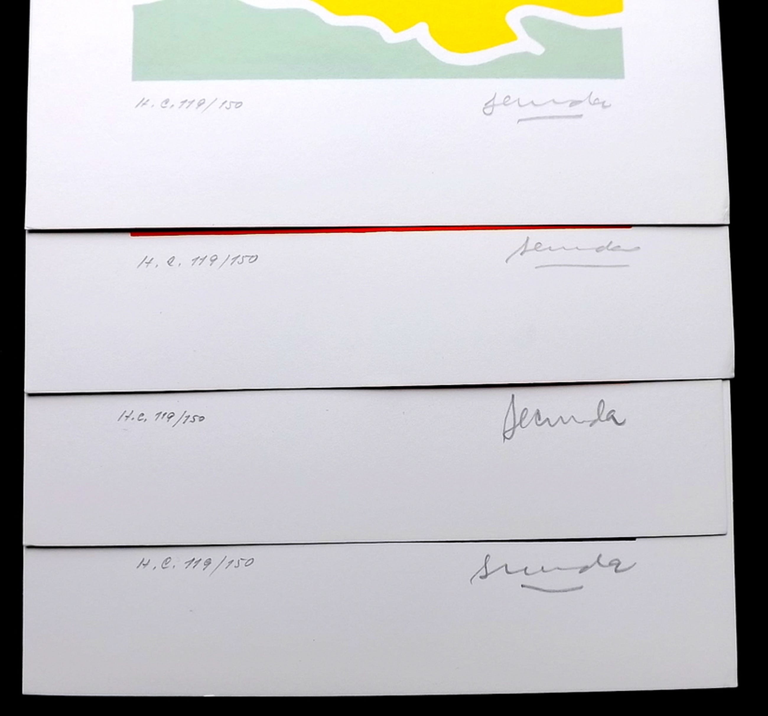 Van deze toonaangevende kunstenaar worden 4 in serie gesigneerde litho's aangeboden.