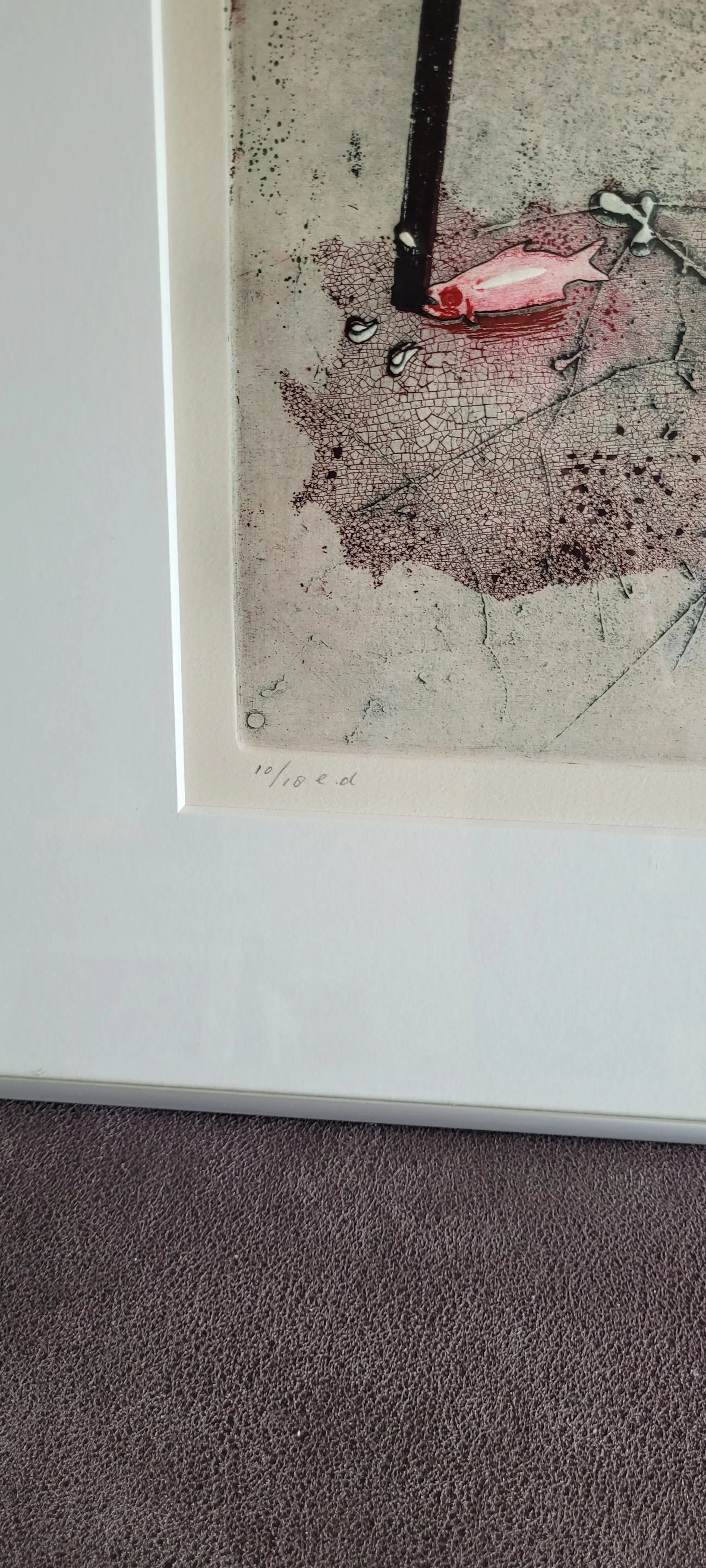 Het werk,de lijst en het passepartout is in zeer goede staat, maar het glas is stuk.