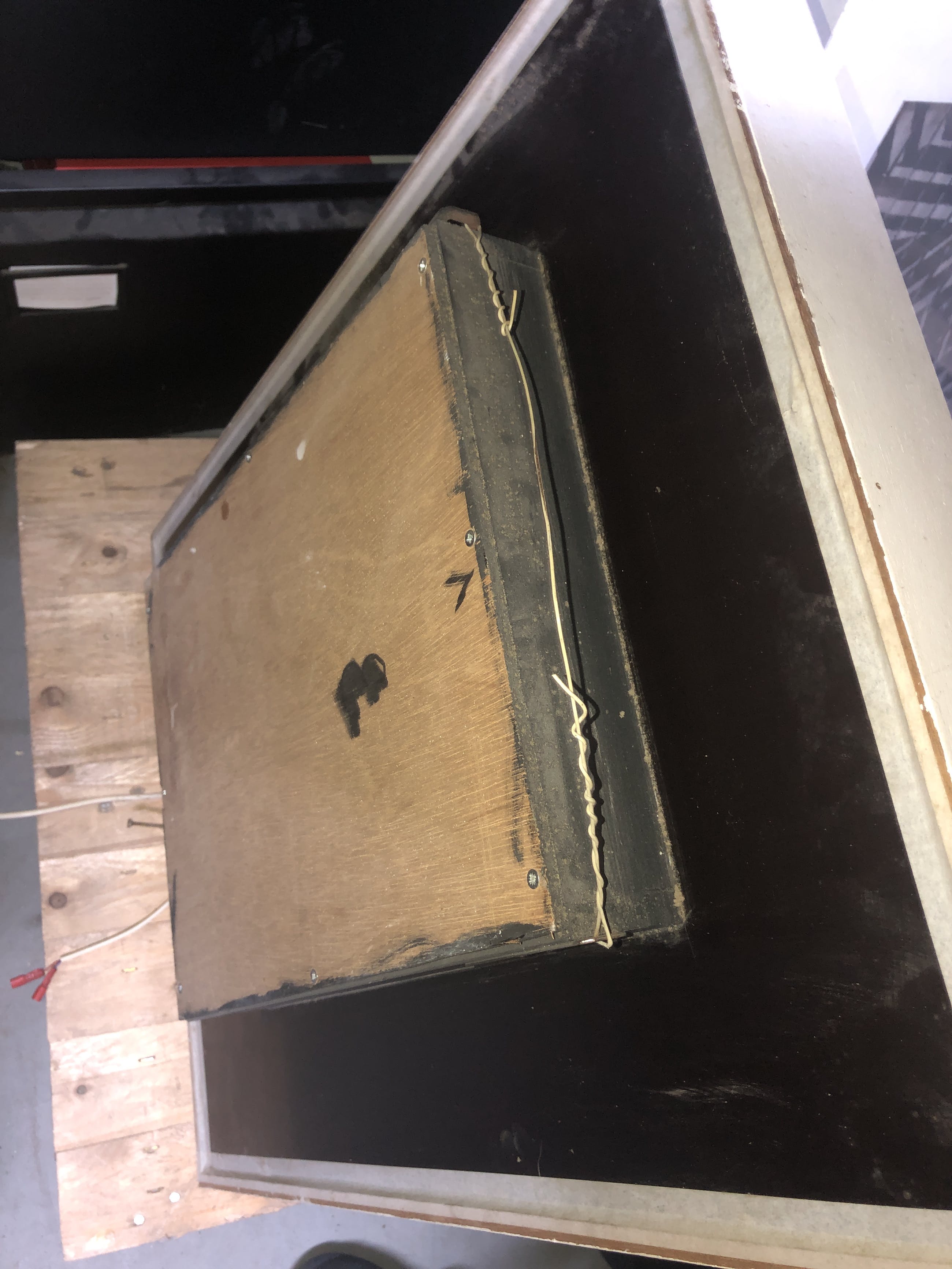 Goede staat, wat kleine vlekjes op hout. Werkt nog heel goed