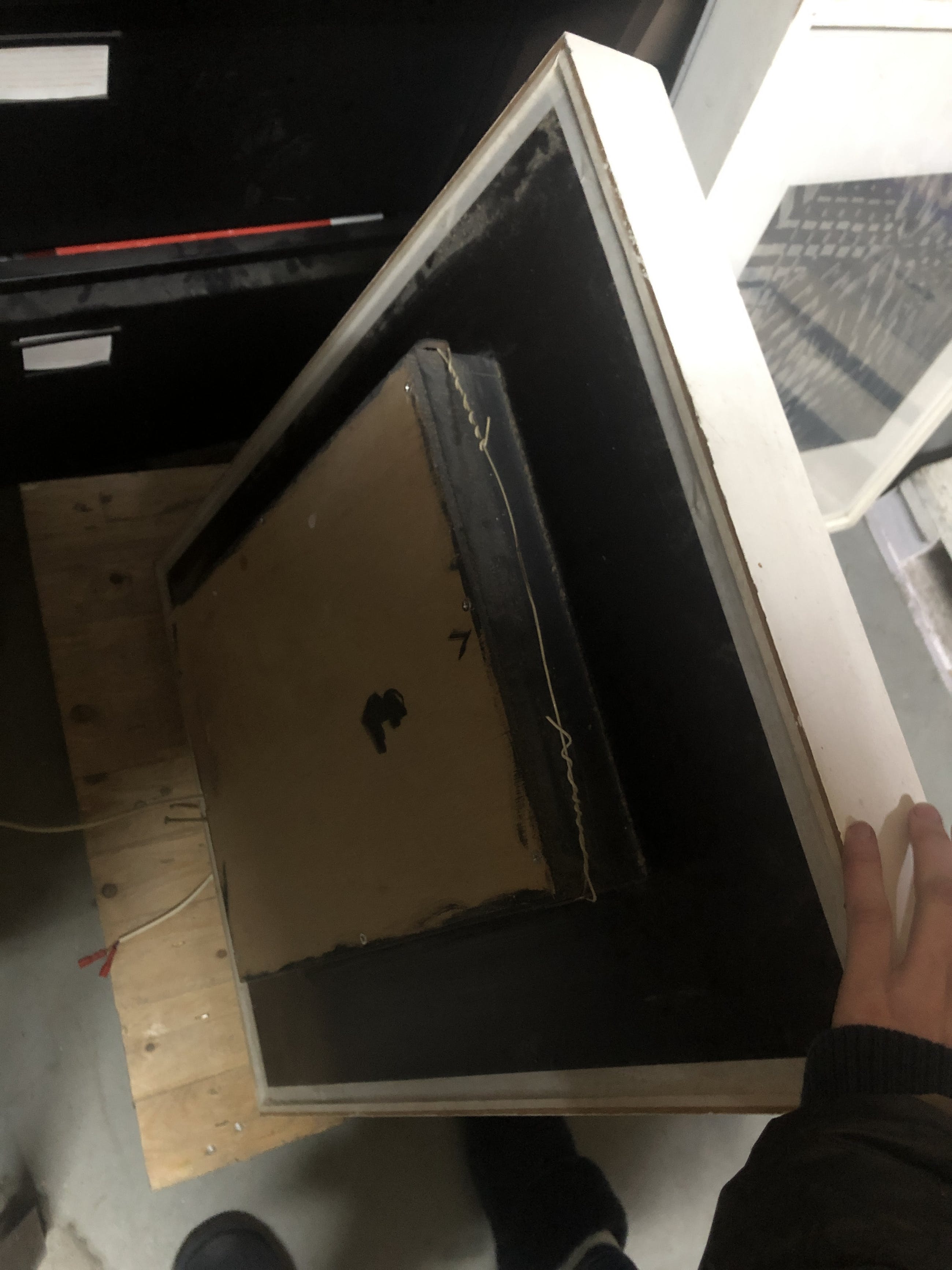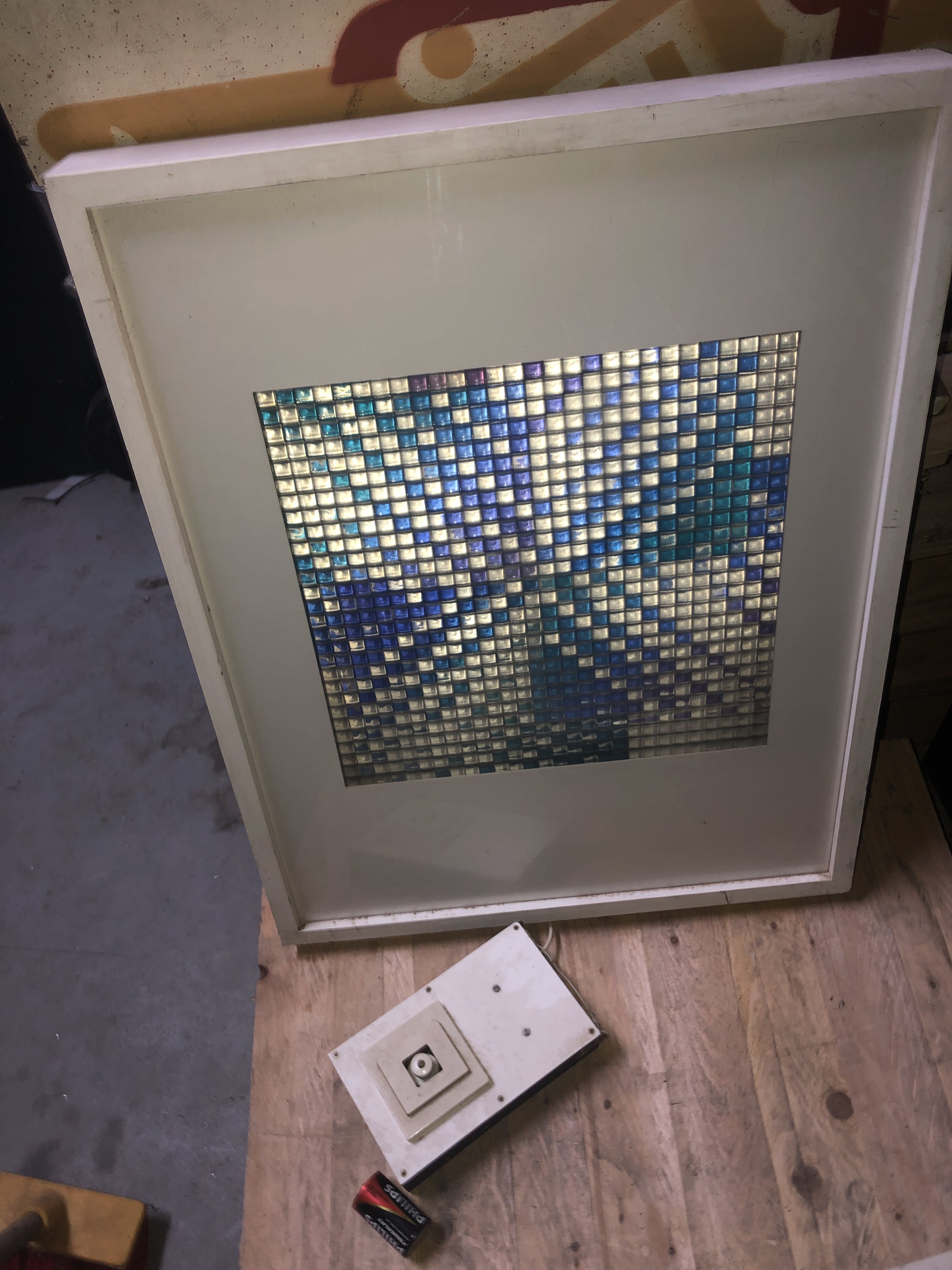 Kinetische kijkkast van Arthur Stibbe. Bewegend beeld door druk op de knop. Gemaakt rond 1995. Goede staat! Zie ook andere kast die te koop staat.