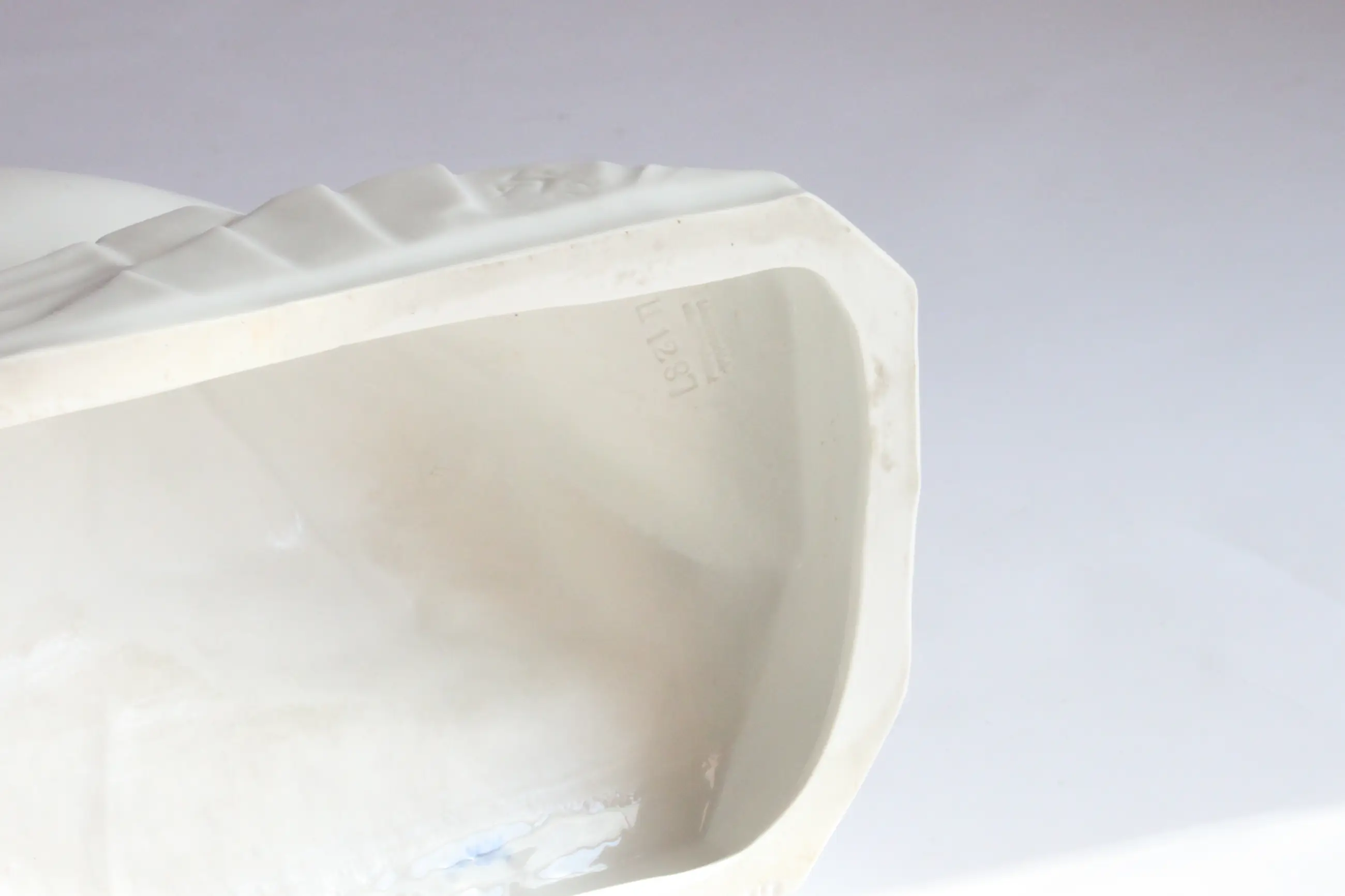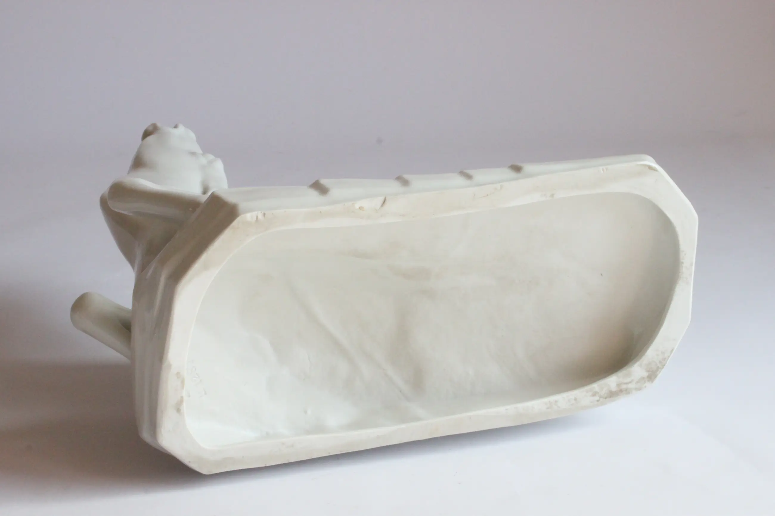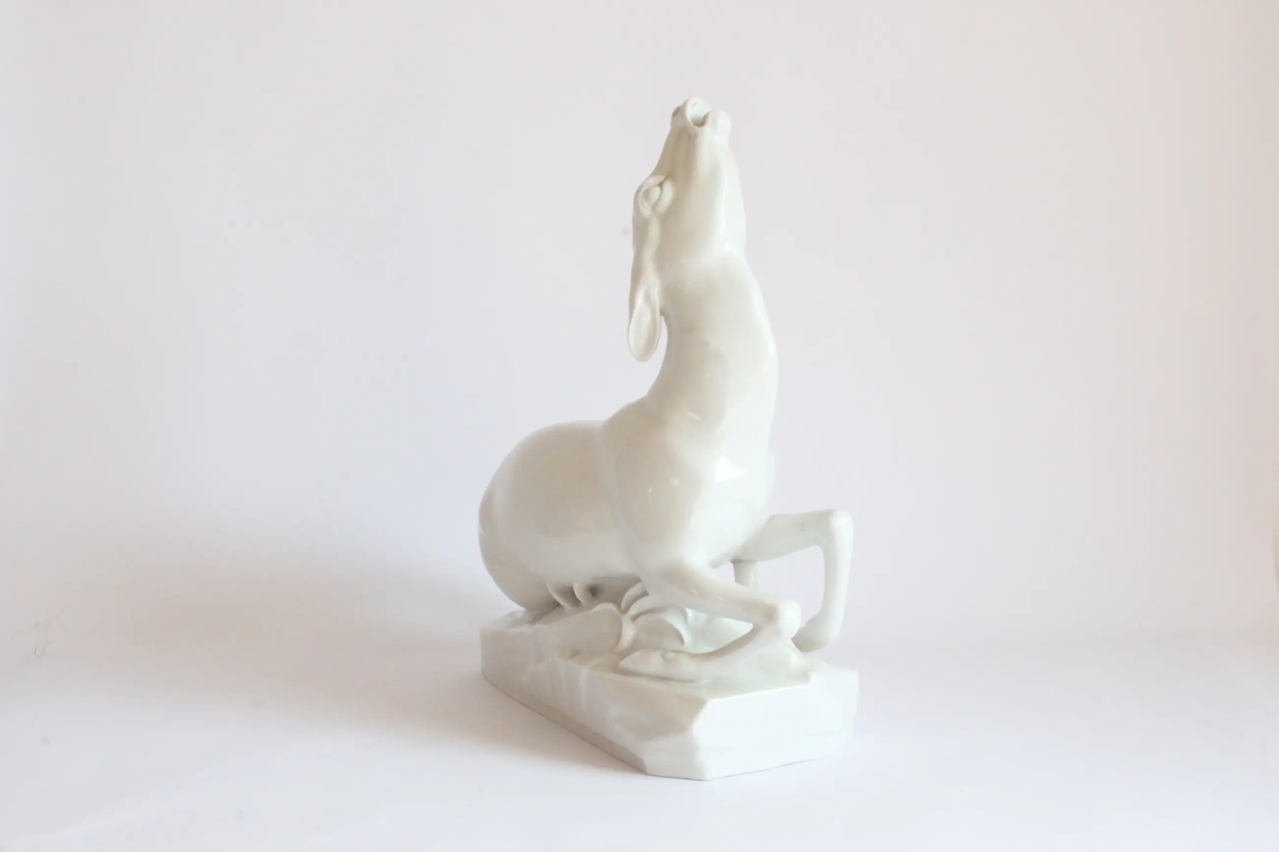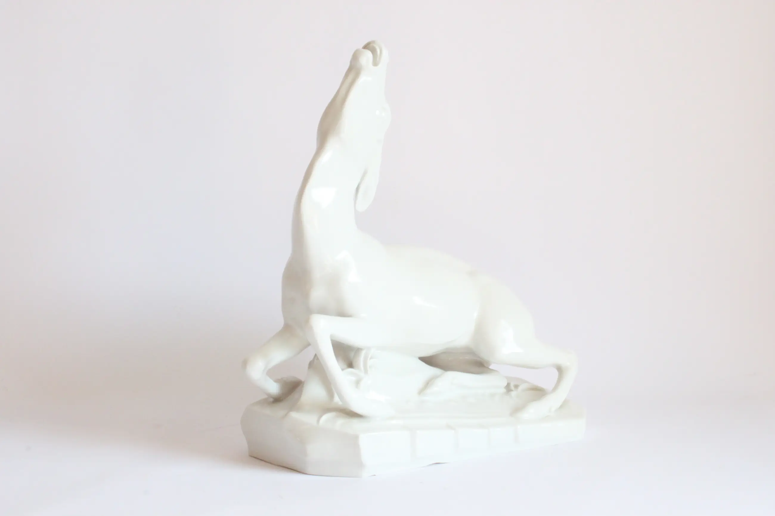 Het stervend hert, door Arthur Storch voor Schwarzburger Werkstätten für Porzellankunst. Duitsland 1922 Mod.nr. U 1287, gestempeld onderaan. A.S. op de zijkant