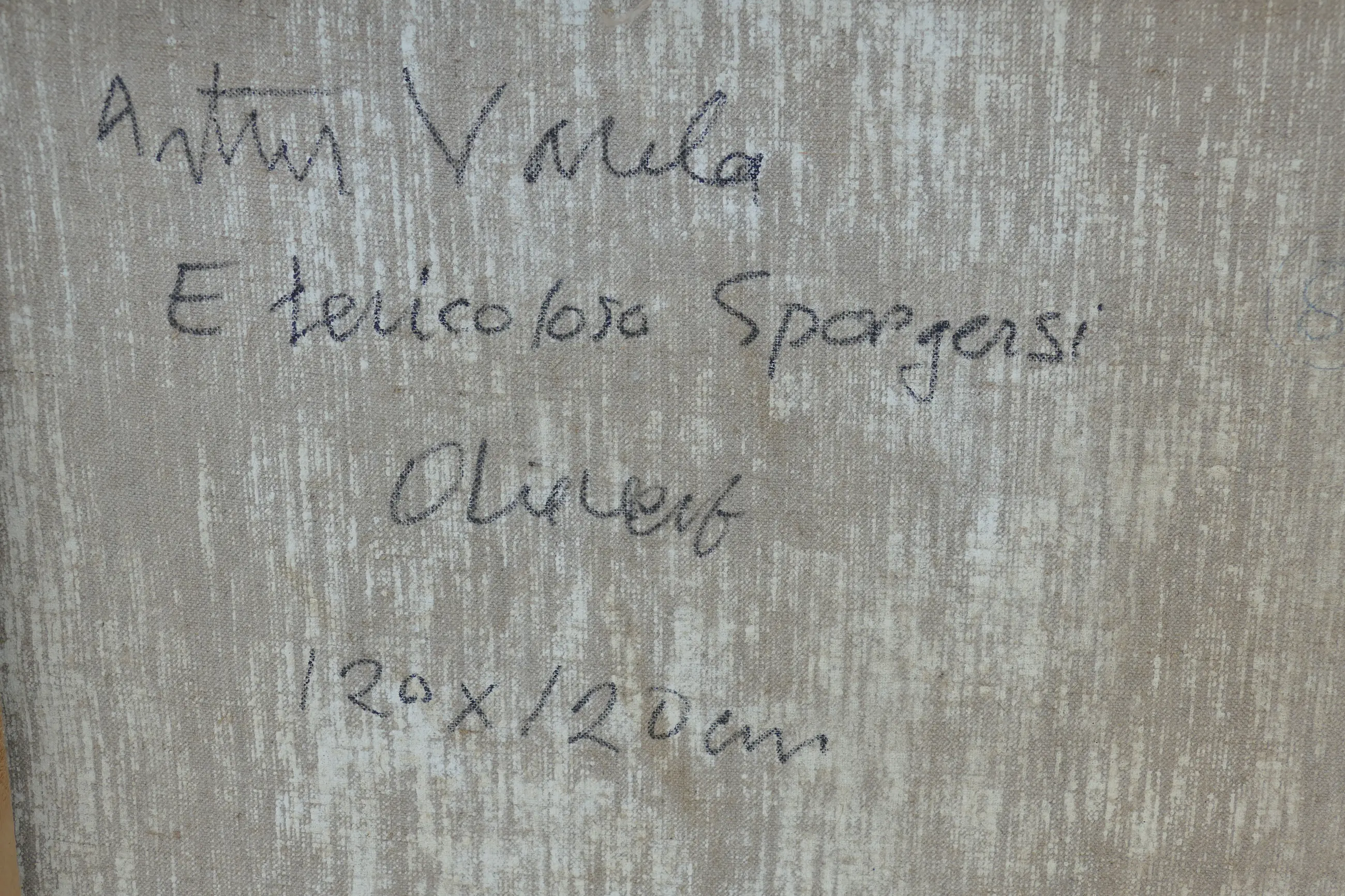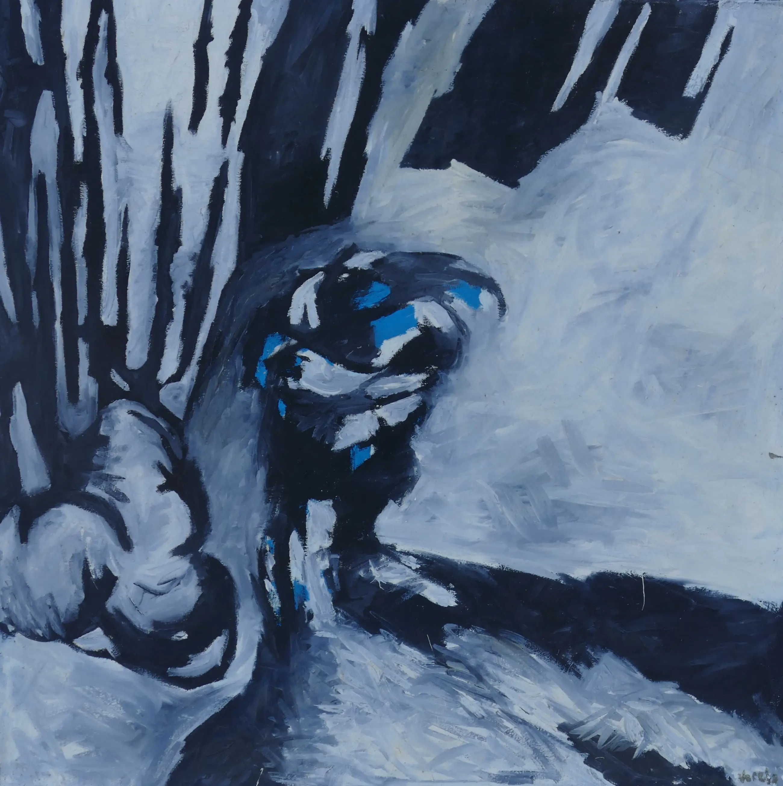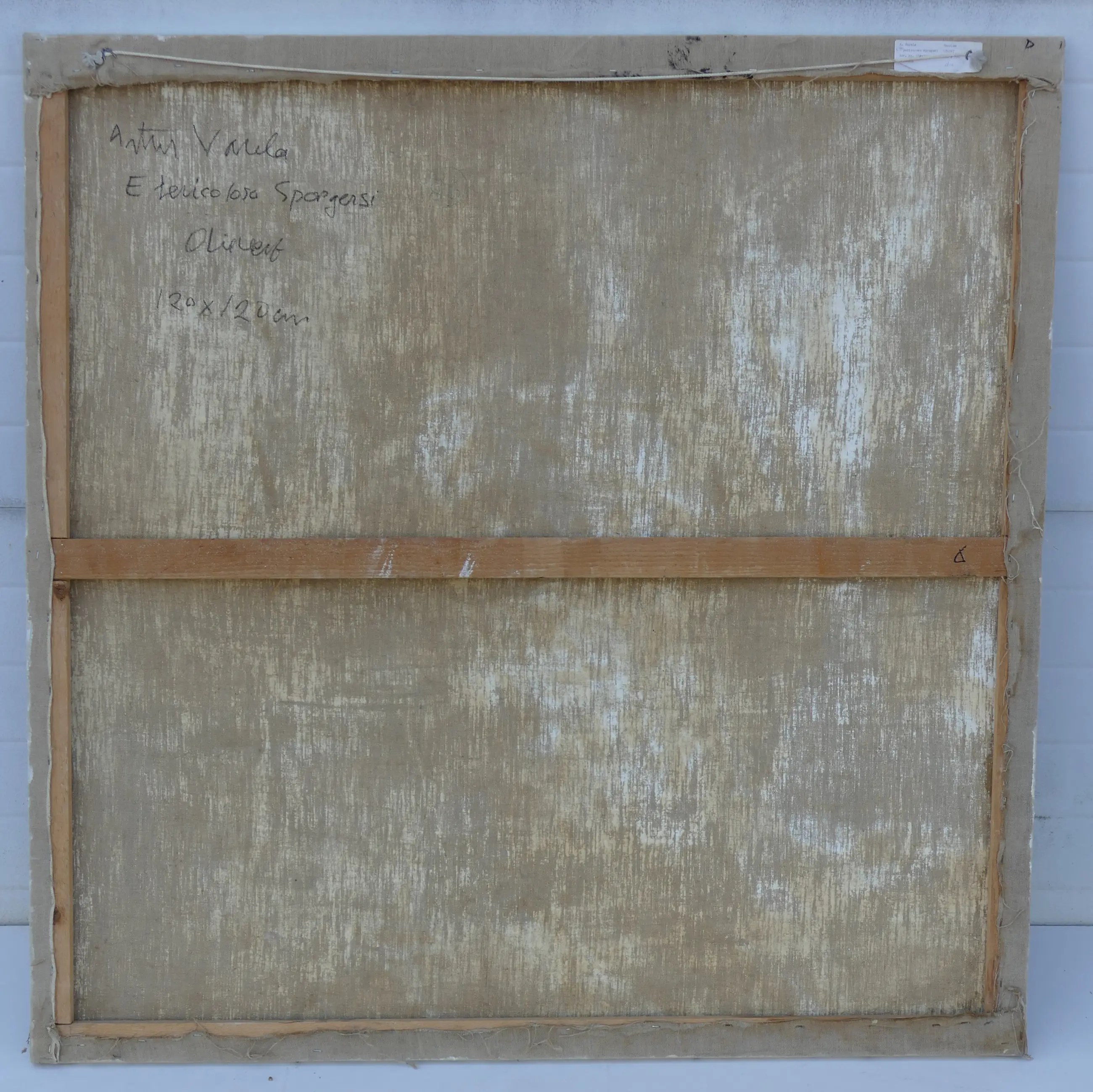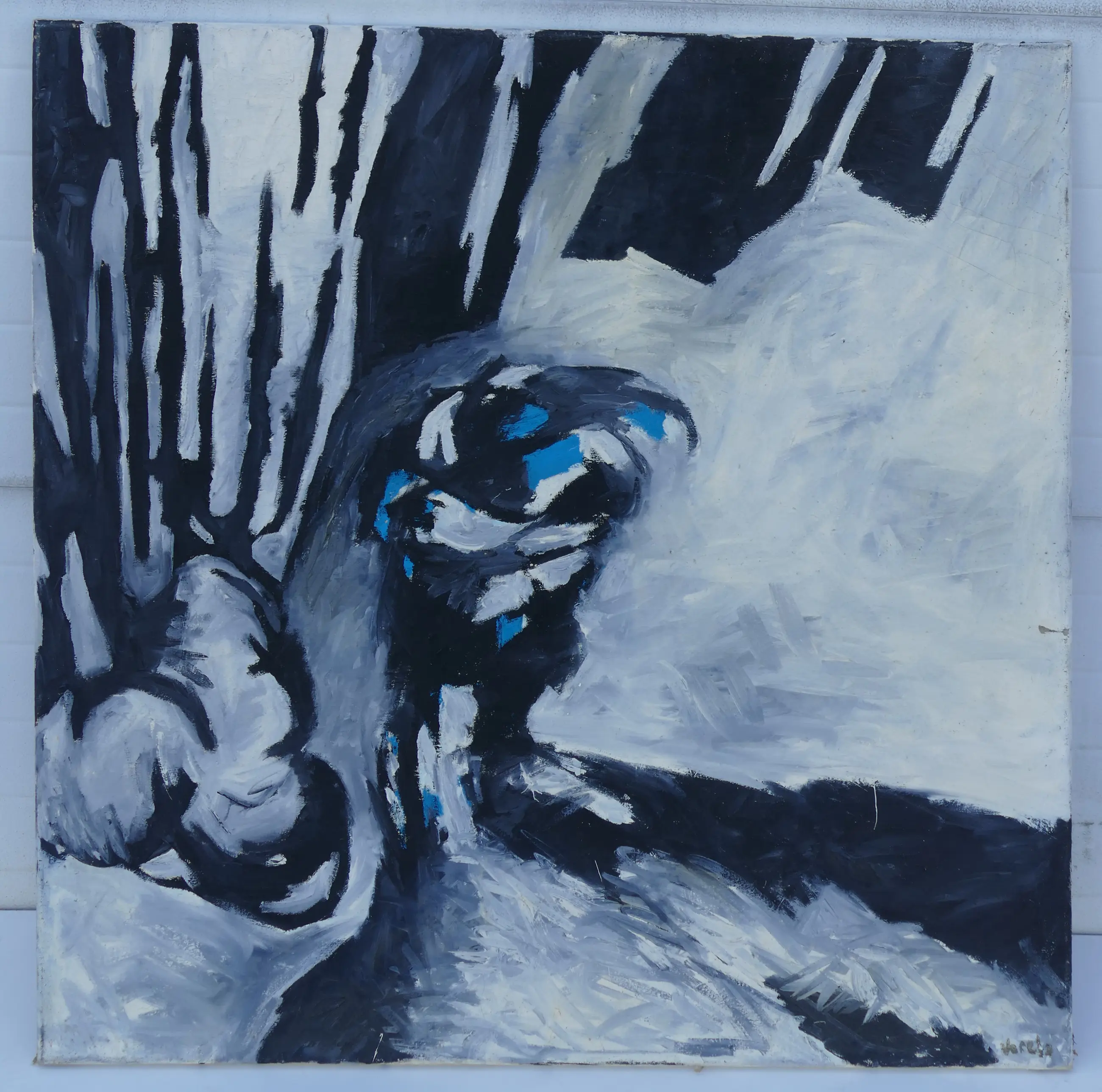 Stoer werk door de Portugees/Nederlandse kunstenaar Arthur Varela ( 1937 - 2017 ) Varela werd geboren in Portugal, volgde onderwijs aan de School voor Schone Kunsten en ontvluchtte in 1963 zijn land om politieke redenen. Via Parijs belandde hij rond 1965 in Nederland, waar hij zich ontwikkelde tot een veelzijdig kunstenaar ( Beeldhouwen , schilderen , film en fotografie ) Studie beeldhouwen volgde hij bij Shinkichi Tajiri Vanaf 1972 gaat hij tijdelijk terug naar Portugal . Amsterdam blijft zijn woonplaats. Het aangeboden werk maakt deel uit van een tentoonstelling uit 1987 Amsterdam " E Pericoloso Sporgersi "