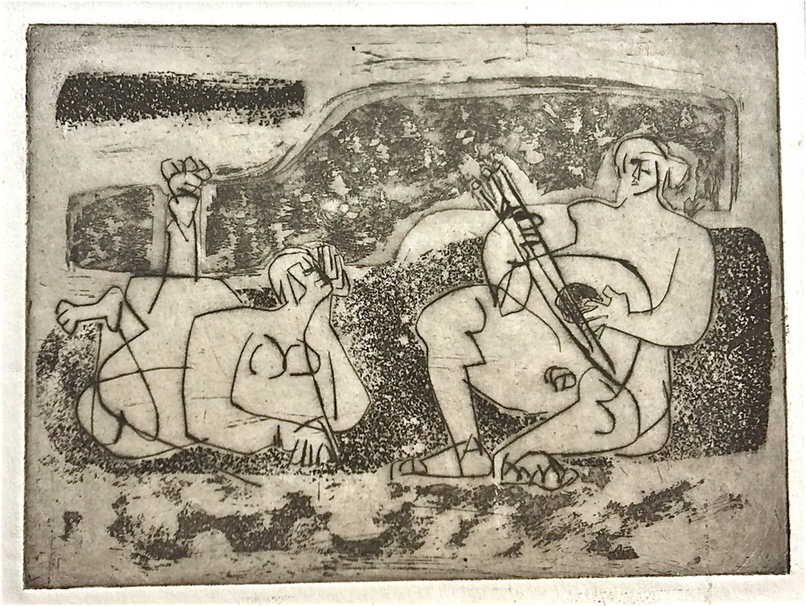 Fraai modern, abstract etswerk Gesigneerd door Artyouro Varela 1967