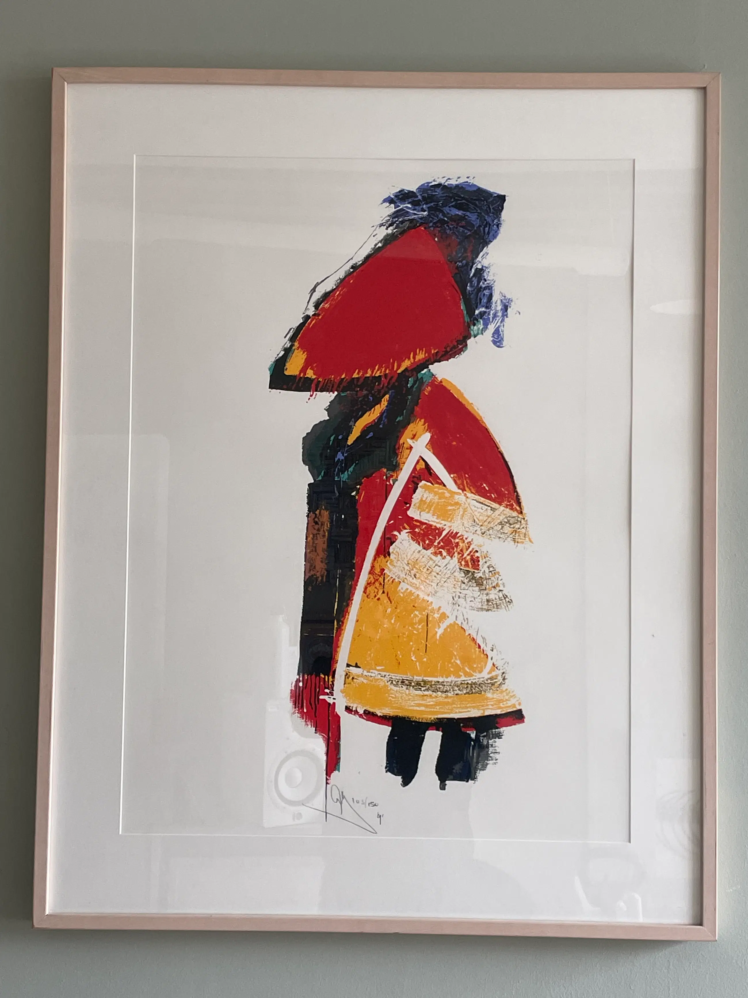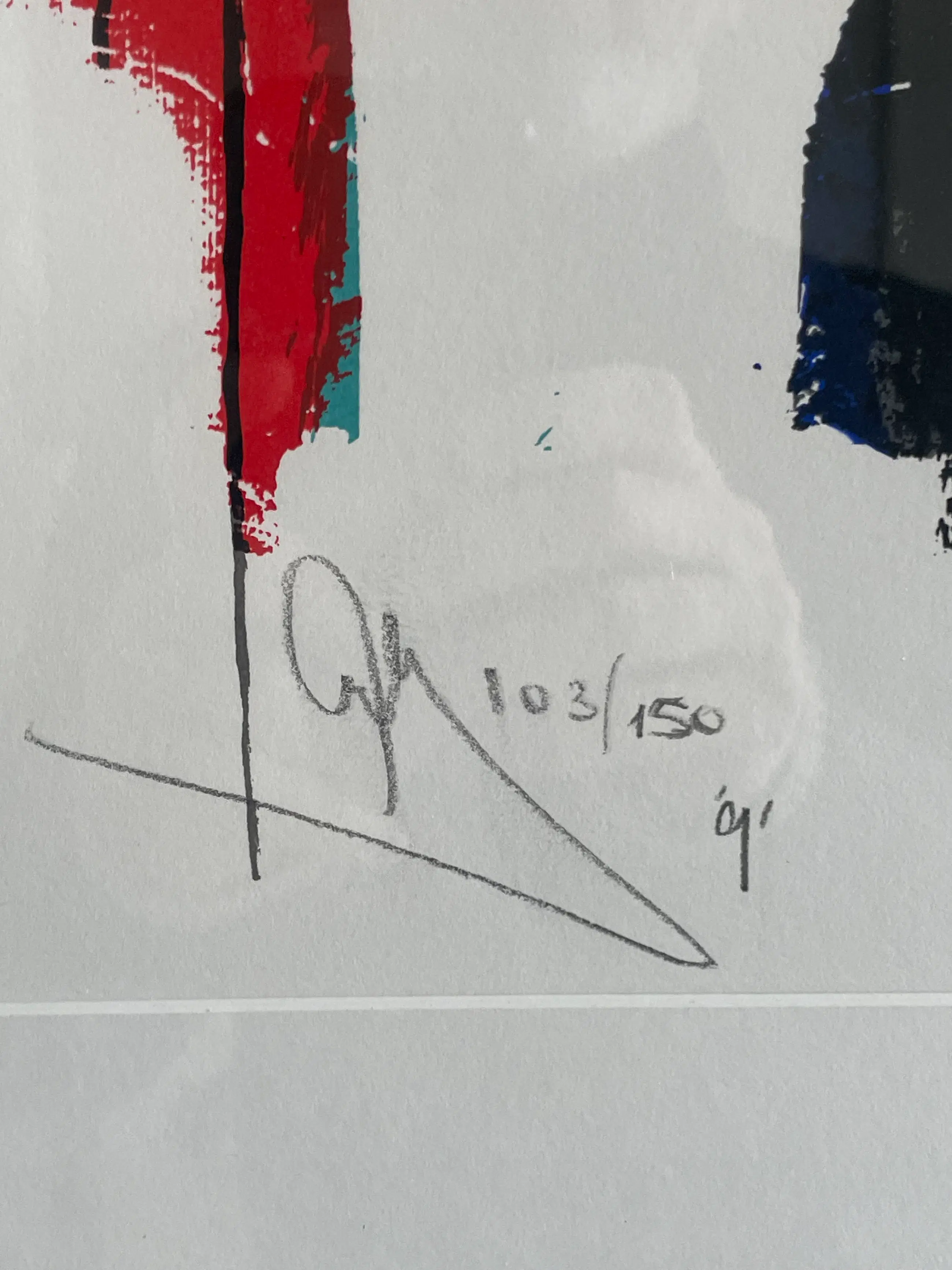 - Kunstenaar: Arty Grimm (1950, Rotterdam/Amsterdam) - Techniek: Zeefdruk op papier - Jaar: 1991 - Oplage: 103/150 - Gesigneerd: ja — potlood - Ingelijst: ja — roségouden lijst met passe-partout - Conditie: Goed