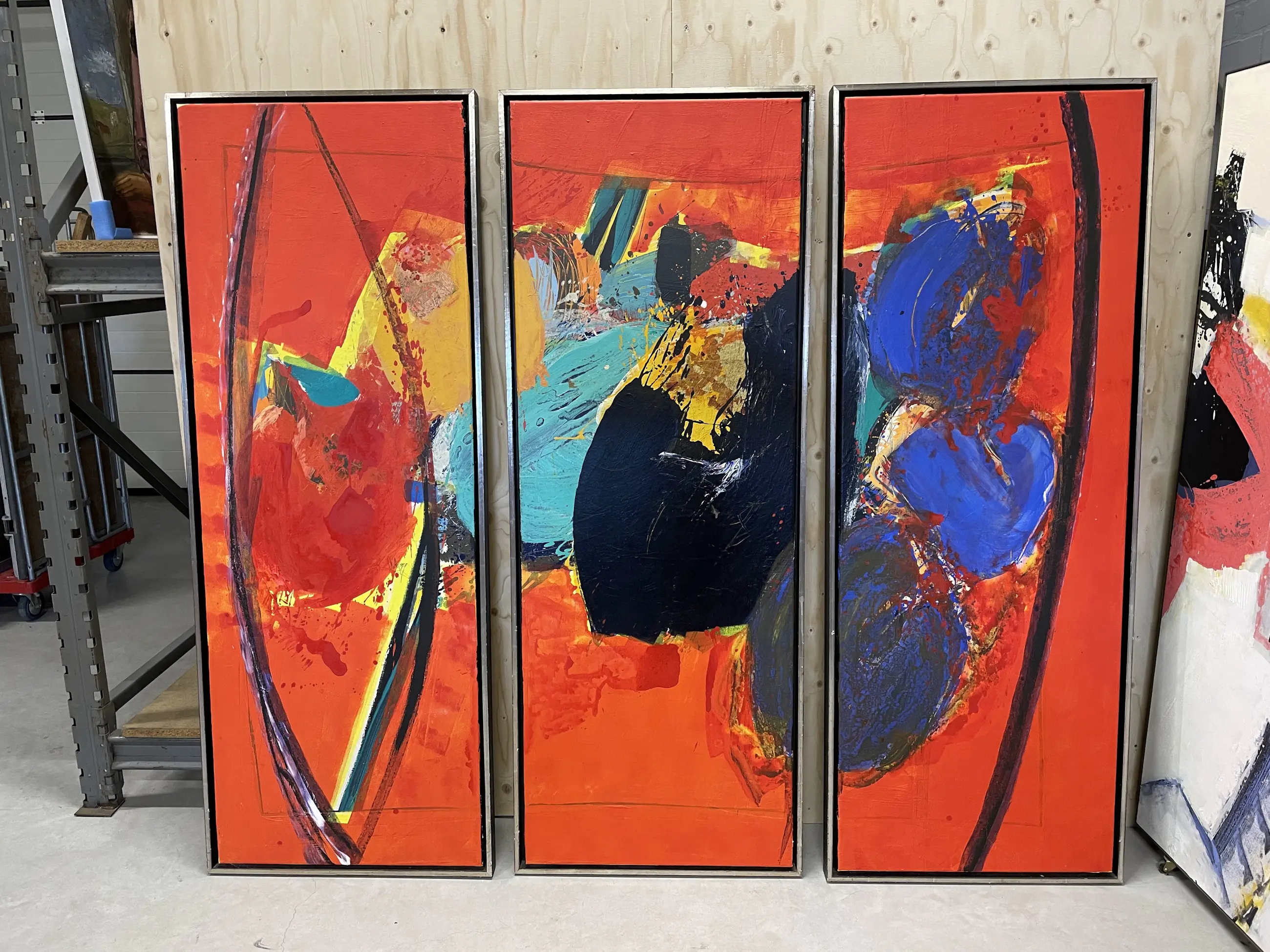 Prachtig en kleurrijk drieluik van Arty Grimm - 3 delen op doek in lijst. - 1 compositie verdeeld over de drie delen. - originele lijst - 3 delen van elk 70x185 cm In topconditie.