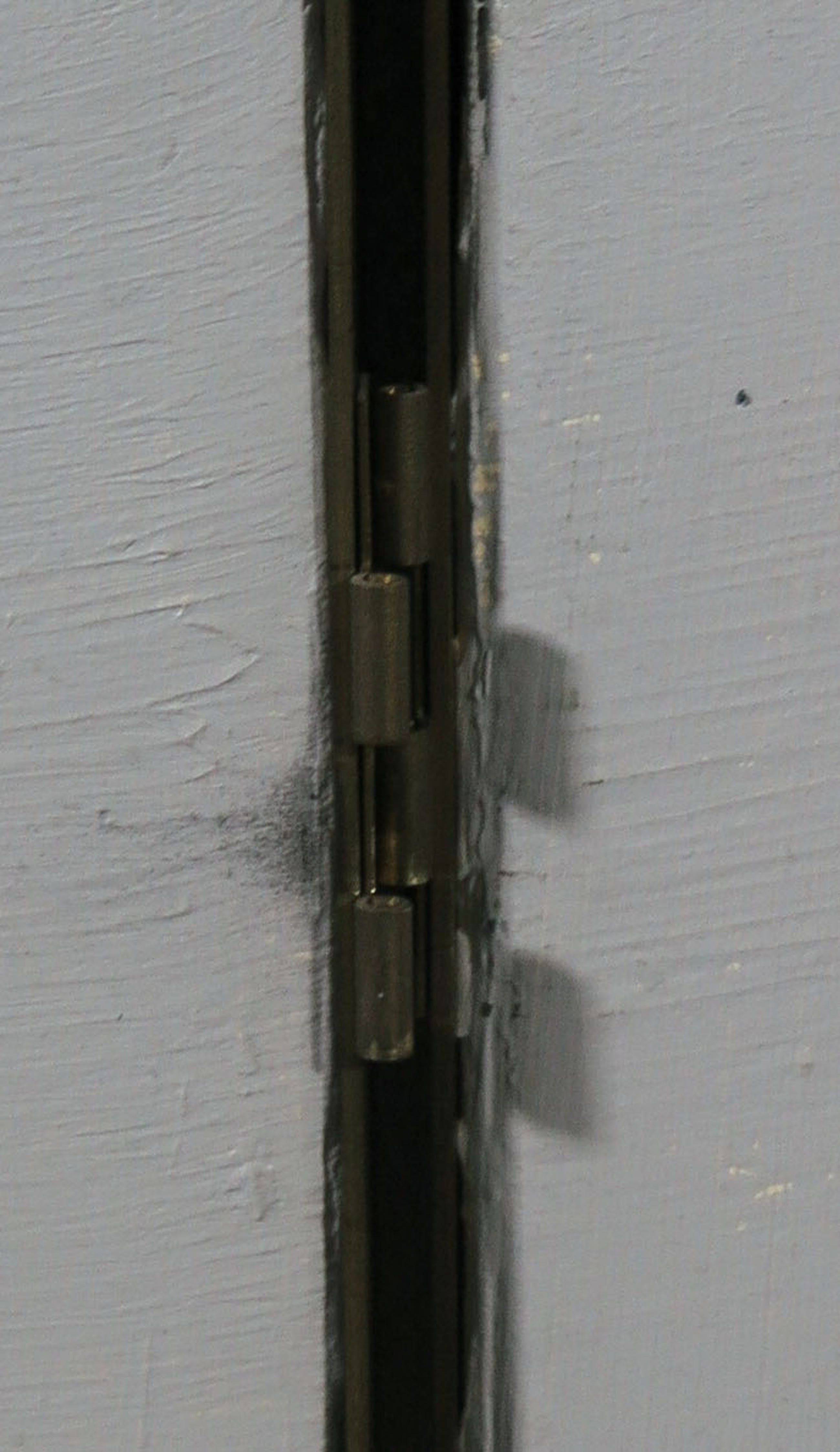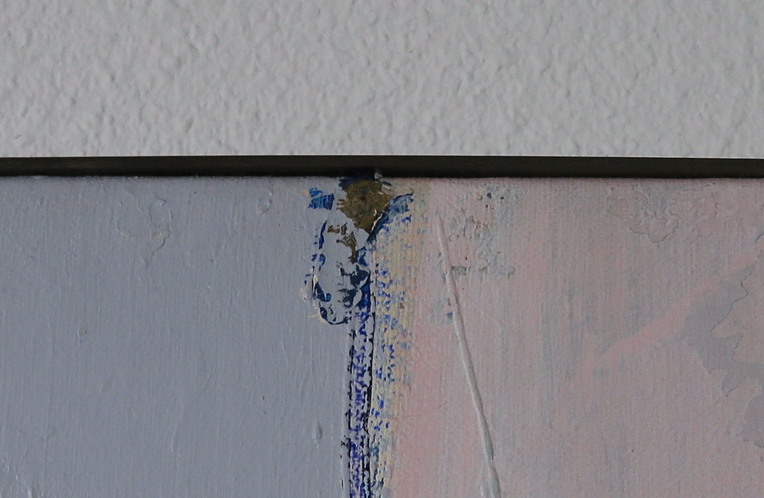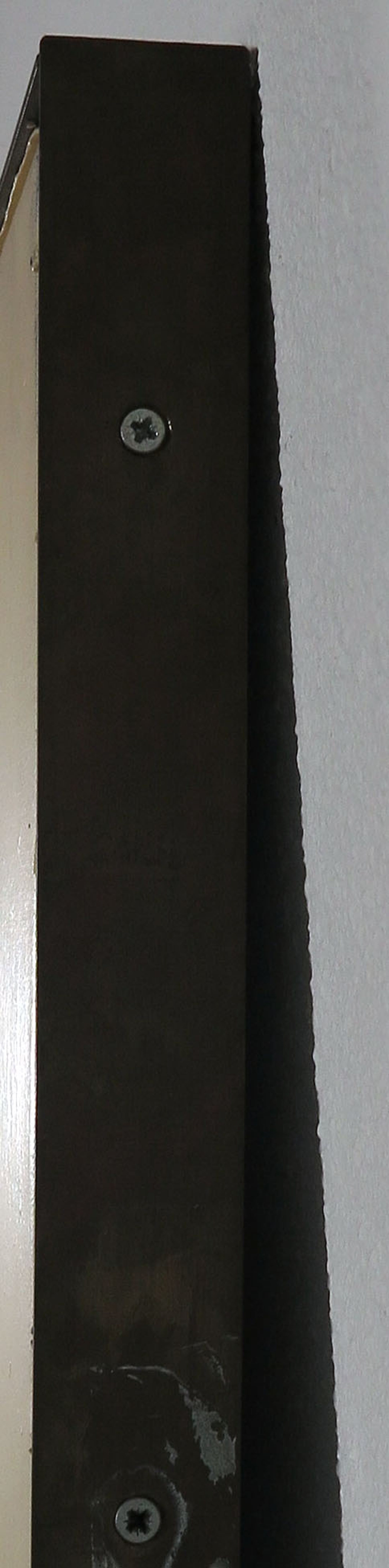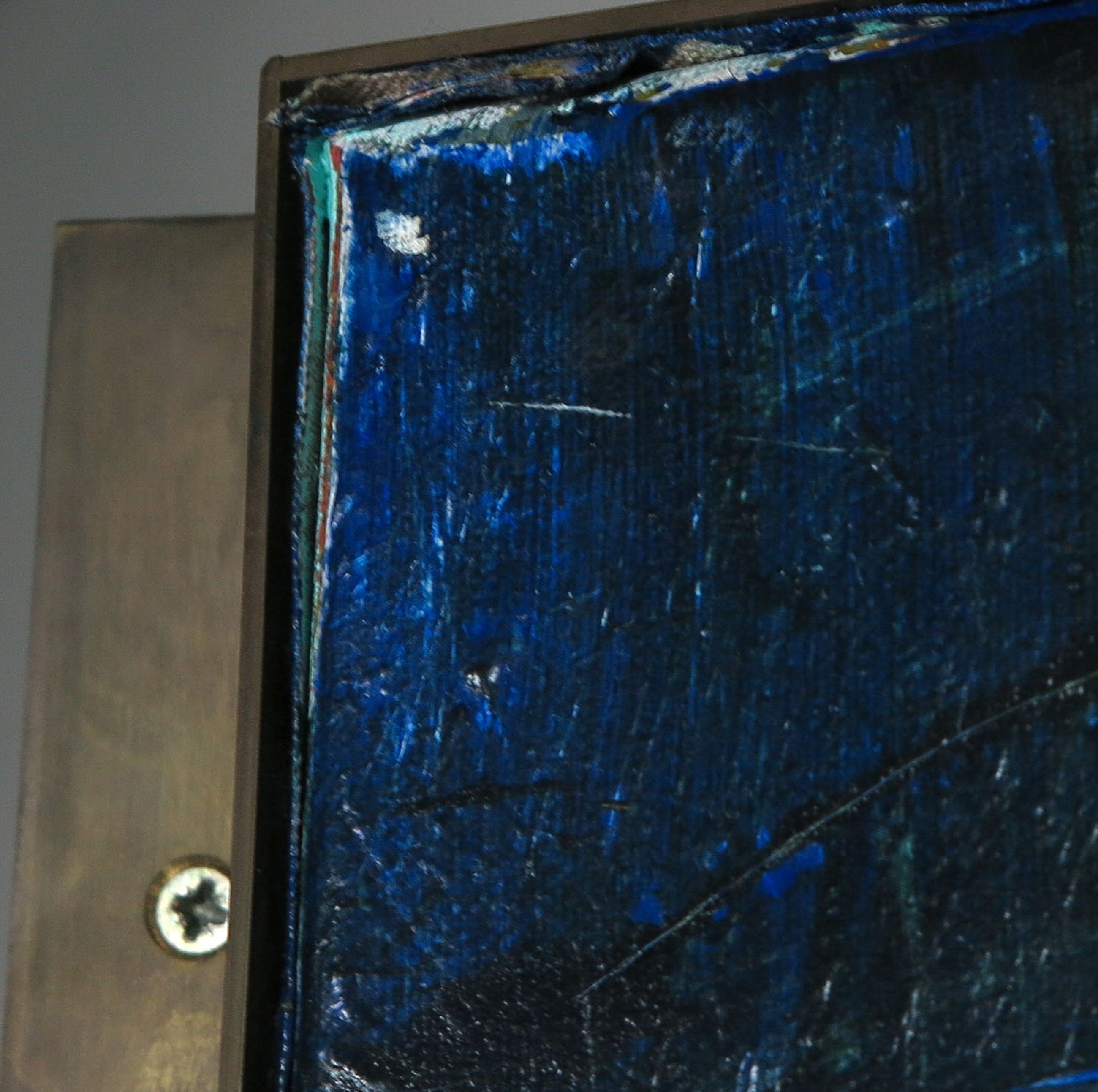 Hier en daar een klein slijtplekje langs een rand of hoek. Er mist één pootje en een pen van een scharnier. Het gele vlak op het derde doek aan de voorzijde is wat vlekkerig. Het is niet duidelijk of dit de bedoeling is. | |