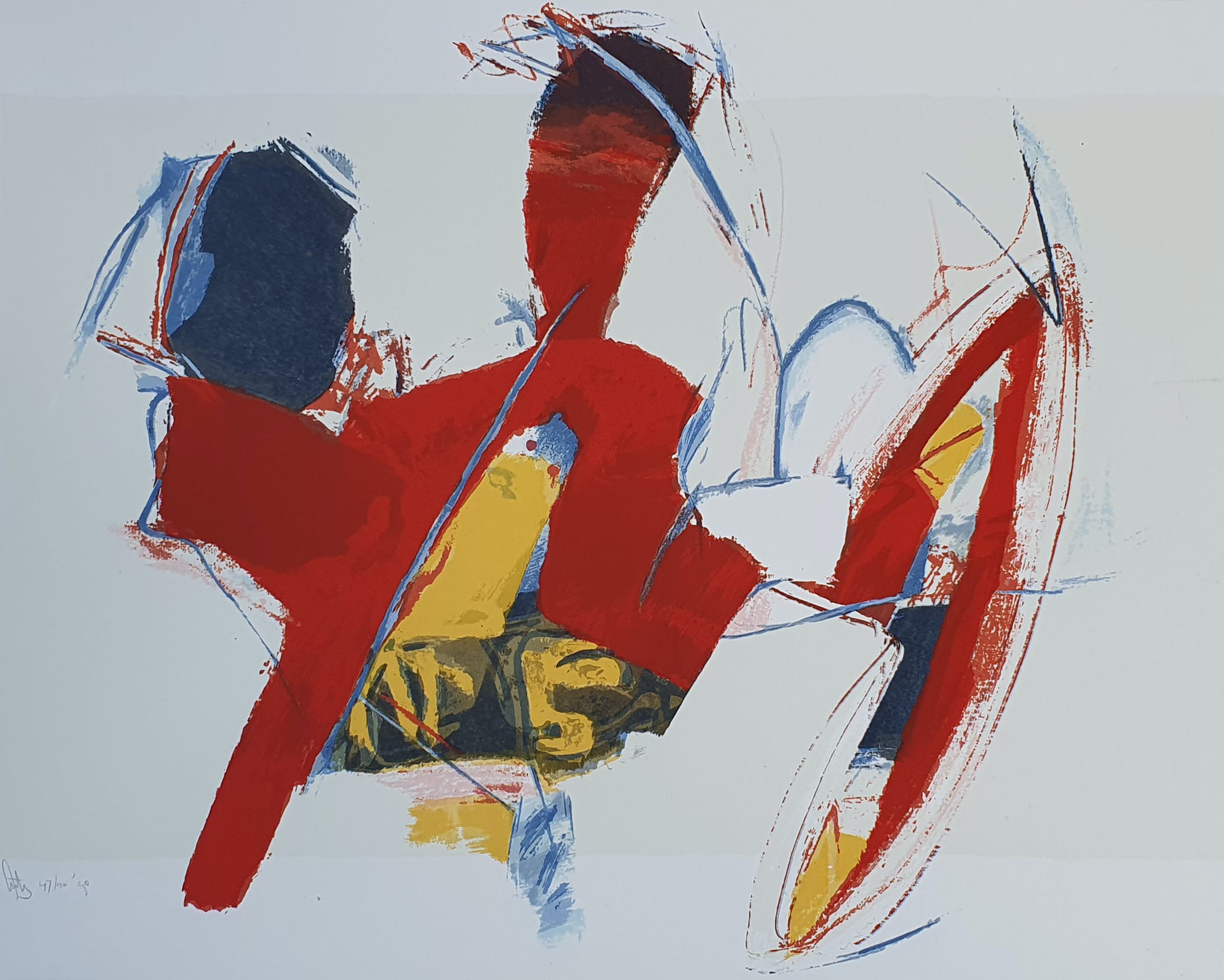 Zeefdruk uit 1990 van Arty Grimm. Het werk is linksonder met de hand gesigneerd door de kunstenaar.
