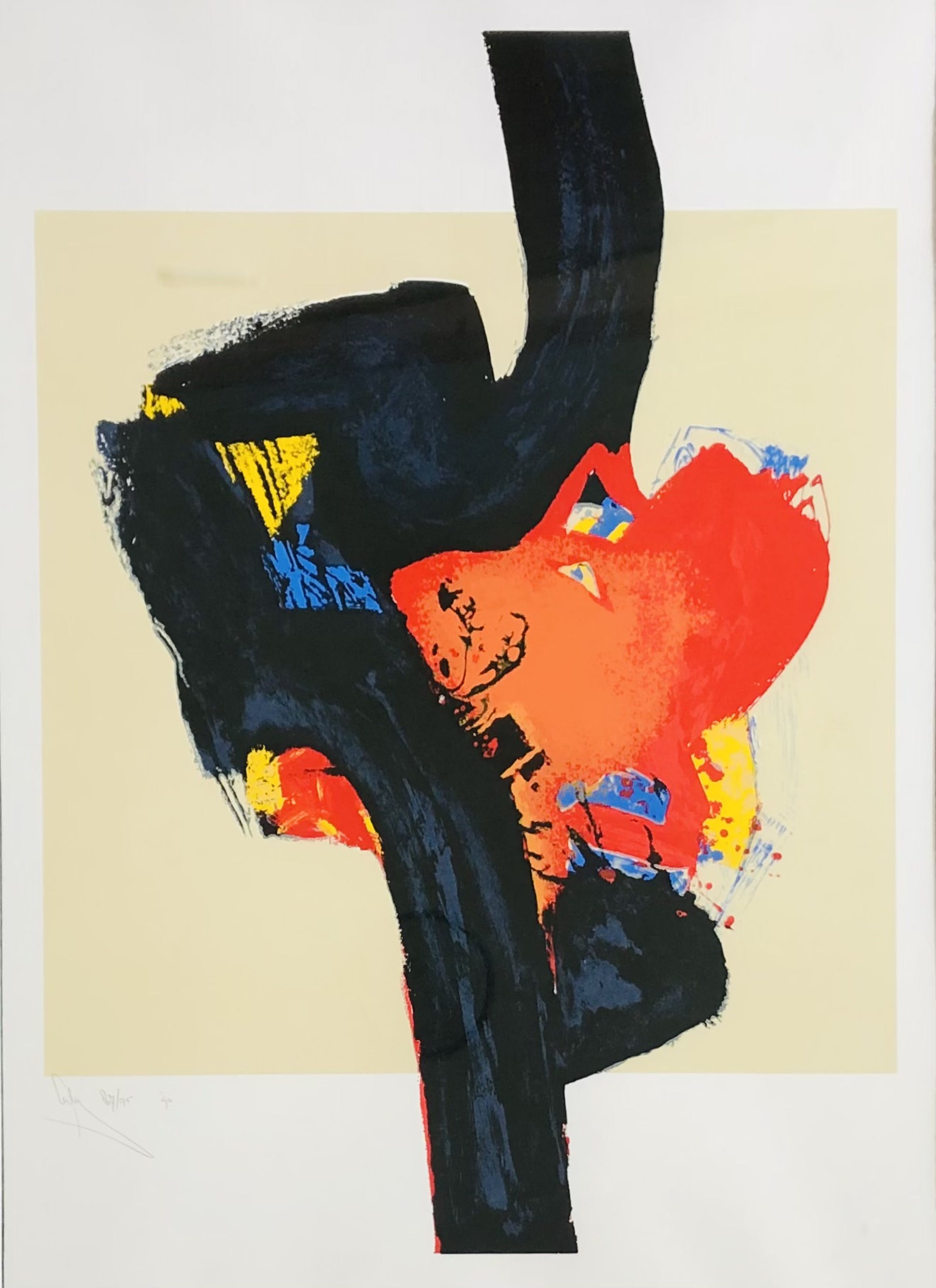 Mooie zeefdruk van Arty Grimm met lijst. Een werk dat zo aan de muur kan worden gehangen! U kunt het werk vooraf komen bekijken in de Schatkamer van galerie Rotor in Gorcum, na aankoop afhalen of verzenden per koerier met lijst. Het werk zit in een gebruikte lijst met enkele beschadigingen in het frame. De foto is door het glas van de lijst heen genomen. Pademietip: In overleg kunt u uw aankopen laten opslaan in onze verwarmde opslagruimte en ze in een later stadium ophalen.