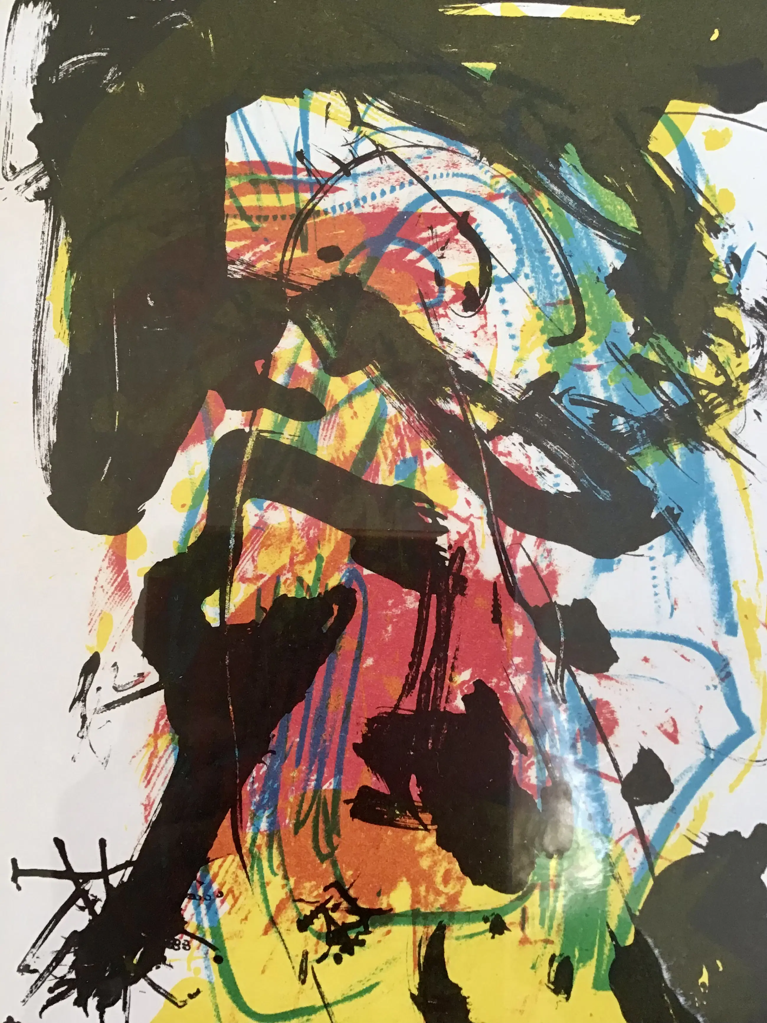 Asger Jorn , Cobra Litho, zonder titel Afmetingen 30,5x25,5 cm In metalen lijst Ophang gereed Door glas gefotografeerd! Conditie uitstekend