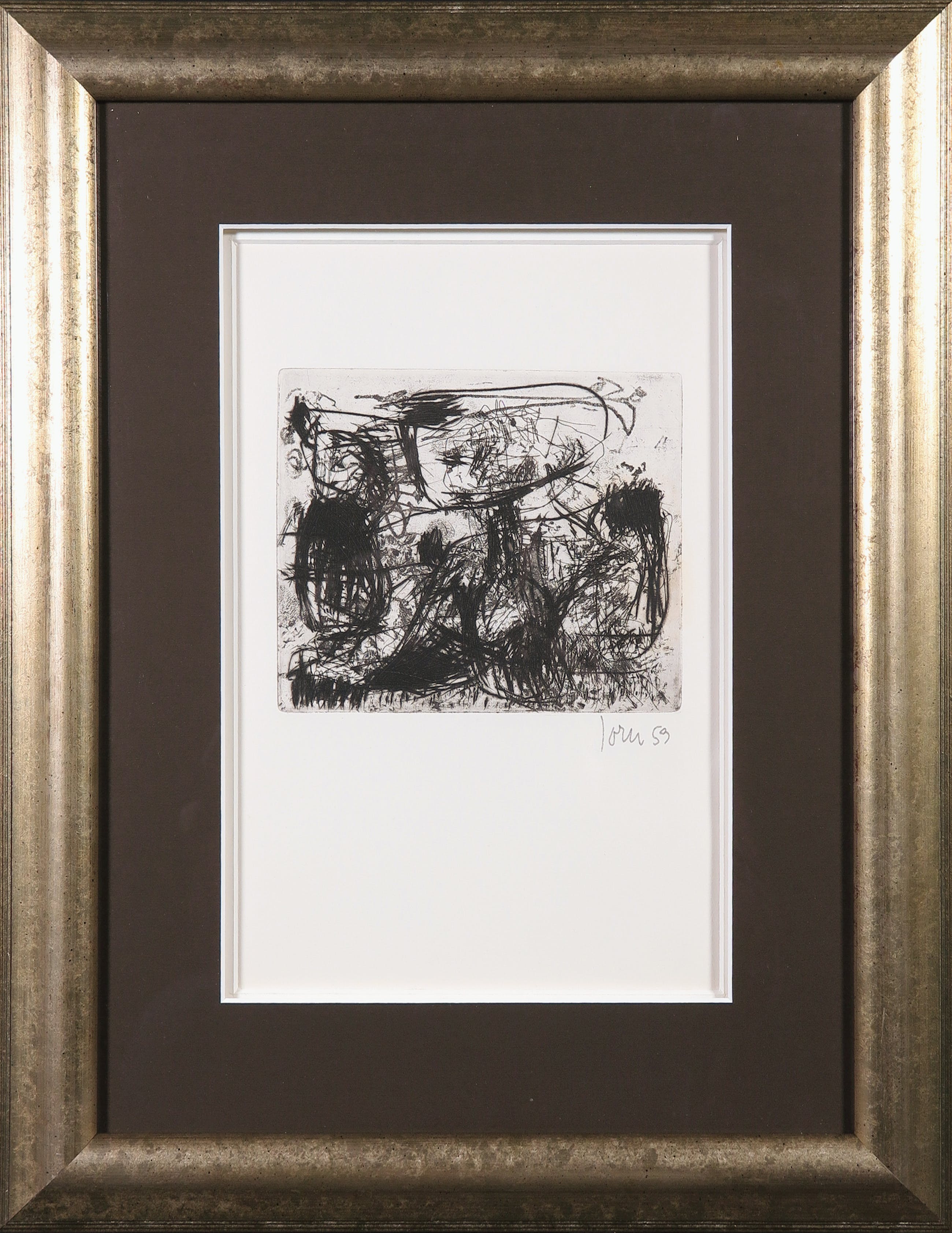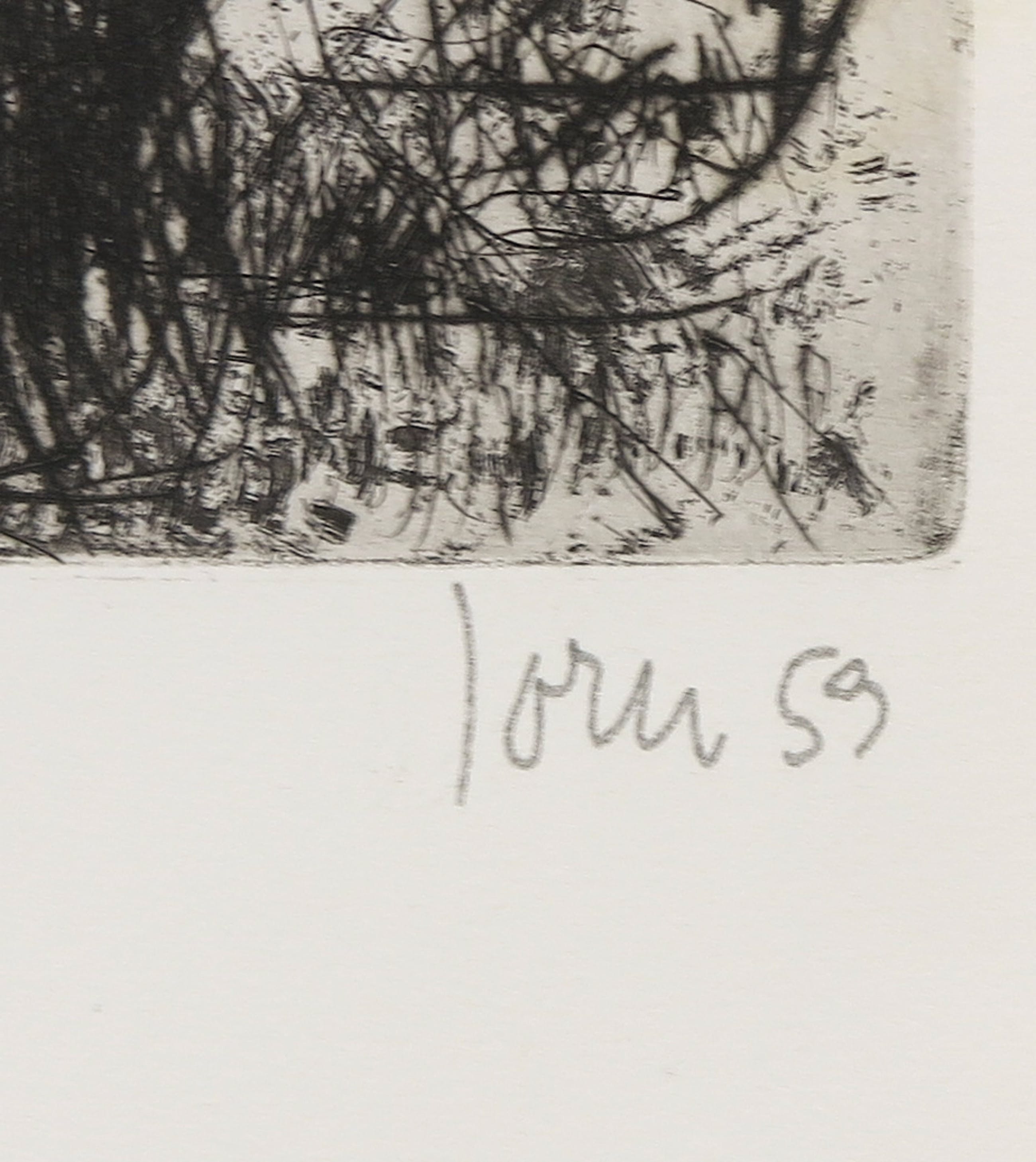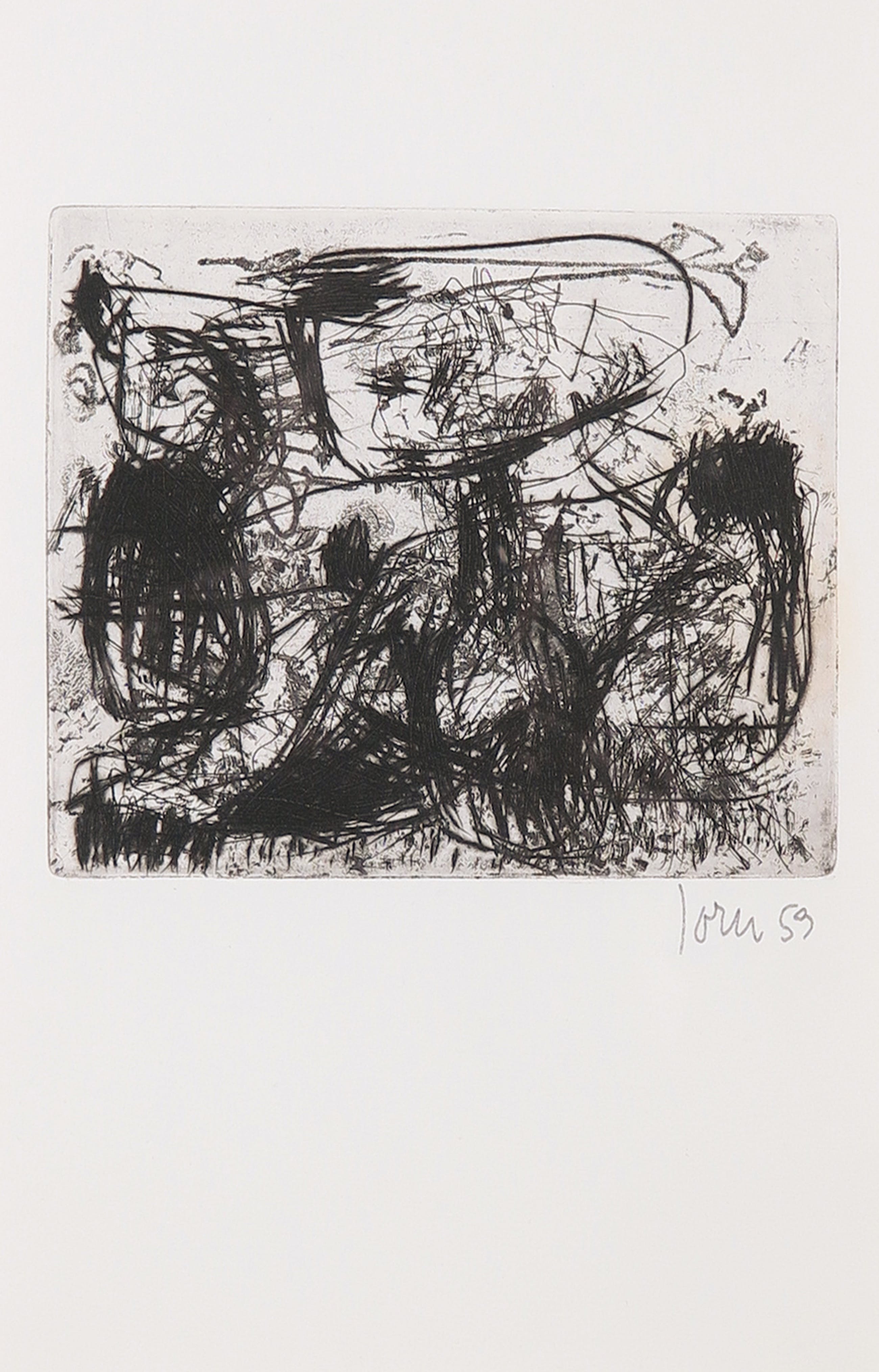Originele ets van Asger Jorn uit de portfolio `Friedhof der Maulwürfe` (talpa europea). De ets is gesigneerd en gedateerd `Jorn 59` in potlood rechtsonder.