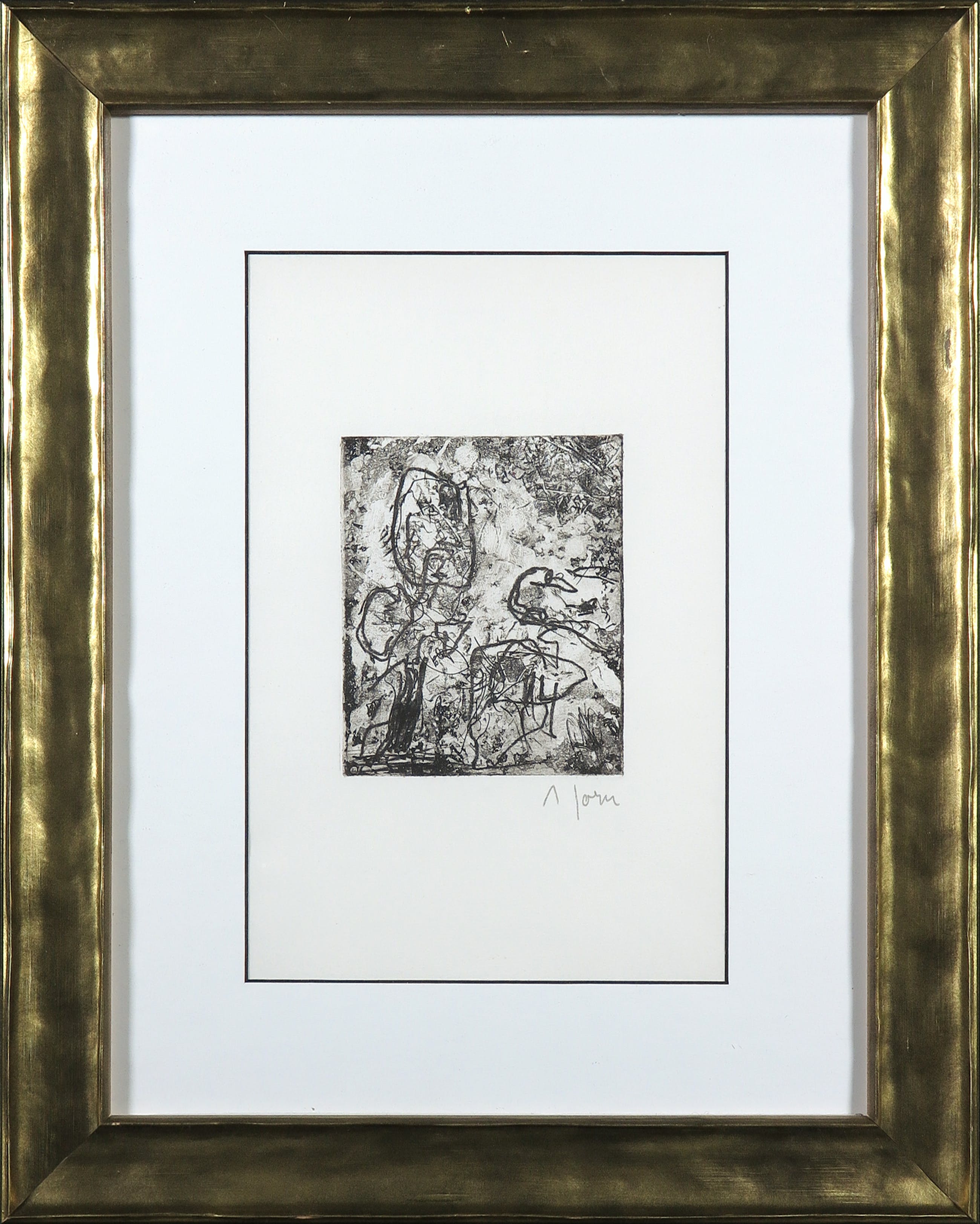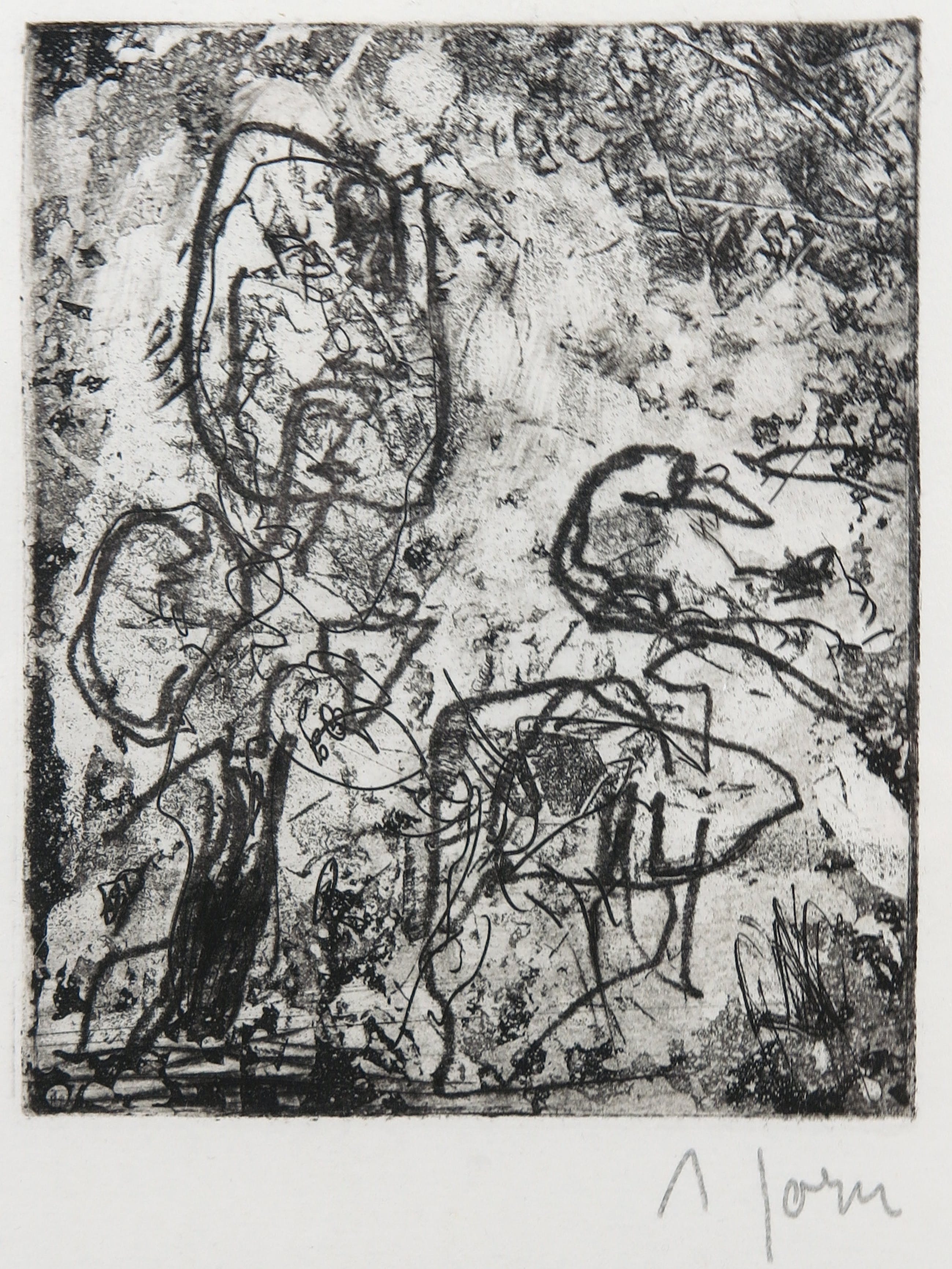 Originele ets van Asger Jorn uit de portfolio `Friedhof der Maulwürfe` (talpa europea). De ets is gesigneerd en gedateerd `Jorn 59` in potlood rechtsonder.