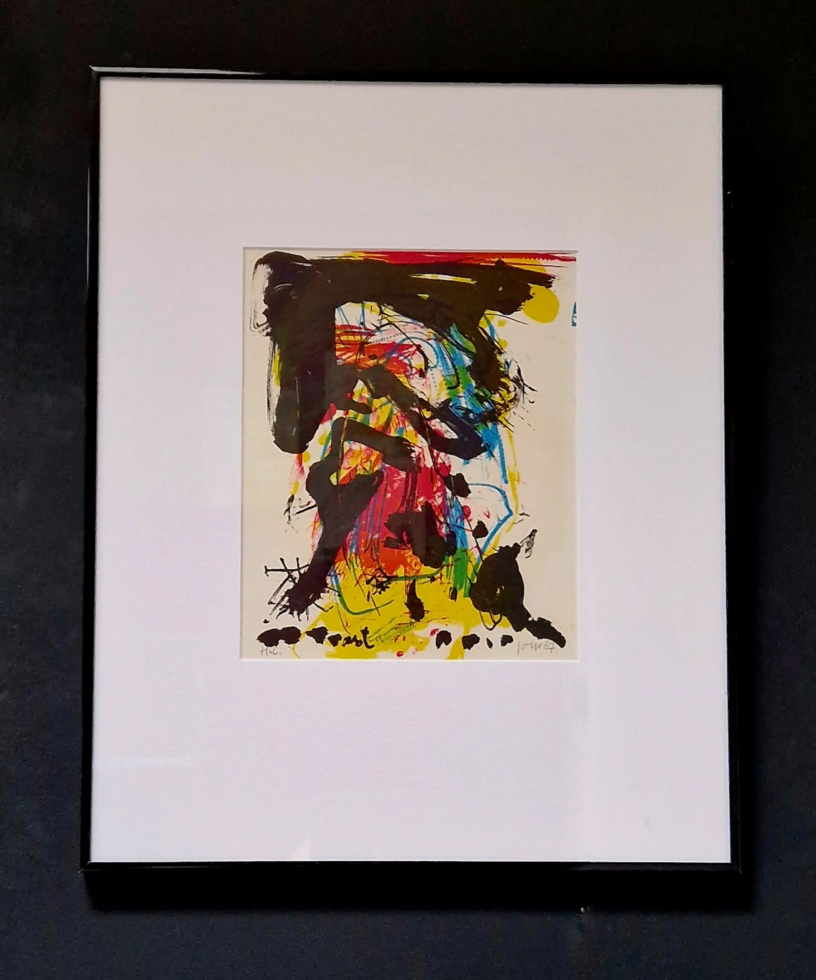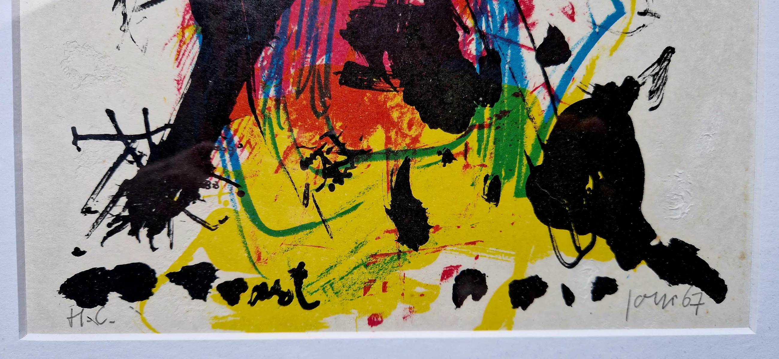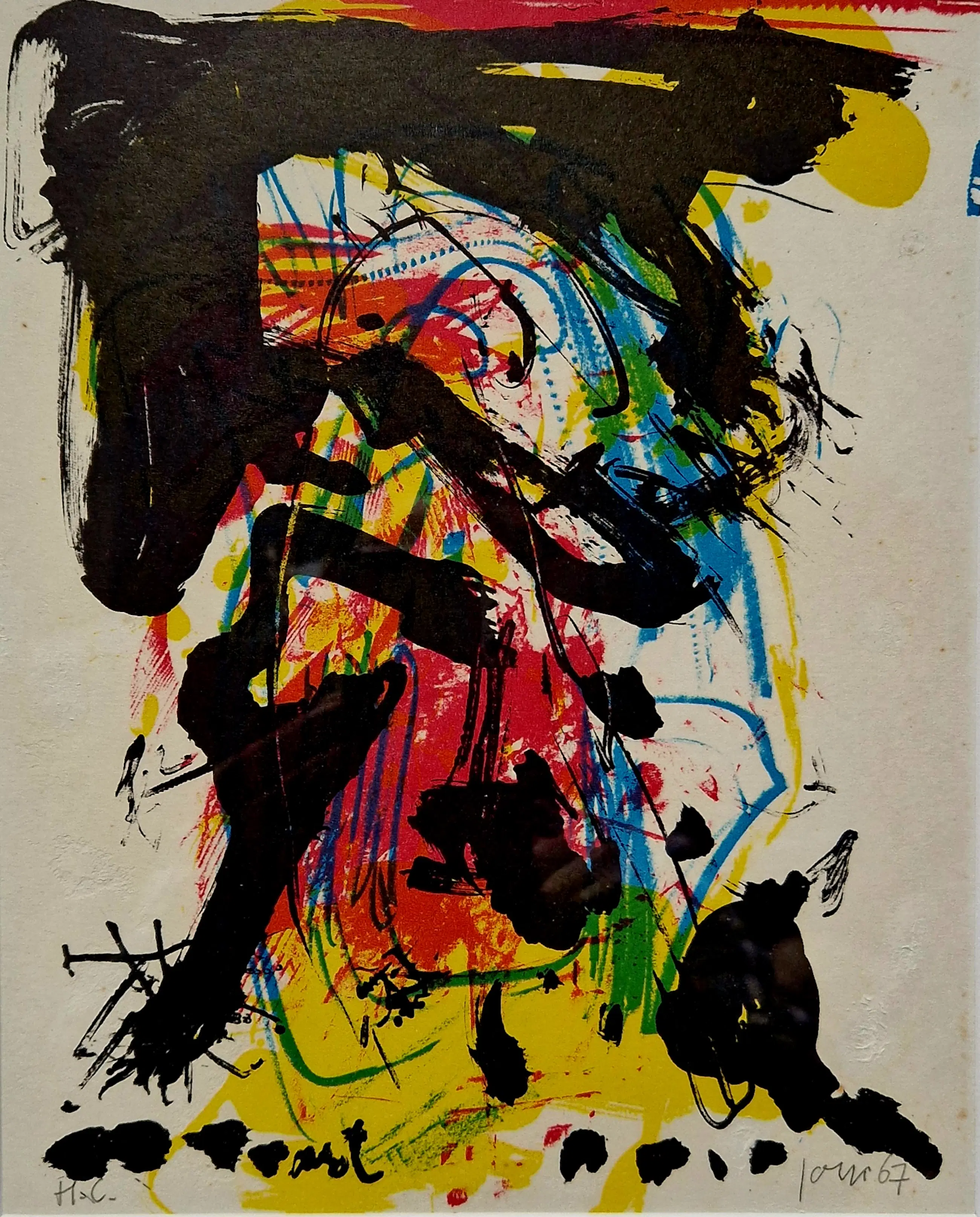 Knap werk van de Deense Cobra-kunstenaar Asger Jorgensen uit 1967. De lithografie is uitgebracht door Jacqueline de Jong in Parijs in The Situationist Times Nº6. Jorn was 1 van de 33 artiesten in deze uitgave. Opmerkelijk exemplaar, gesigneerd en genummerd Hors Commerce.
