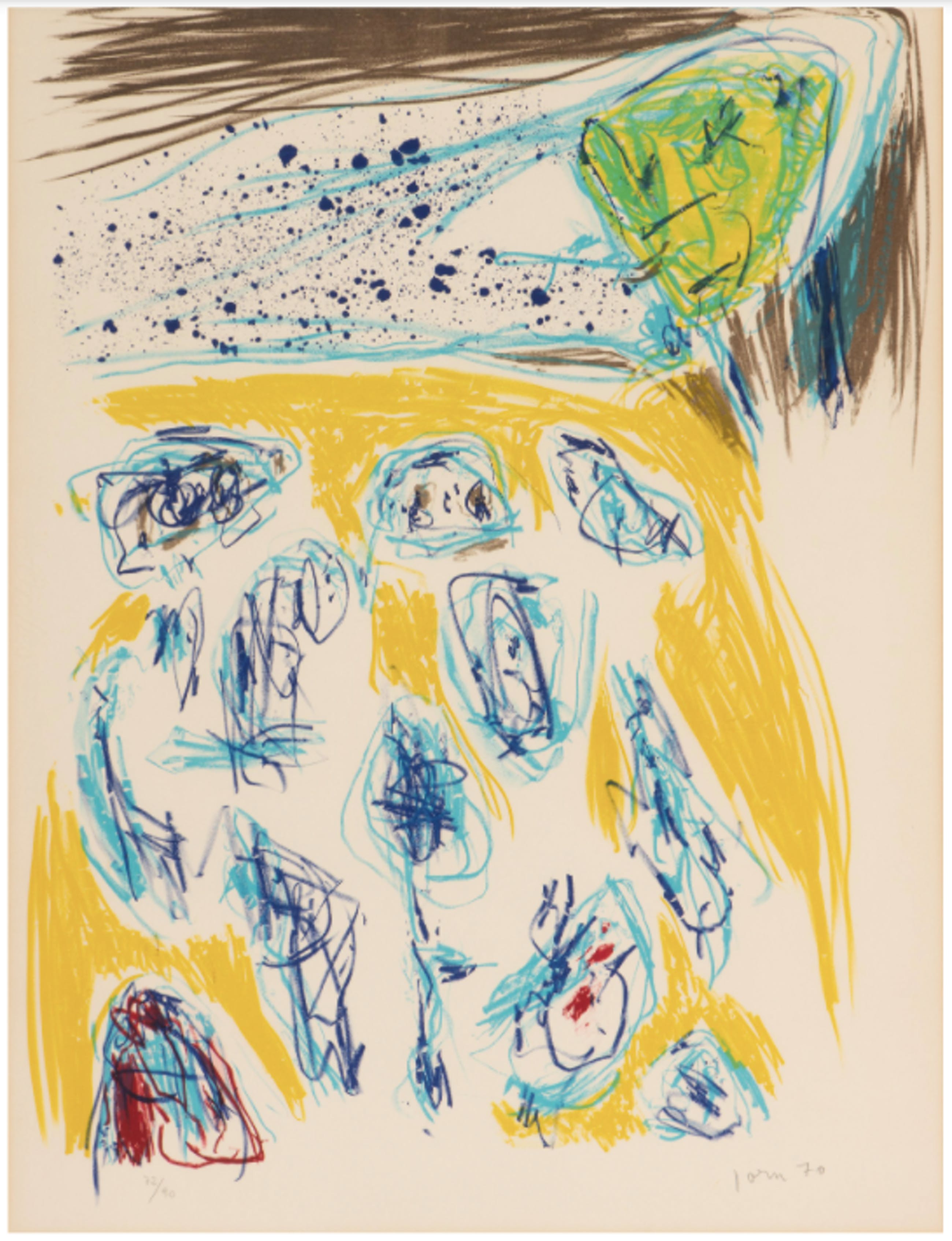 Het werk verkeert in volledig originele en nette conditie. Het werk is professioneel gelijst. De omlijsting kan gebruikerssporen bevatten.