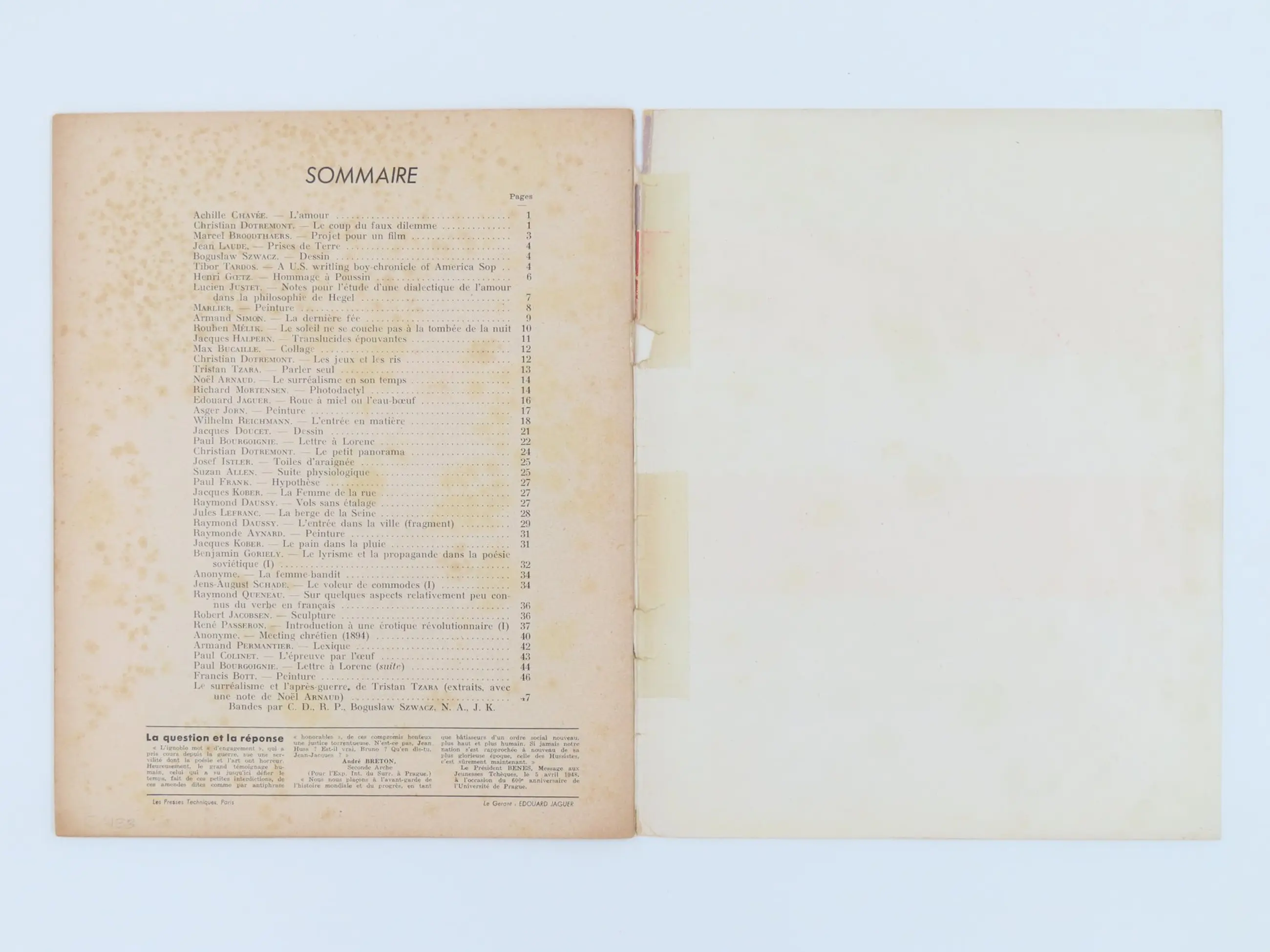 Le Surréalisme Révolutionnaire. Revue Bimestrielle Publiee par le bureau international du Surréalisme Révolutionnaire. Maart/April, 1948. Onder toezicht van Noël Arnaud, Christian Dotremont, Asger Jorn en Zdenek Lorenc.